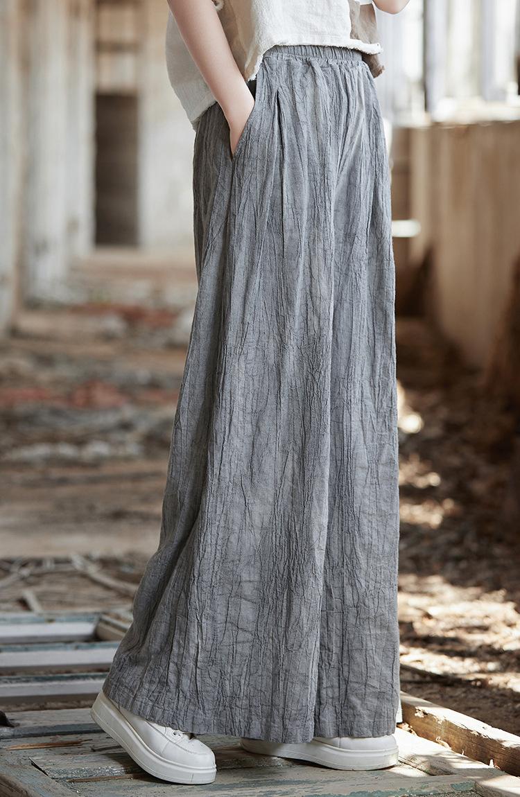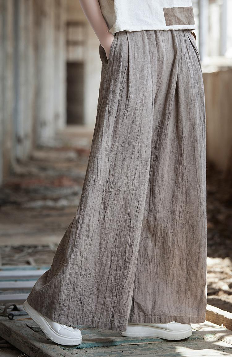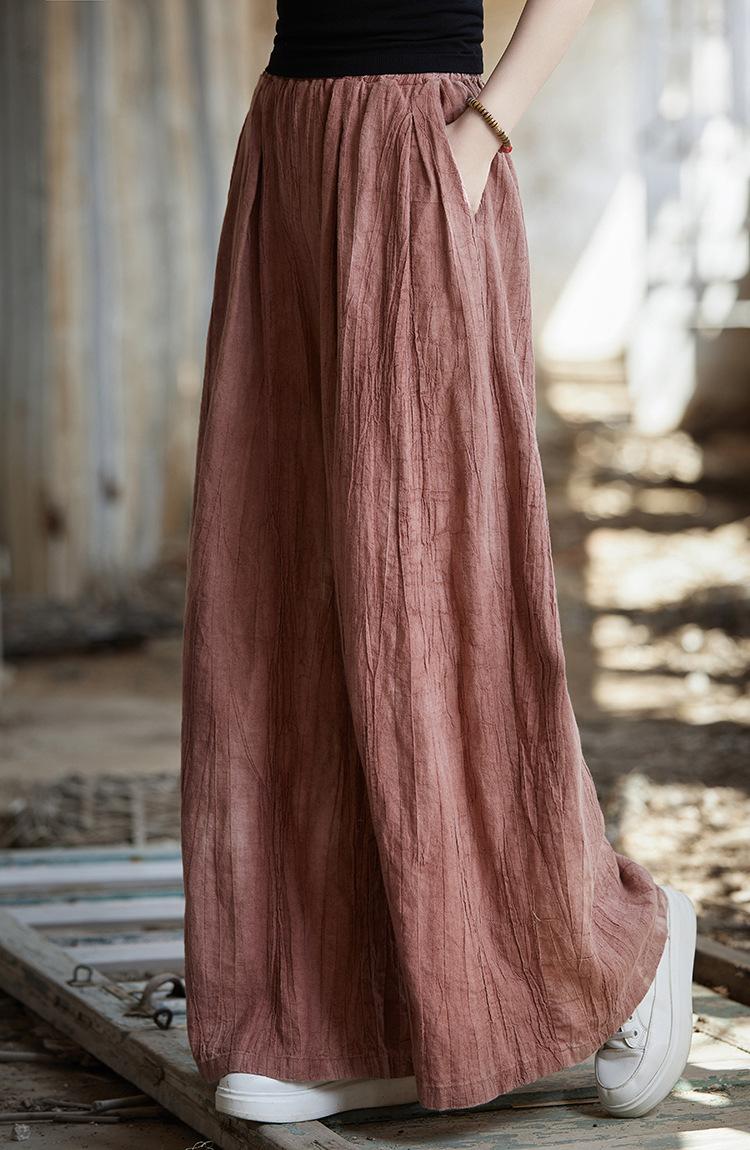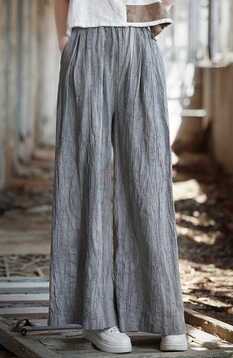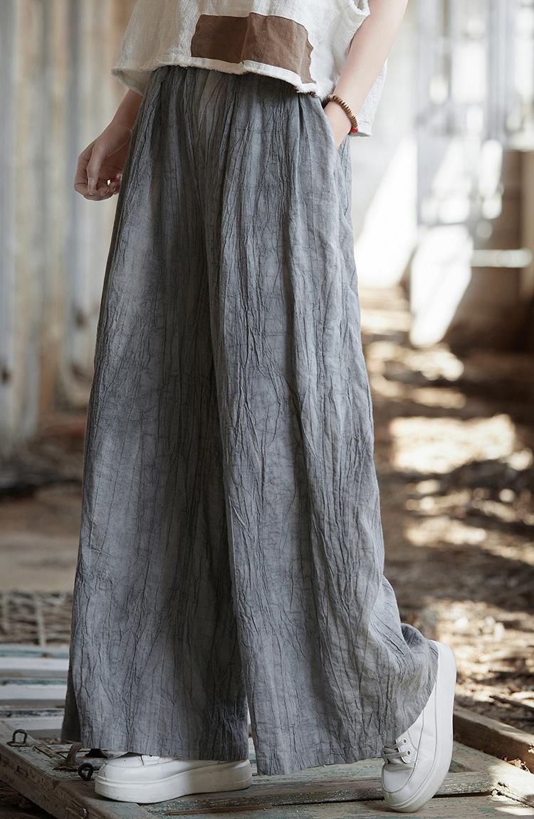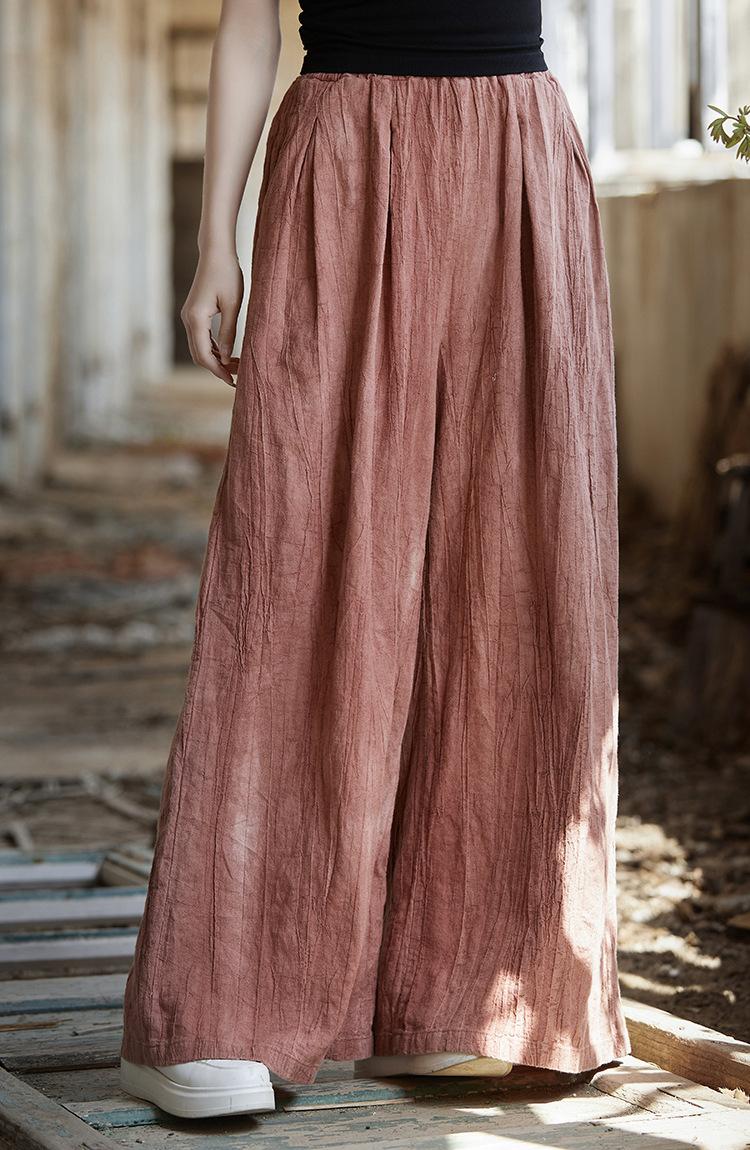 Otoño 2025 Nuevo Ramio Fino Tie-Dye Versátil Pantalones Sueltos Casuales Drapeados Pantalones Anchos de Pierna Ancha para Mujer Pantalones Largos