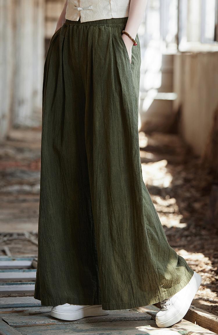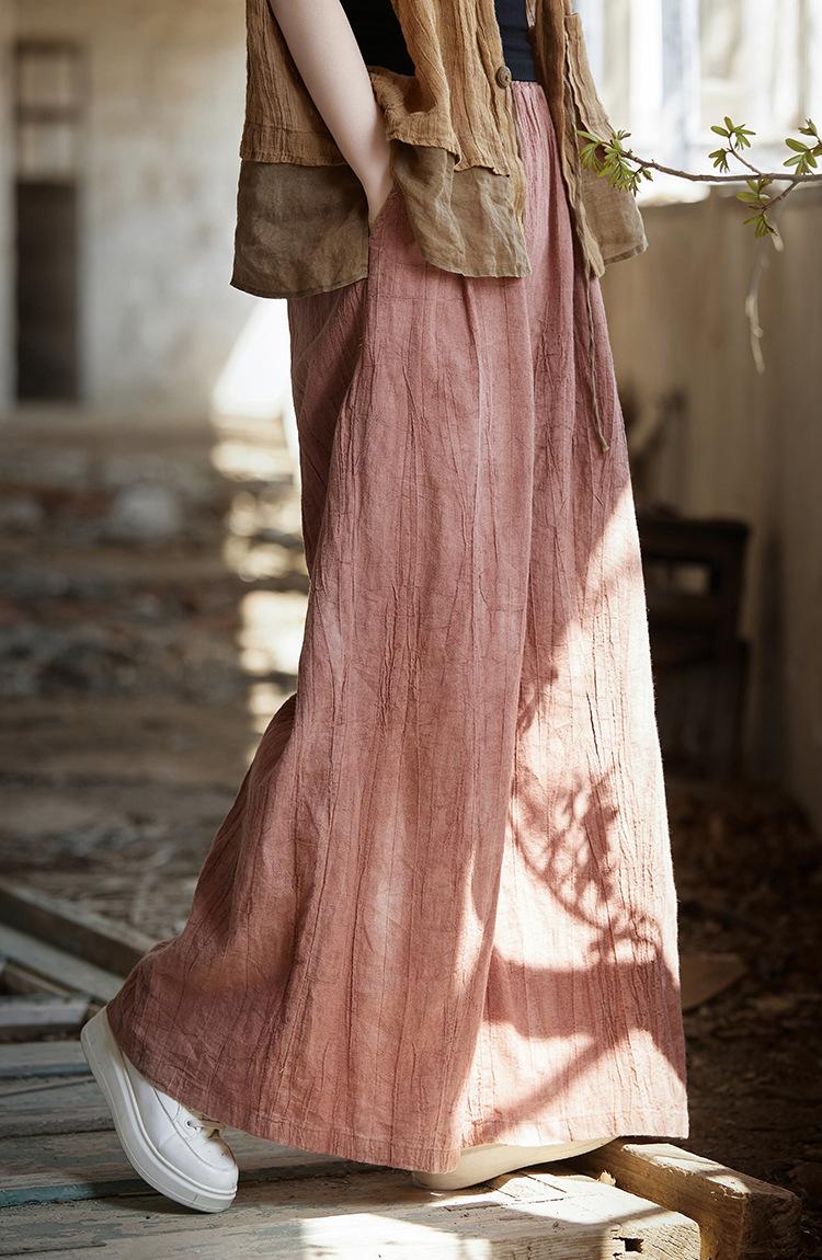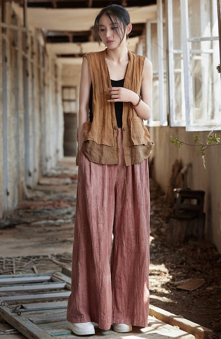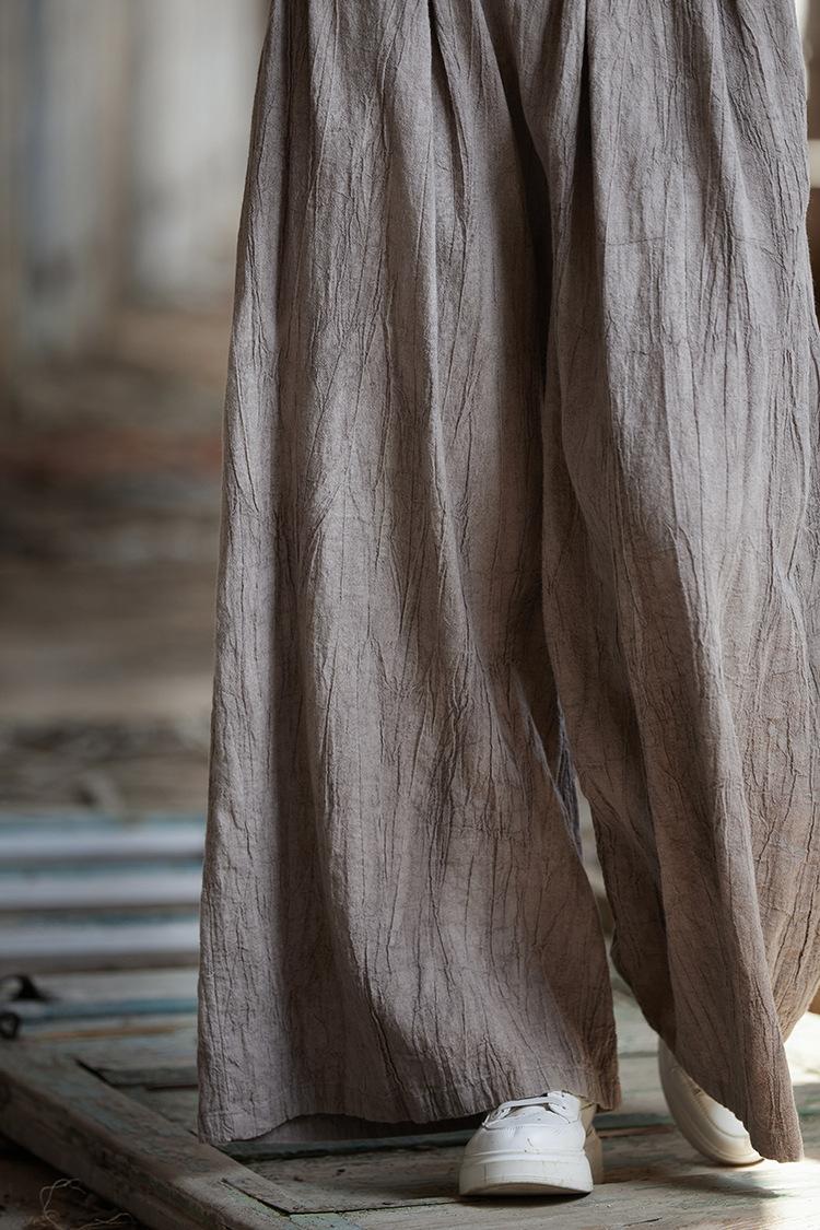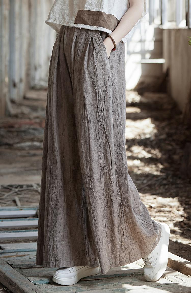 Otoño 2025 Nuevo Ramio Fino Tie-Dye Versátil Pantalones Sueltos Casuales Drapeados Pantalones Anchos de Pierna Ancha para Mujer Pantalones Largos