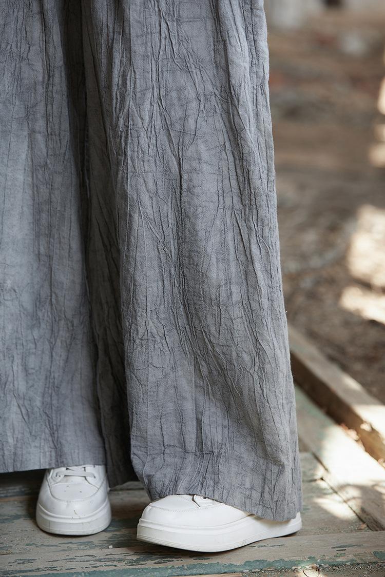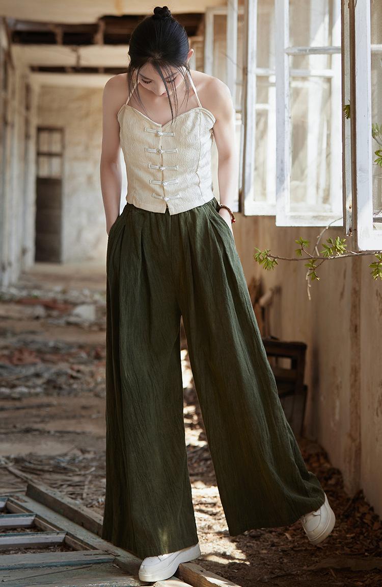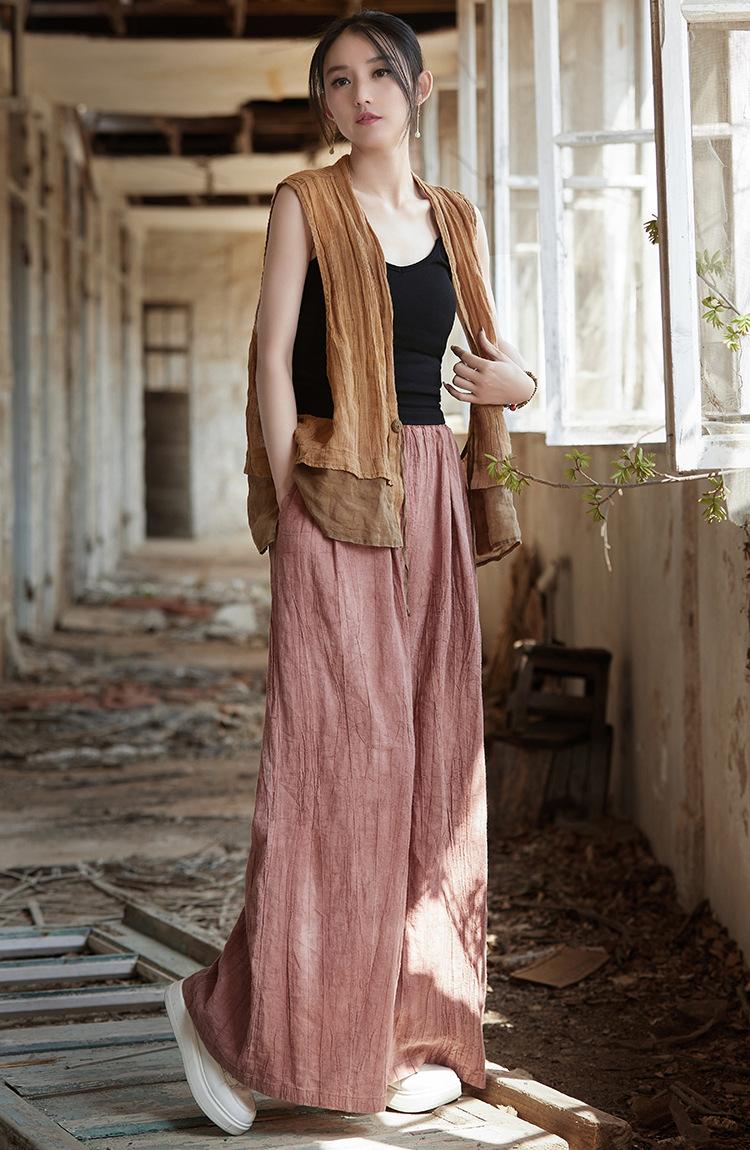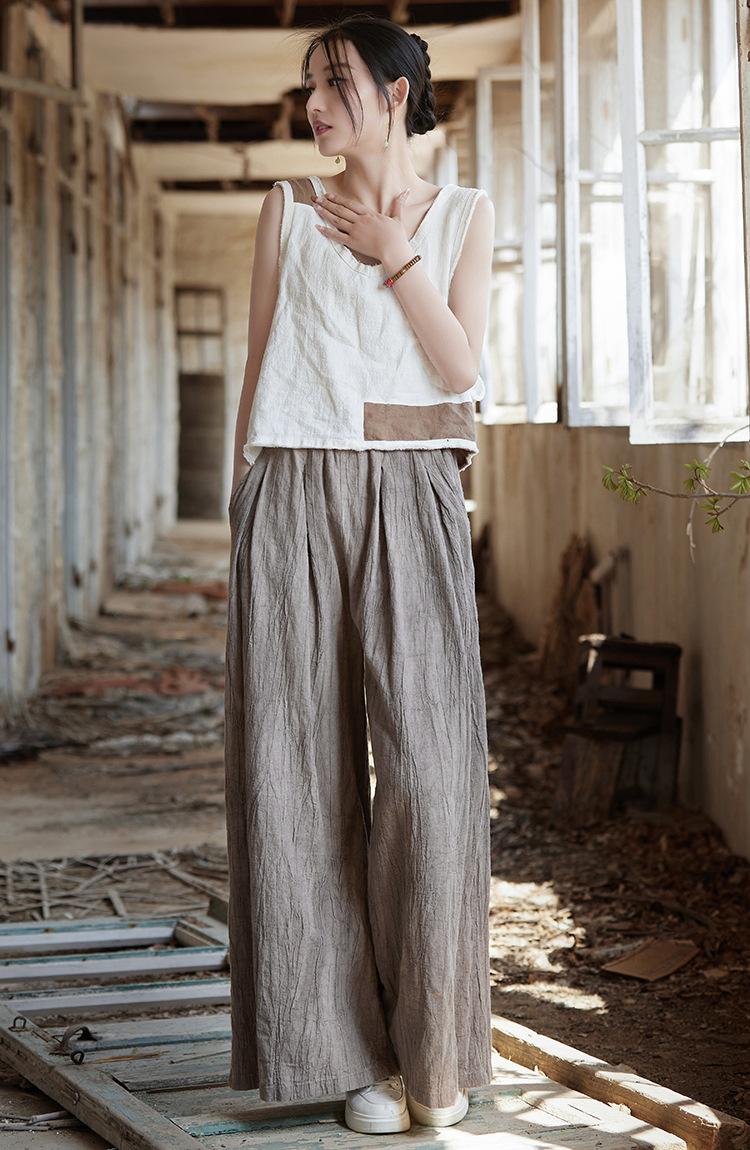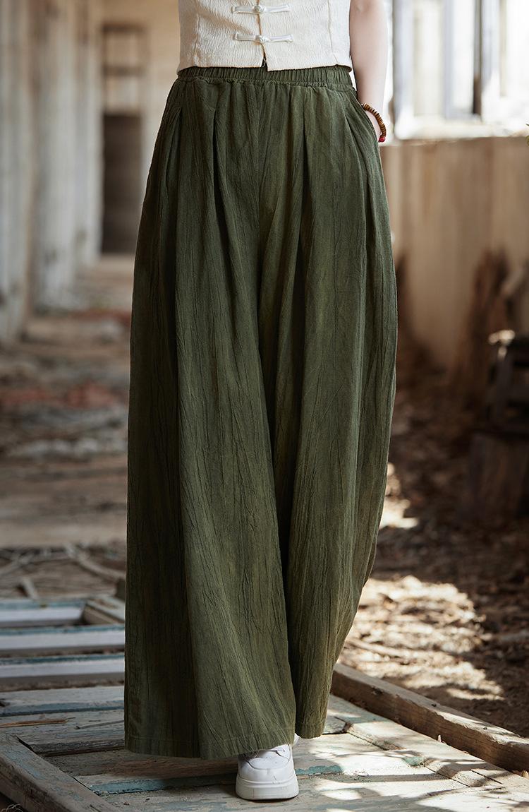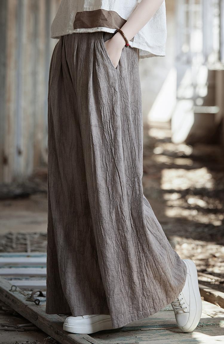 Otoño 2025 Nuevo Ramio Fino Tie-Dye Versátil Pantalones Sueltos Casuales Drapeados Pantalones Anchos de Pierna Ancha para Mujer Pantalones Largos