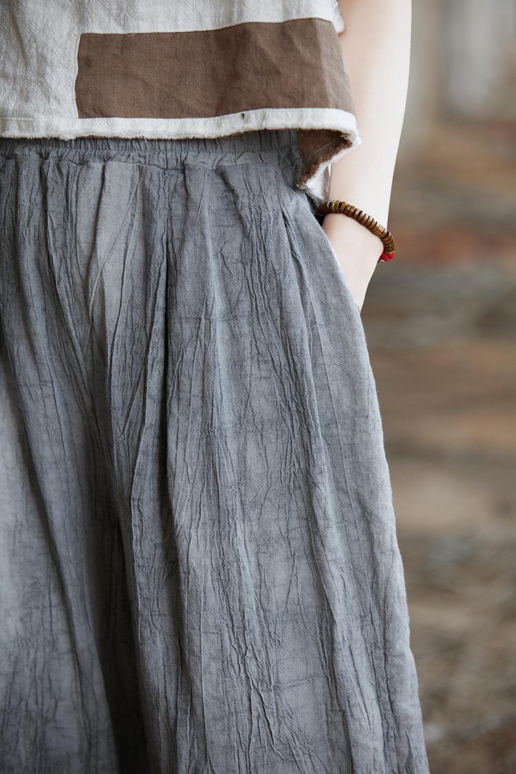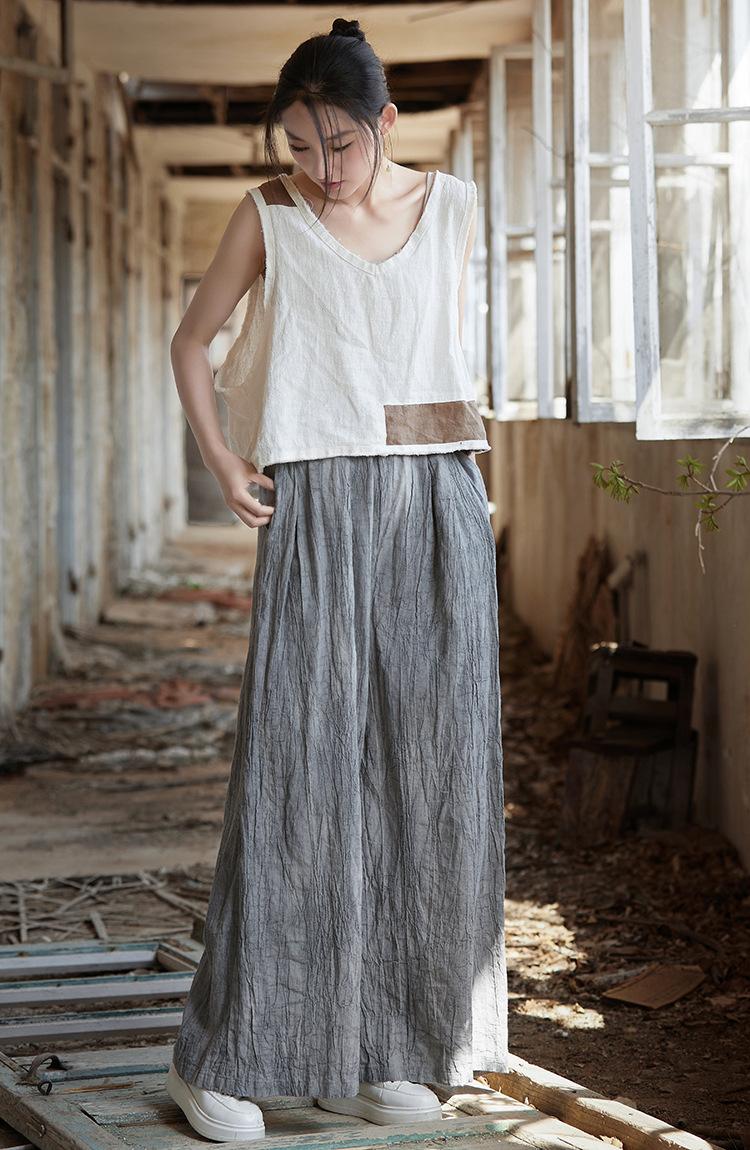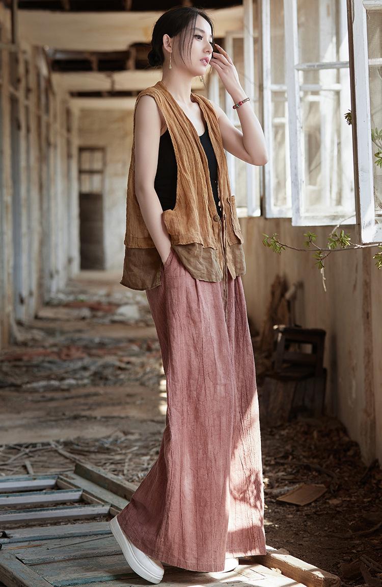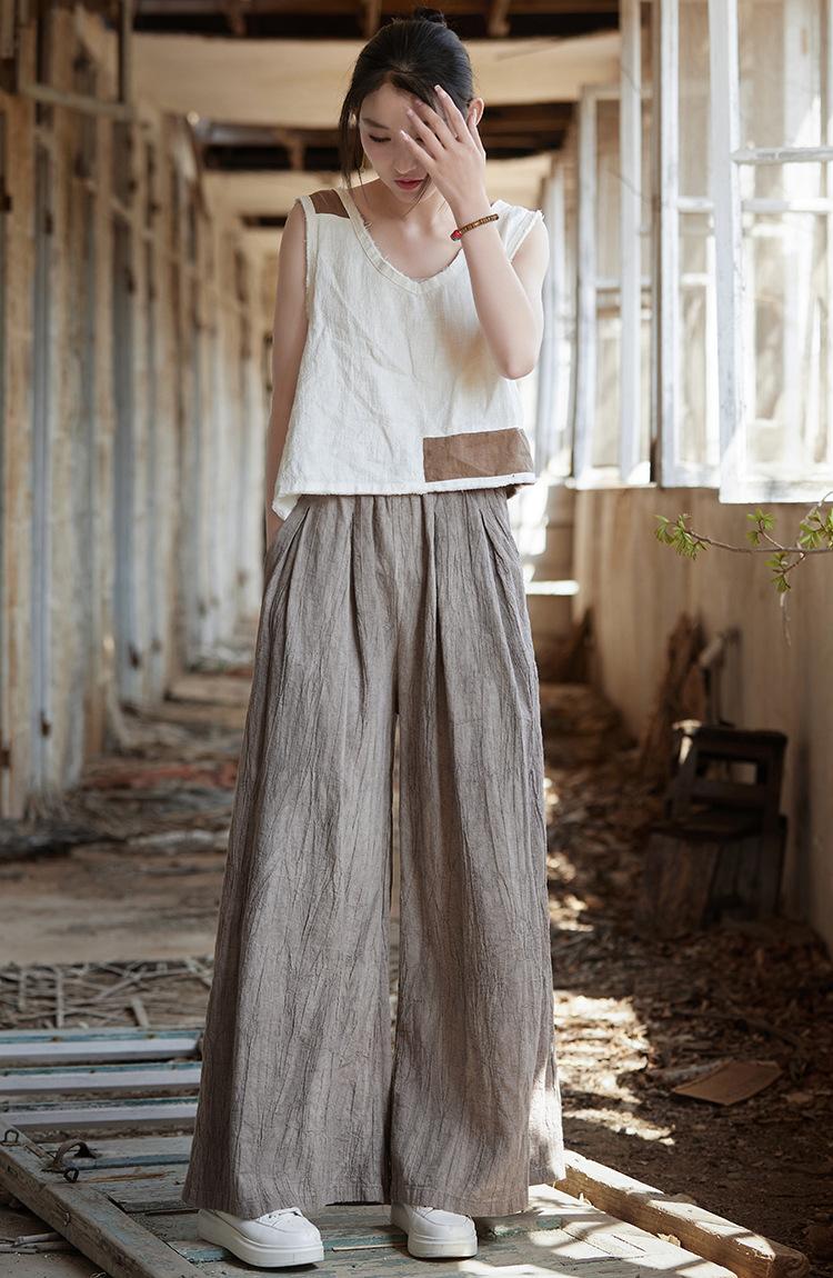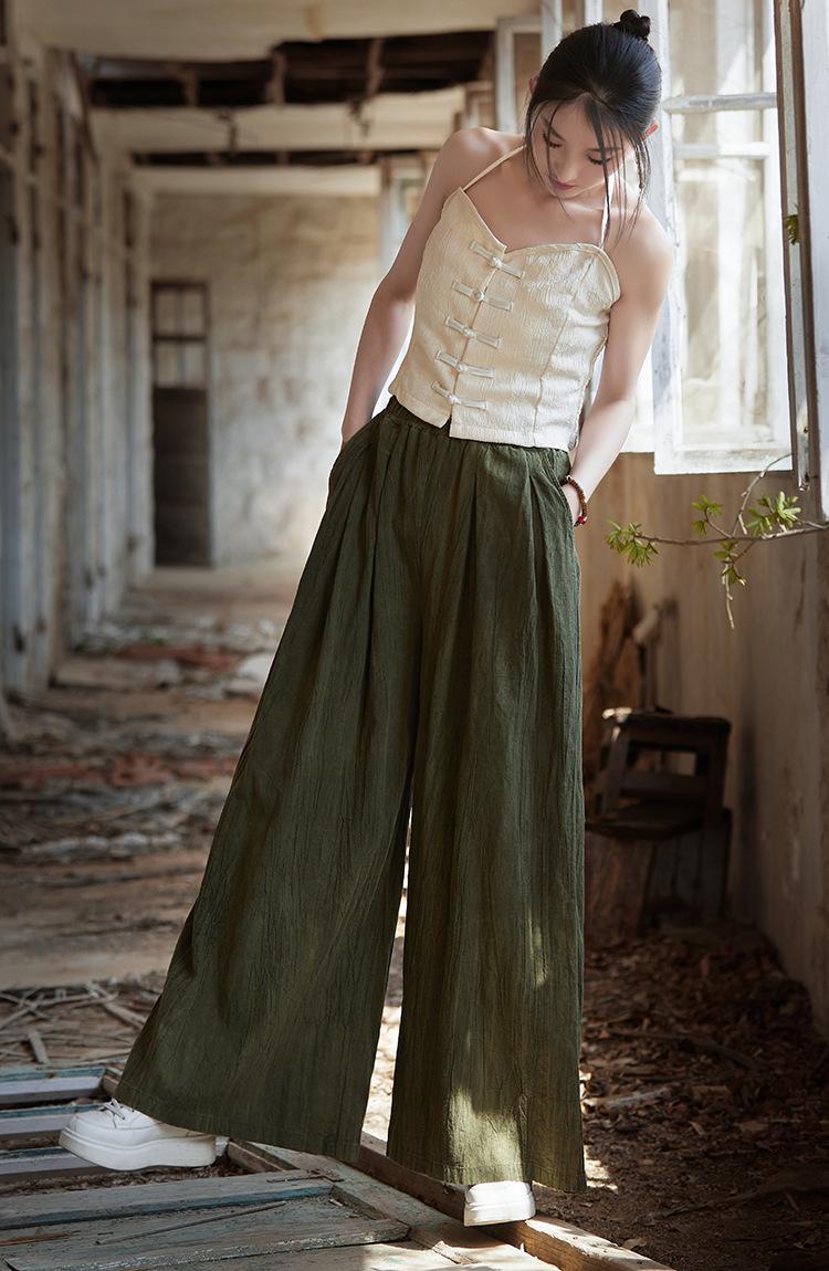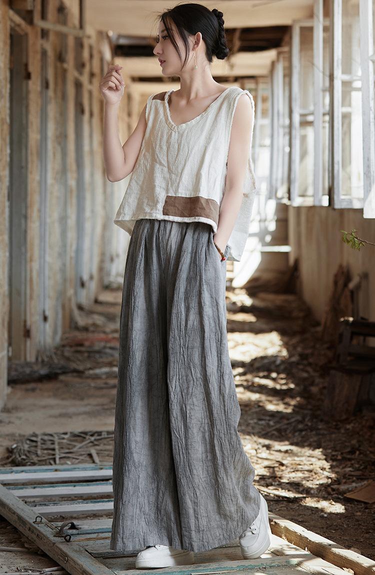 Otoño 2025 Nuevo Ramio Fino Tie-Dye Versátil Pantalones Sueltos Casuales Drapeados Pantalones Anchos de Pierna Ancha para Mujer Pantalones Largos