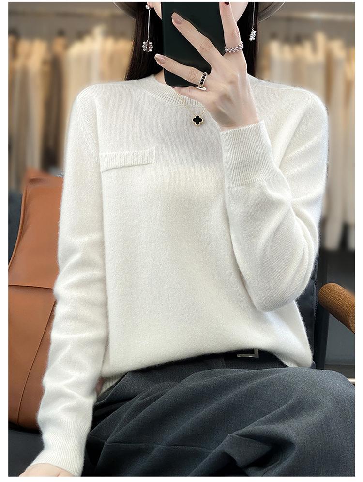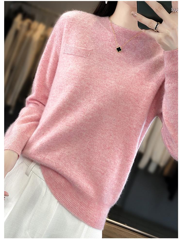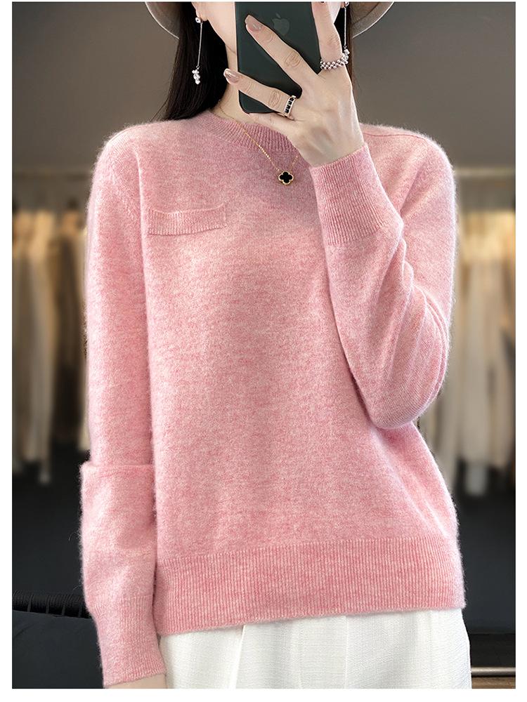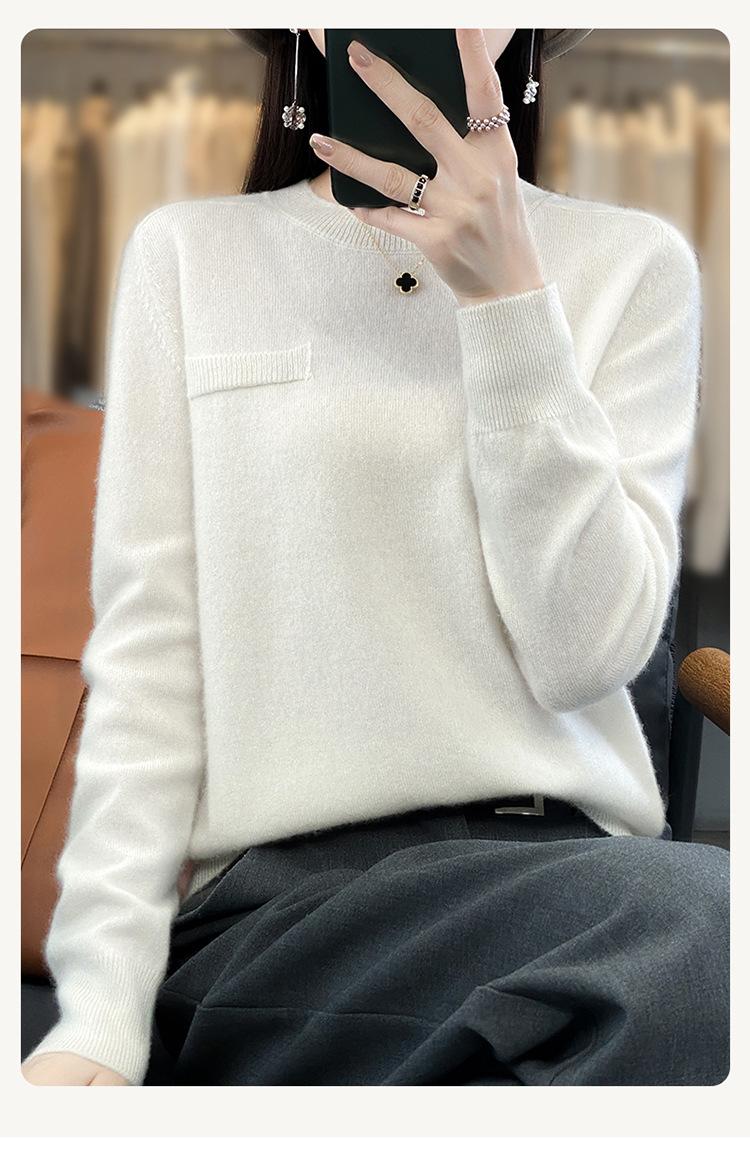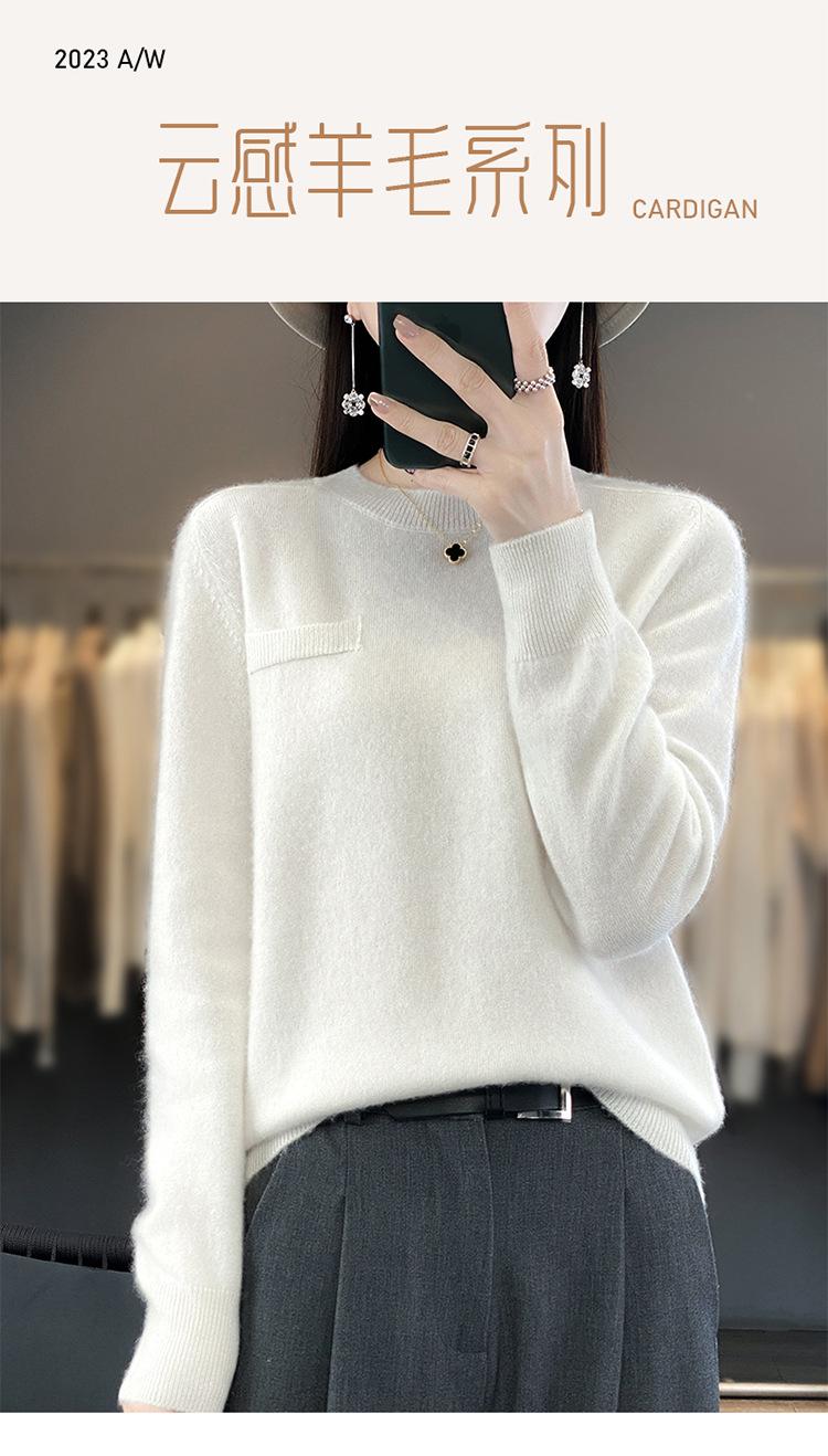 Suéter exterior de lana de color sólido de manga larga con cuello redondo de pura lana para mujer de otoño e invierno de 2023