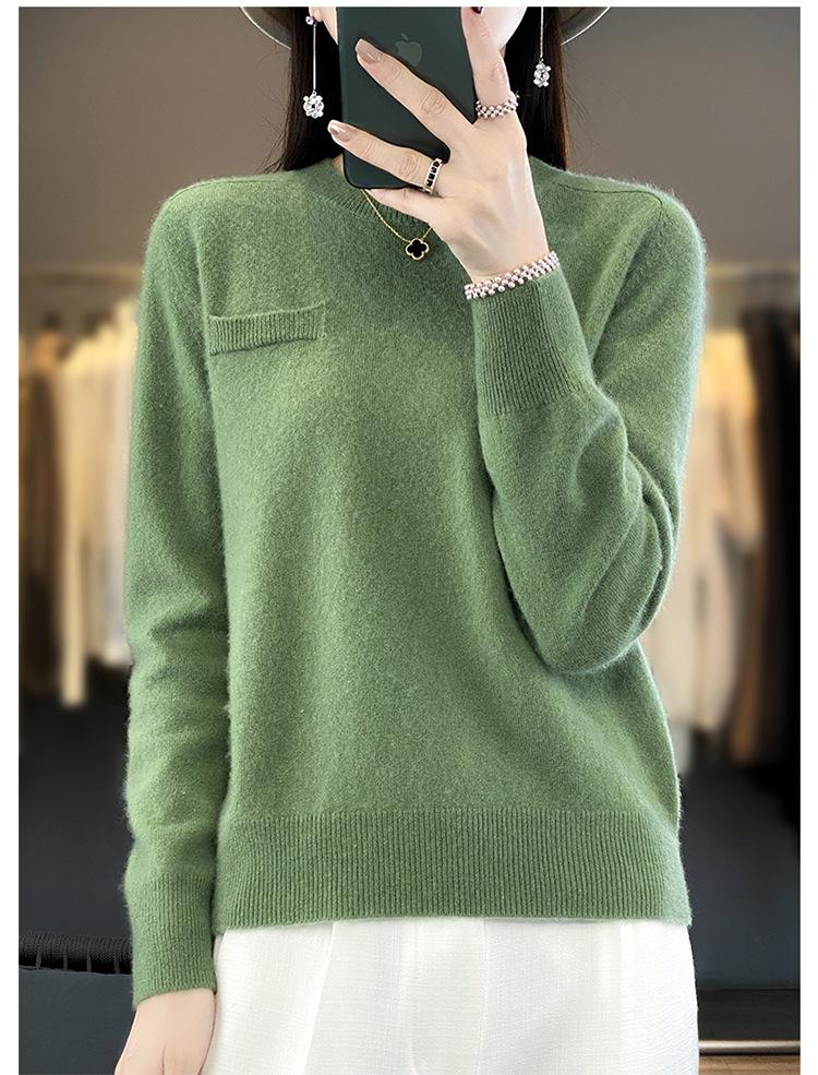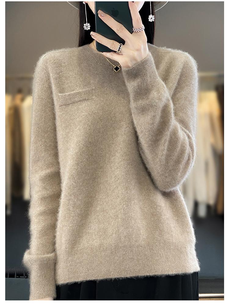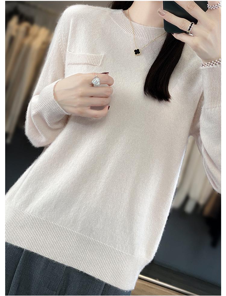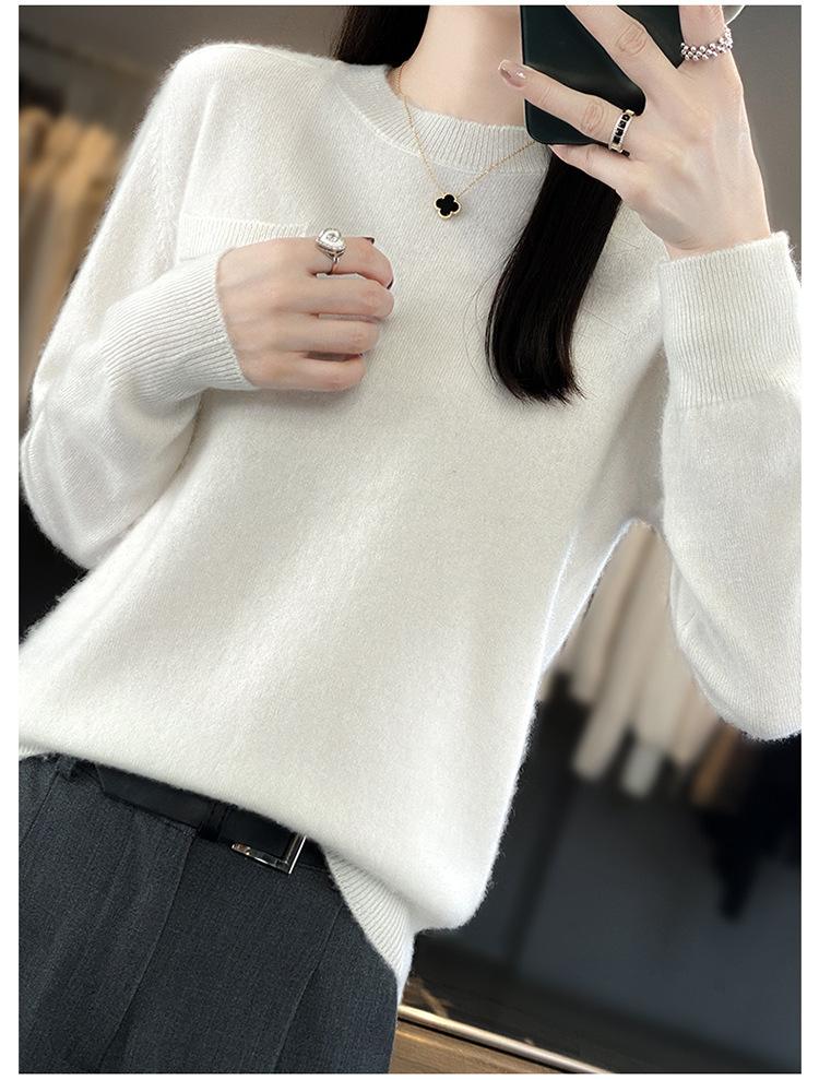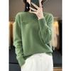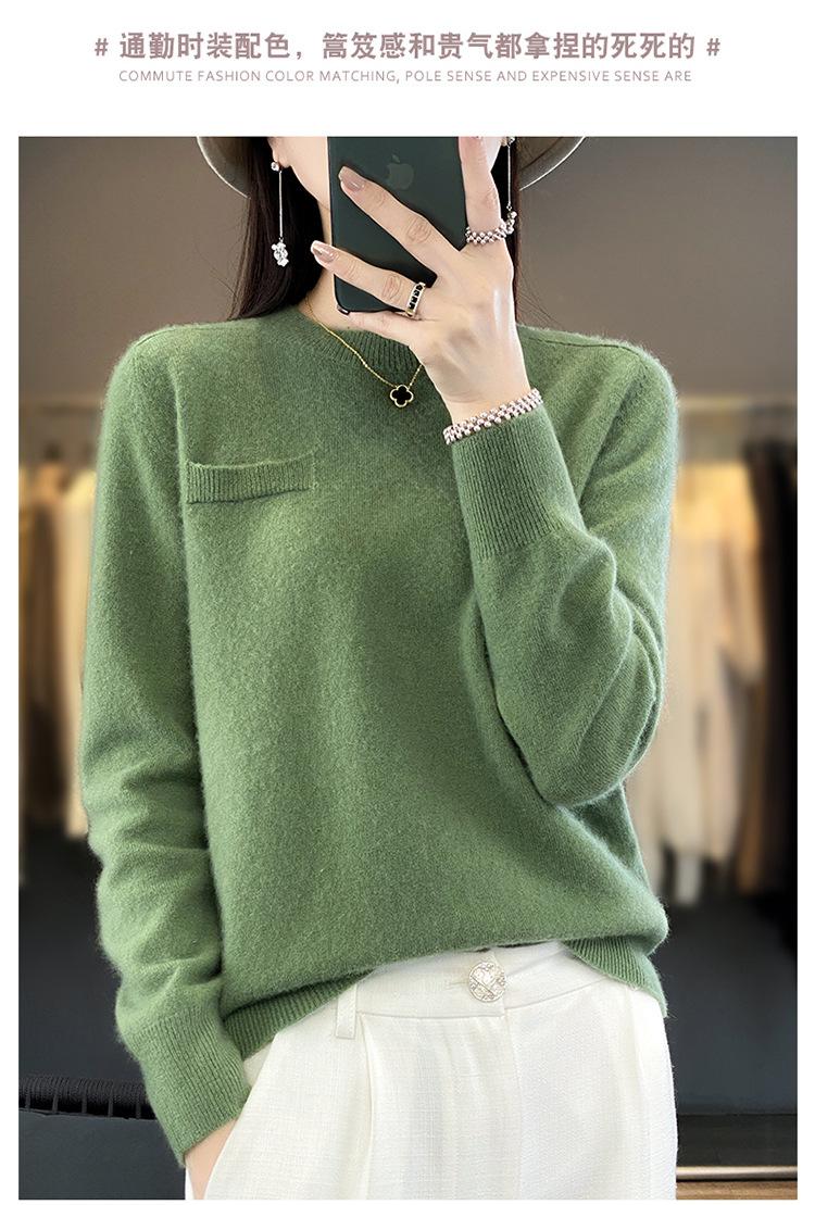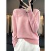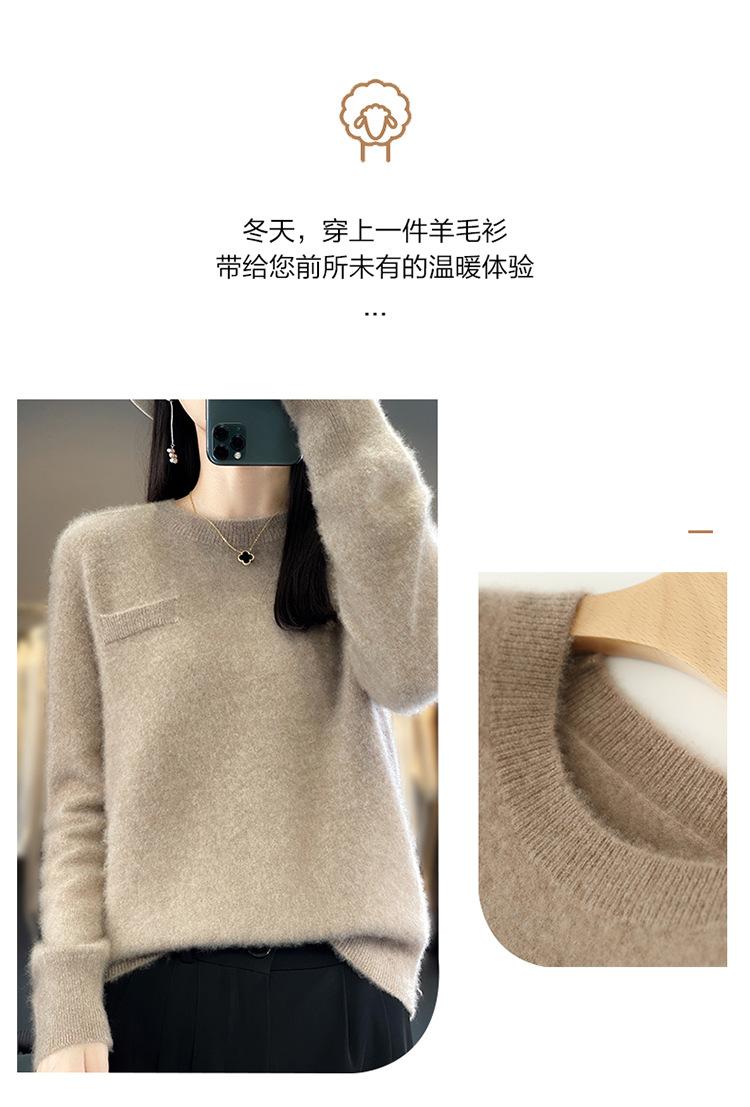 Suéter exterior de lana de color sólido de manga larga con cuello redondo de pura lana para mujer de otoño e invierno de 2023