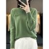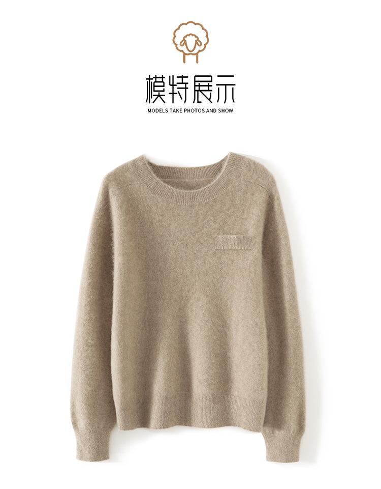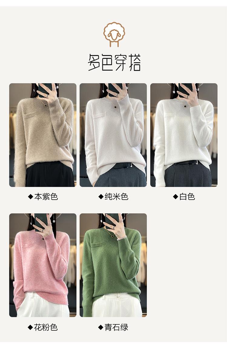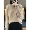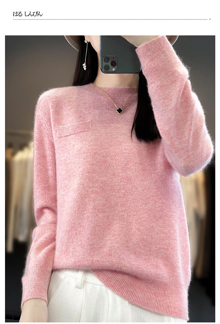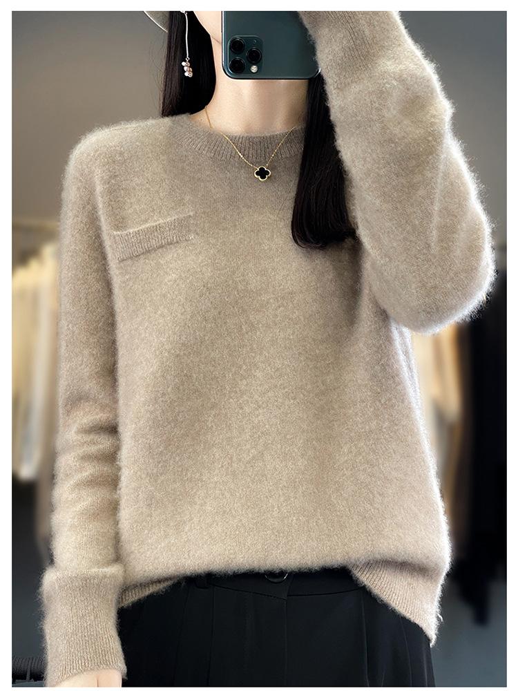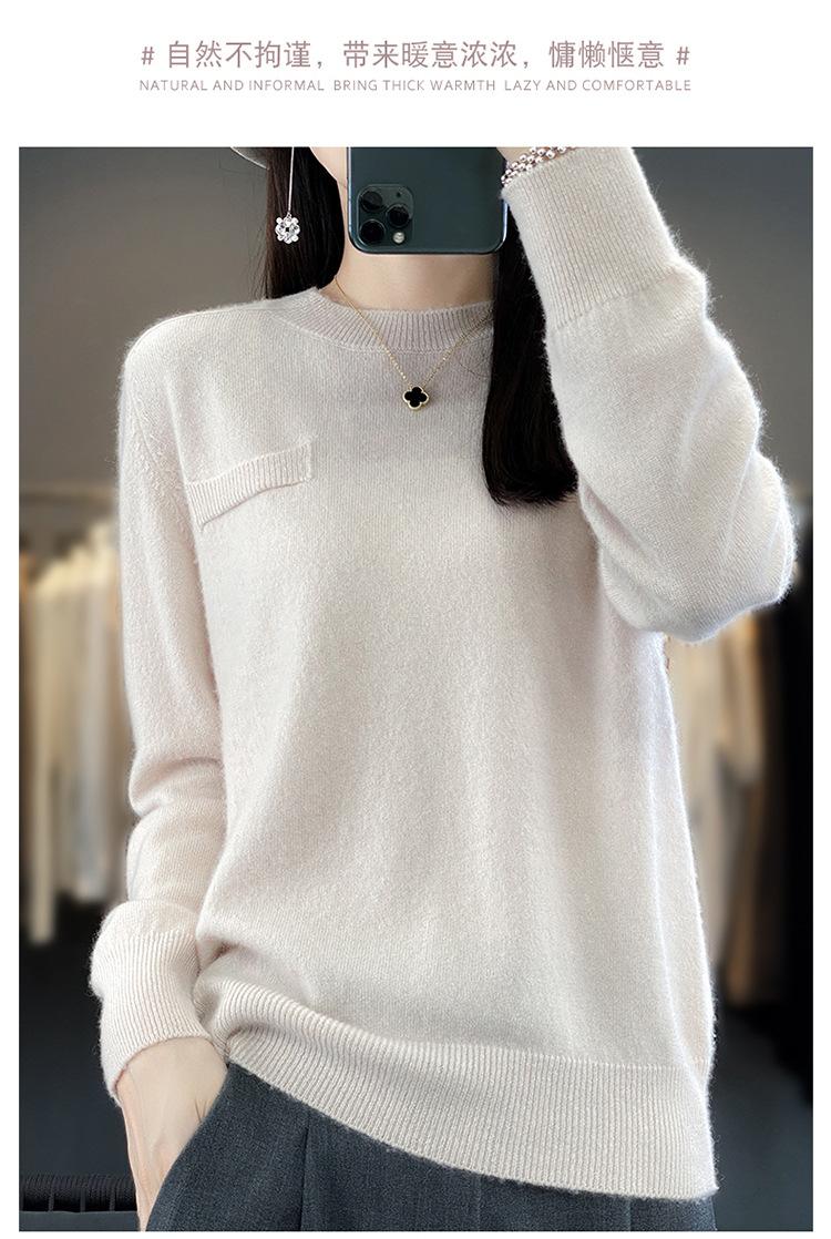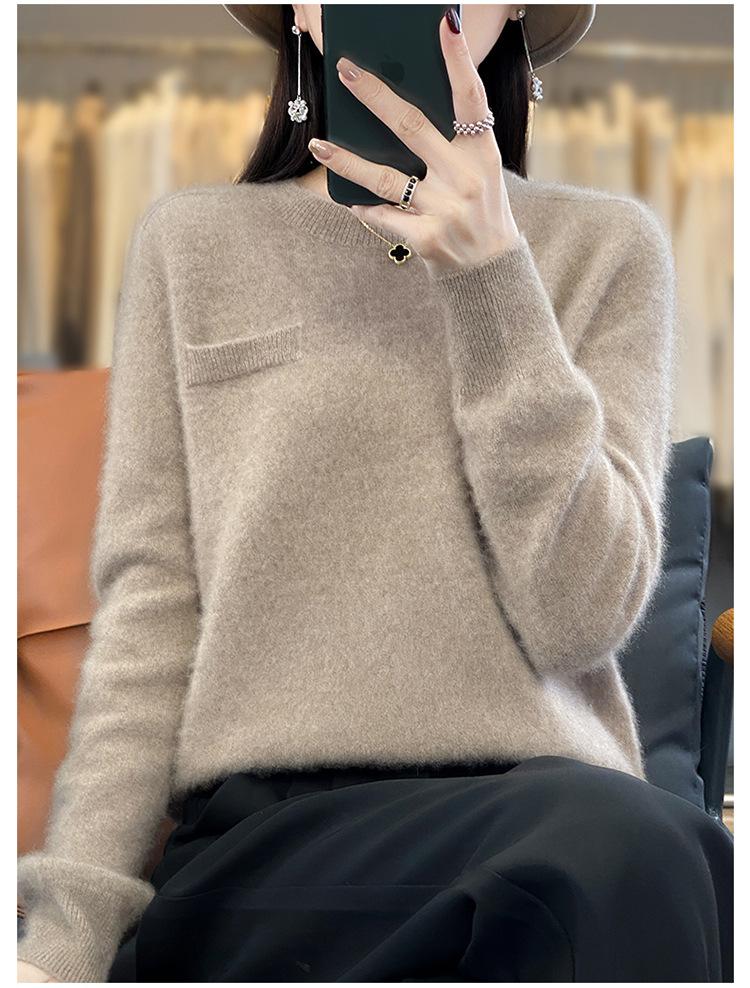 Suéter exterior de lana de color sólido de manga larga con cuello redondo de pura lana para mujer de otoño e invierno de 2023