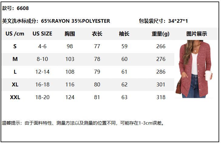 Abrigo cárdigan de manga larga holgado de color sólido con bolsillo para mujer, otoño e invierno, comercio exterior transfronterizo europeo y americano de Amazon 2023
