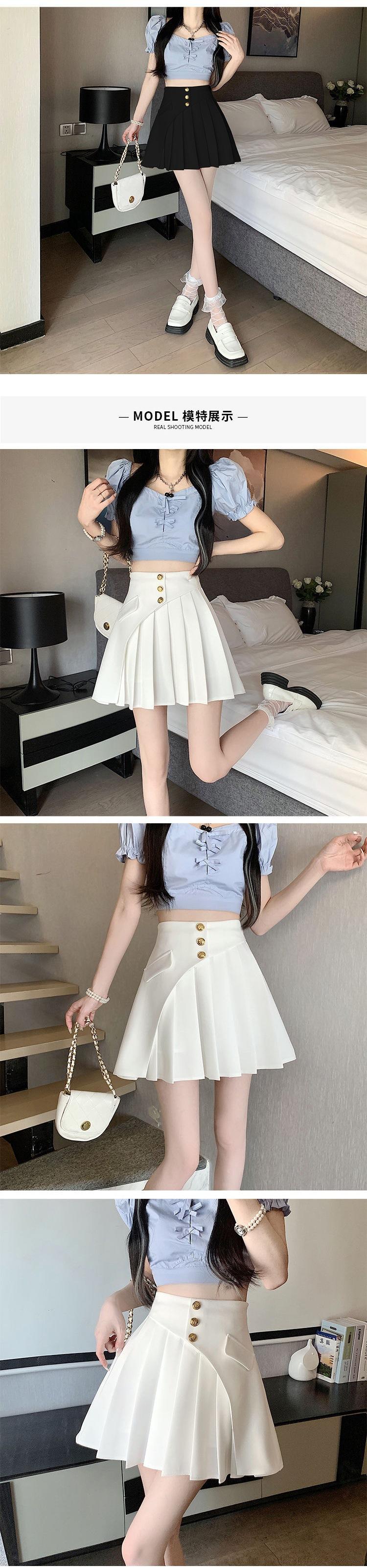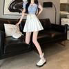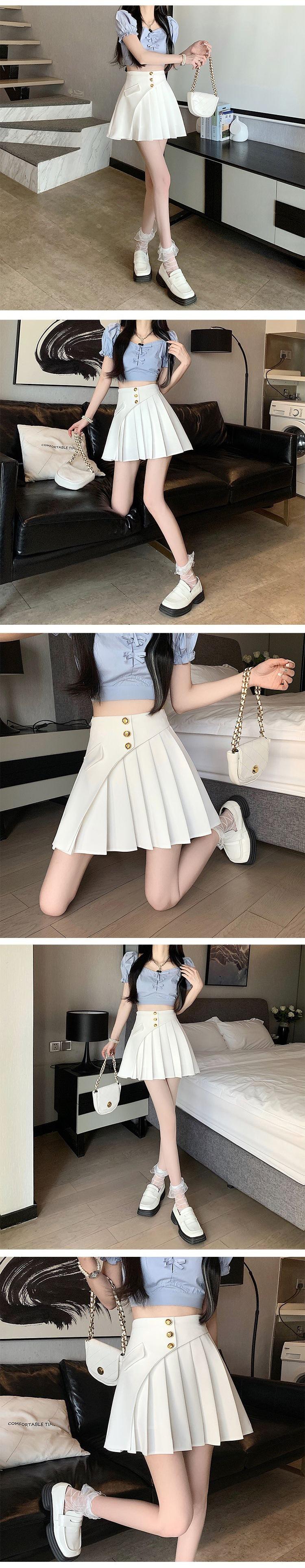 Falda plisada hermana gorda blanca estilo nuevo cubre vientre blanca irregular verano cintura alta cubre caderas falda línea A para mujer