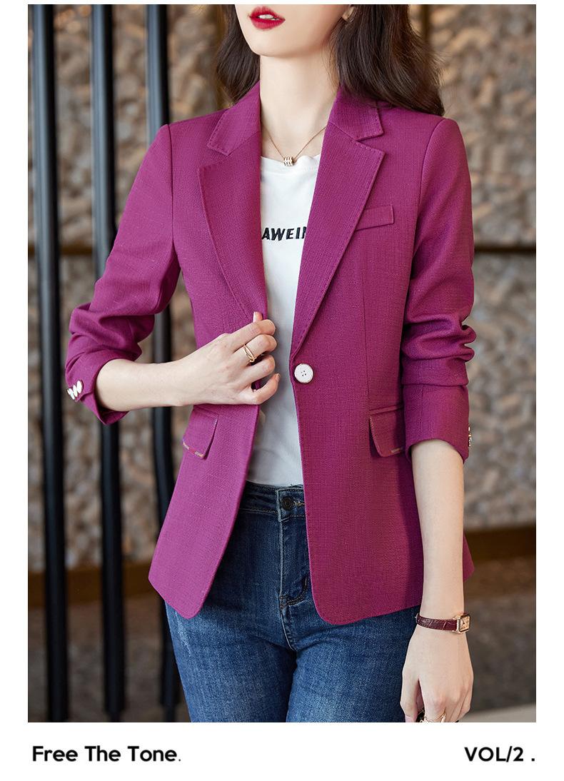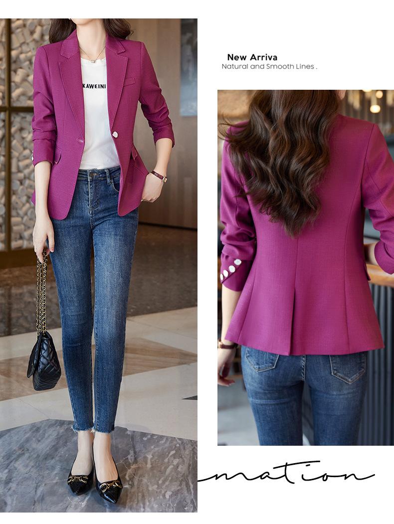 Traje profesional coreano de primavera 2023, chaqueta de manga larga morada, traje pequeño para mujer, ropa de trabajo, vestido formal