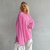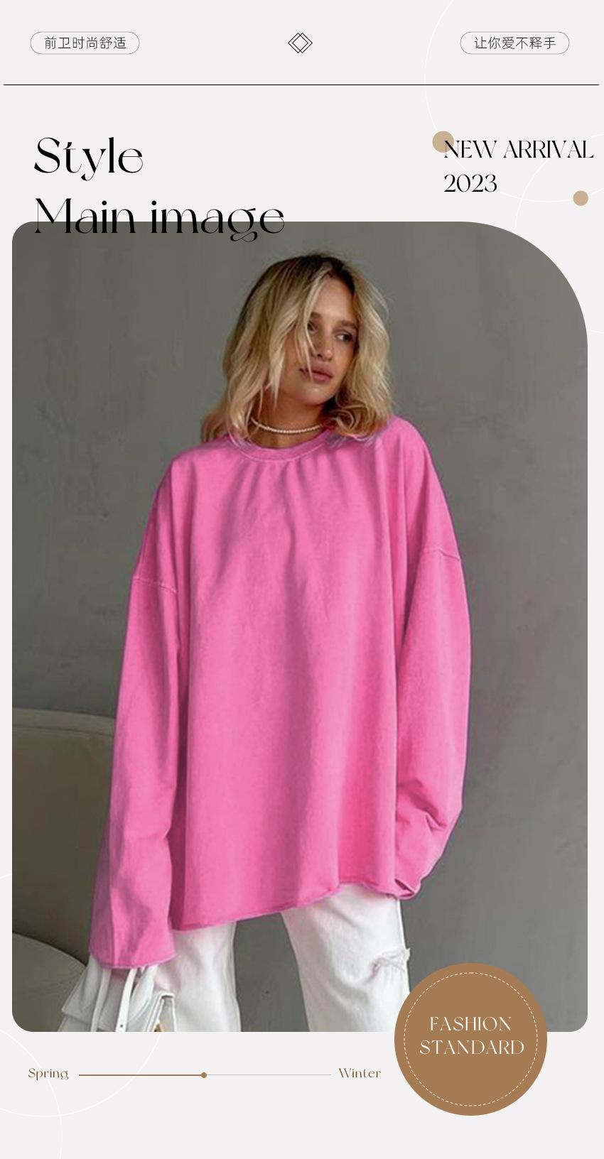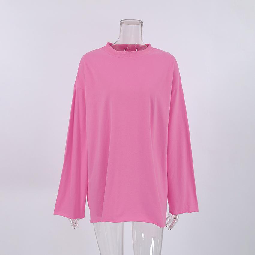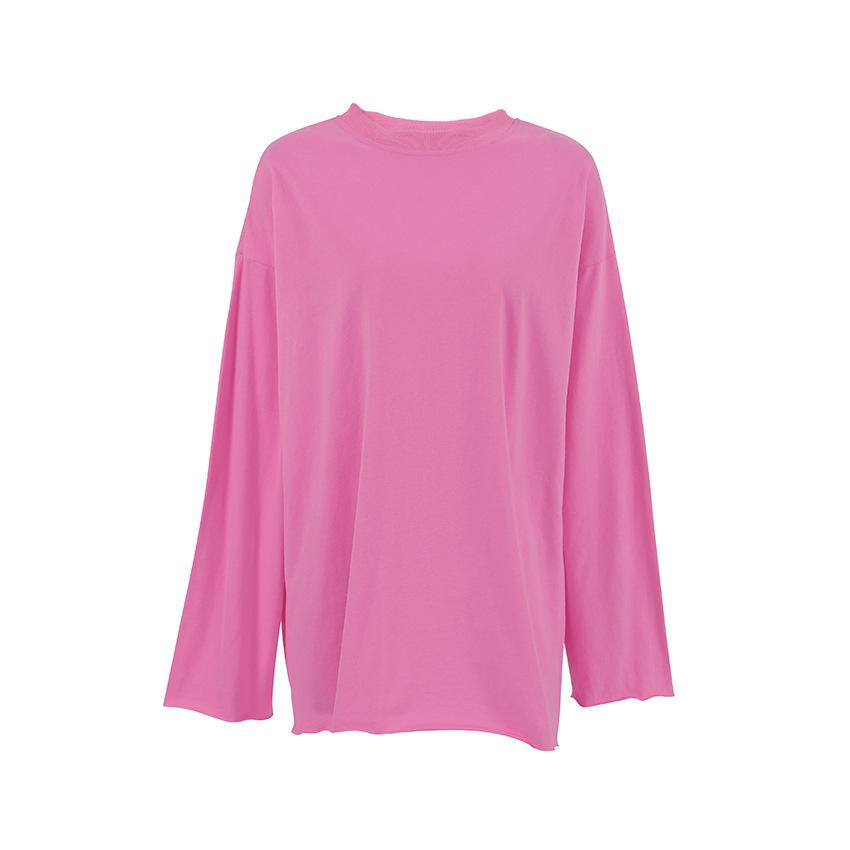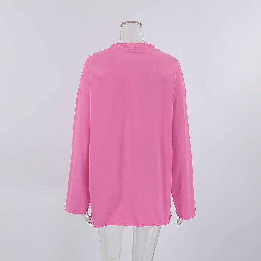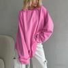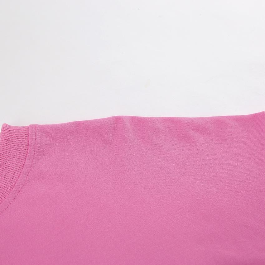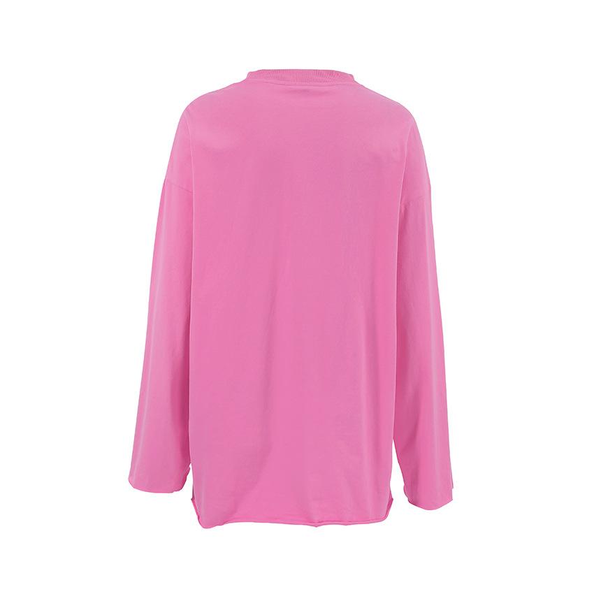 Camiseta Americana de Calle Otoño 2025 Rosa Cuello Redondo Manga Larga Diseño para Mujer Holgada Algodón Jersey Top Ropa de Mujer