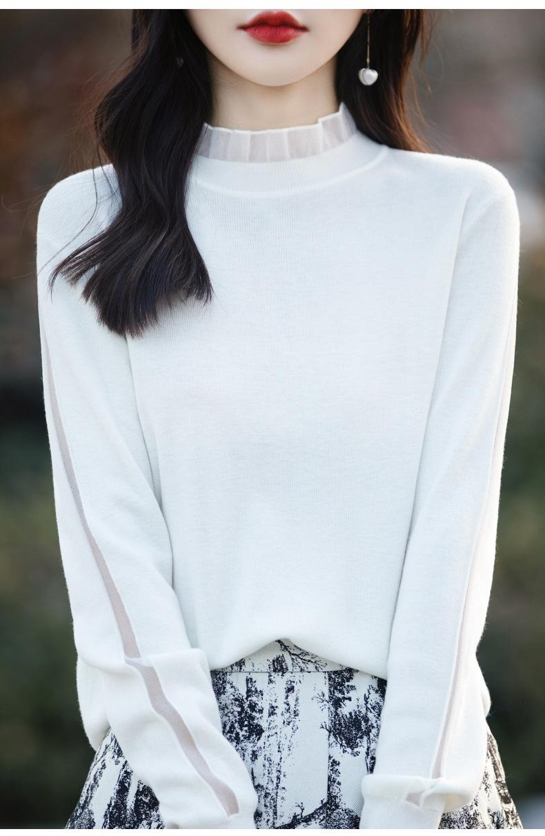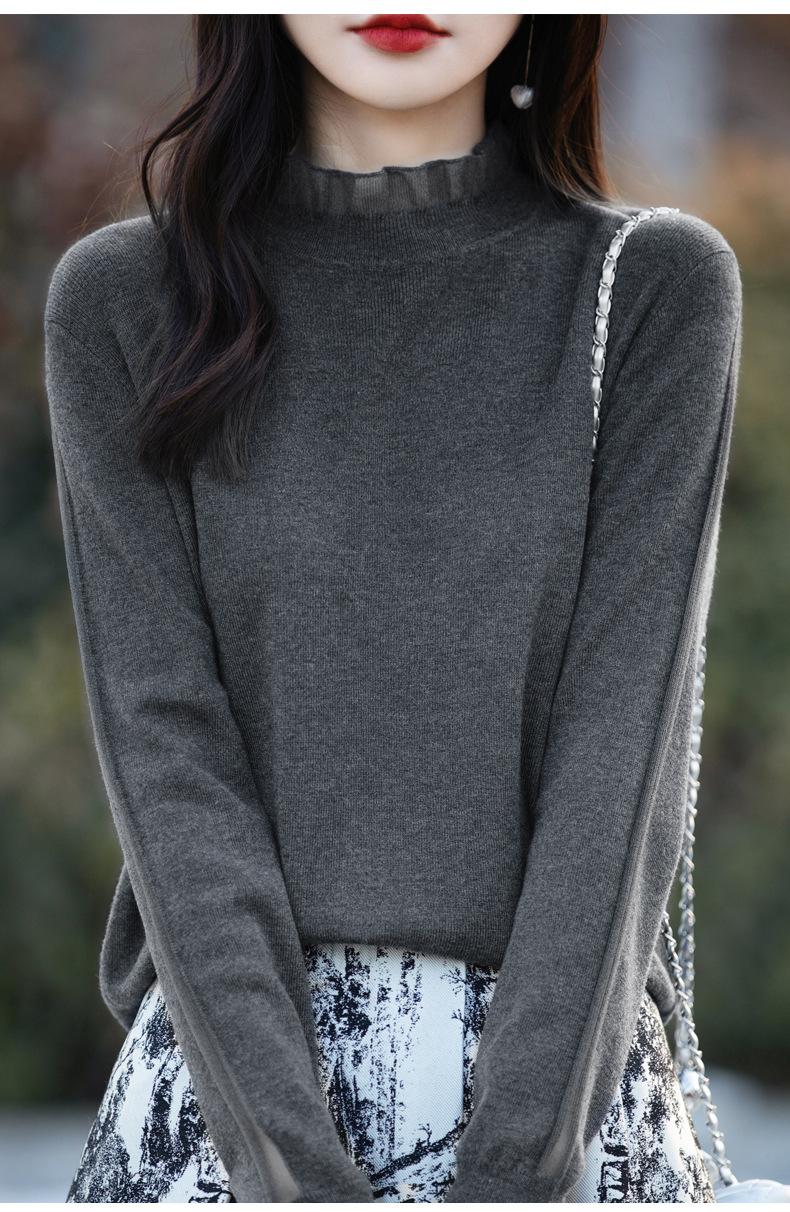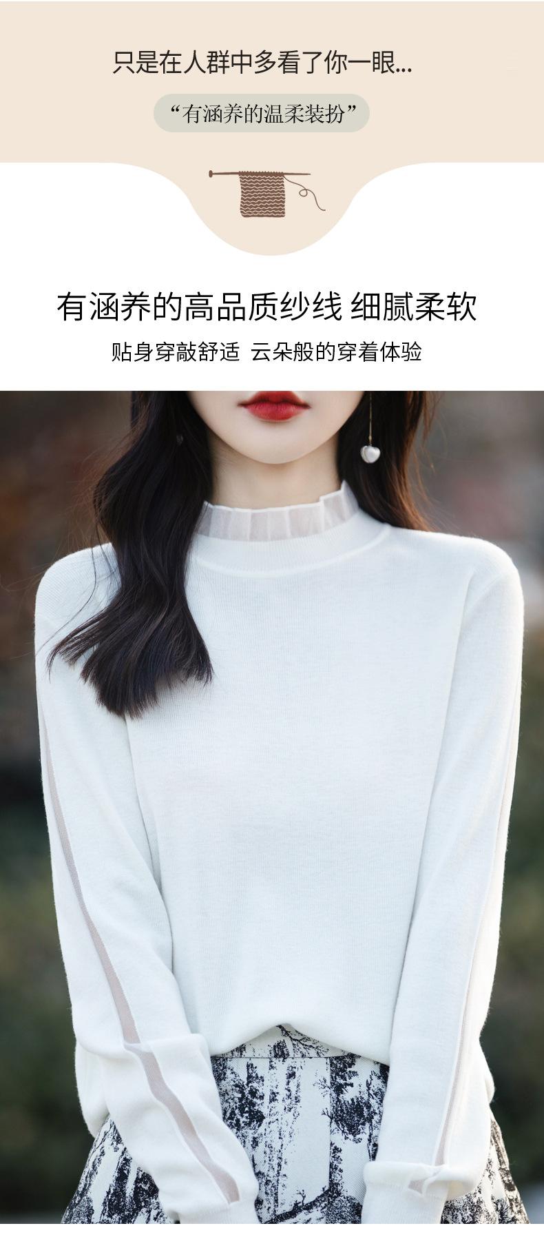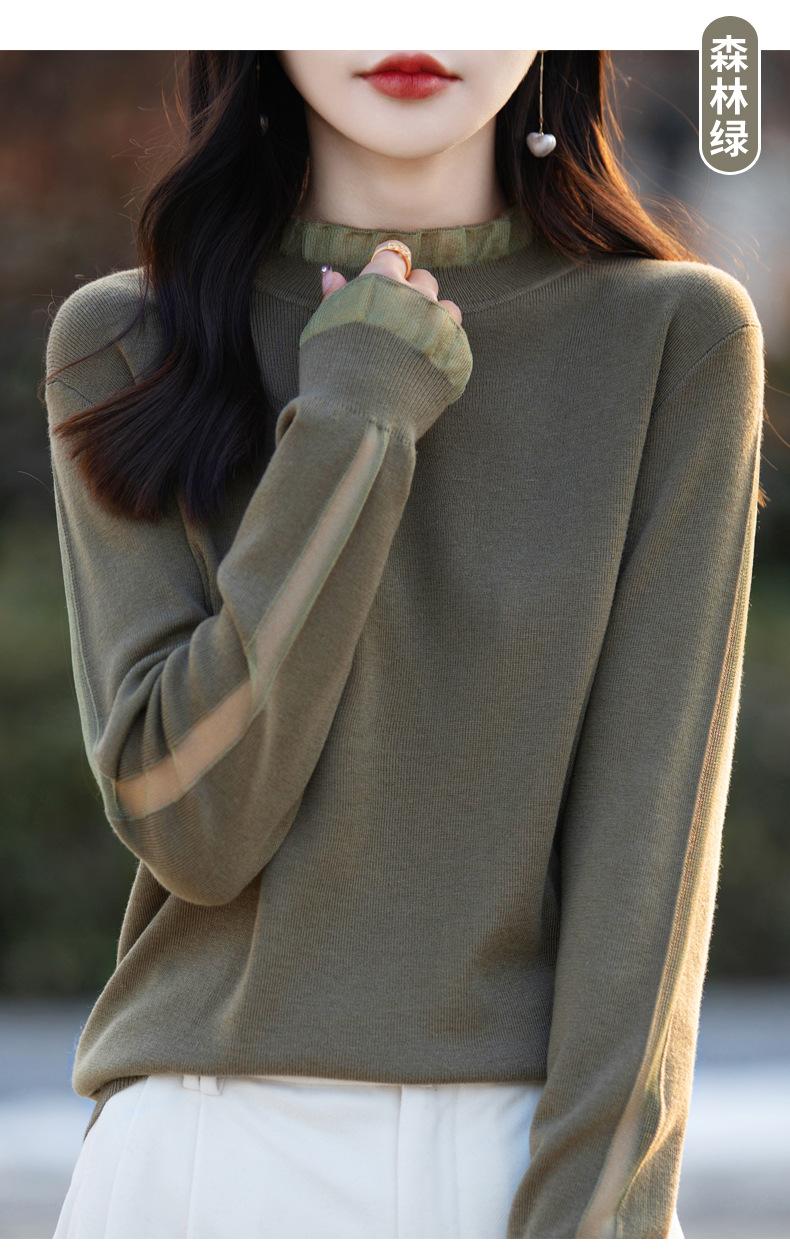 Suéter con cuello de oreja de madera redondo y costura de encaje para mujer, suéter retro holgado, suéter para mujer, primavera 2024