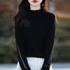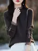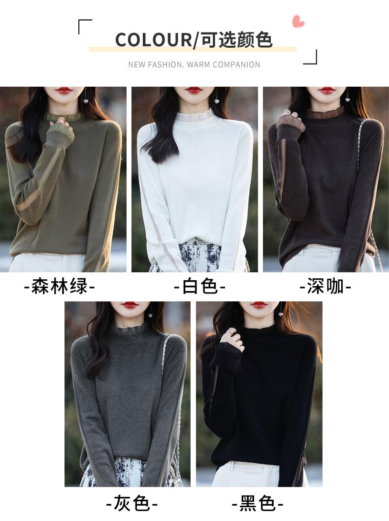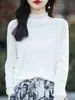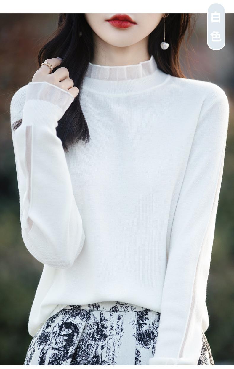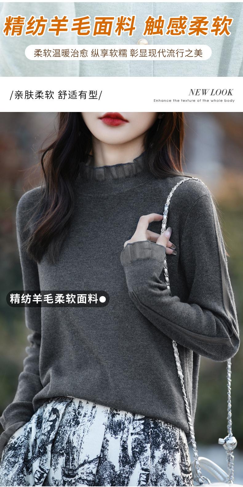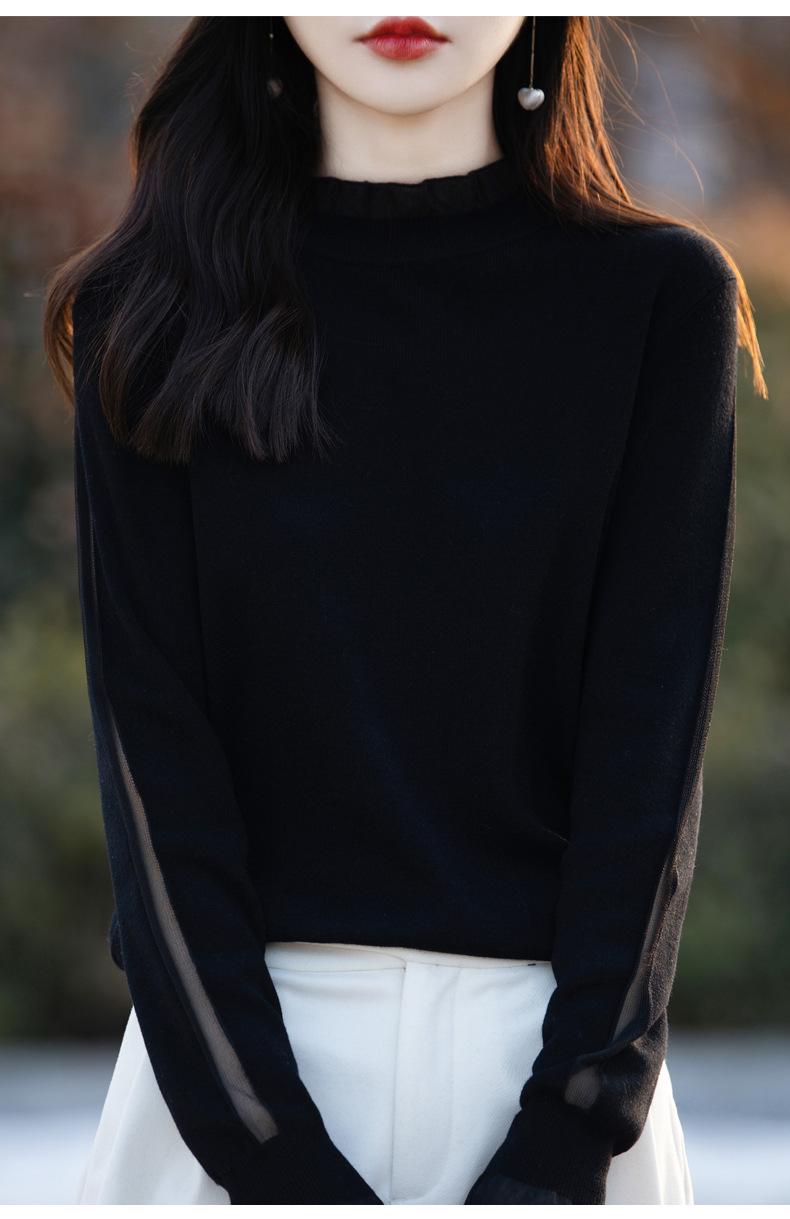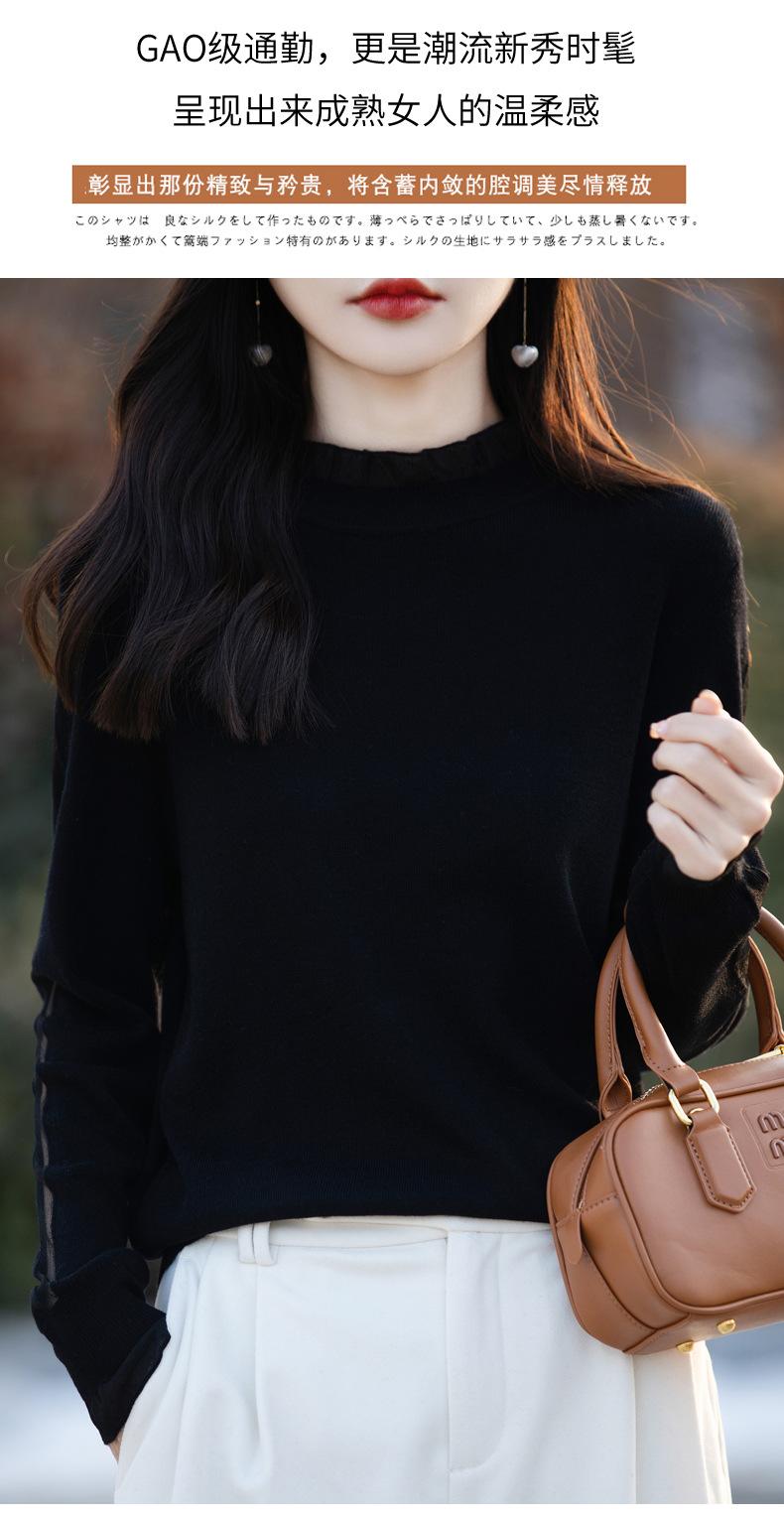 Suéter con cuello de oreja de madera redondo y costura de encaje para mujer, suéter retro holgado, suéter para mujer, primavera 2024