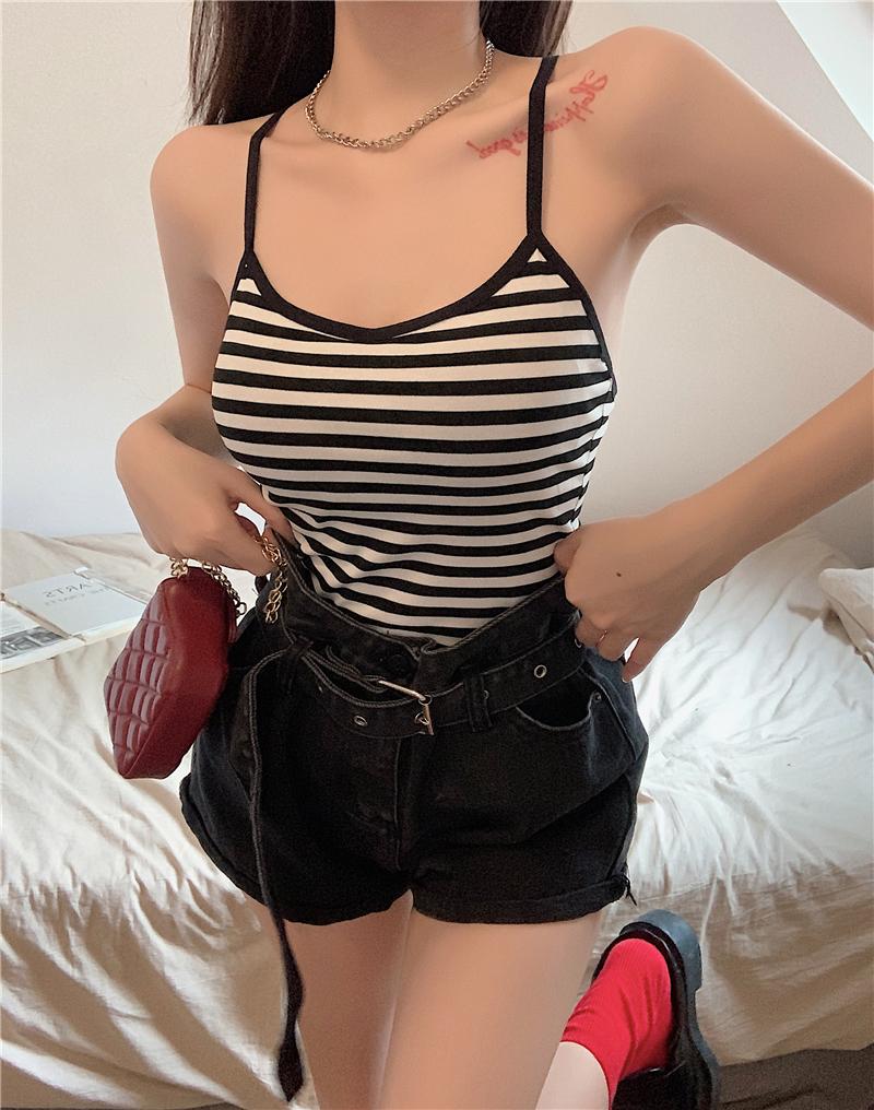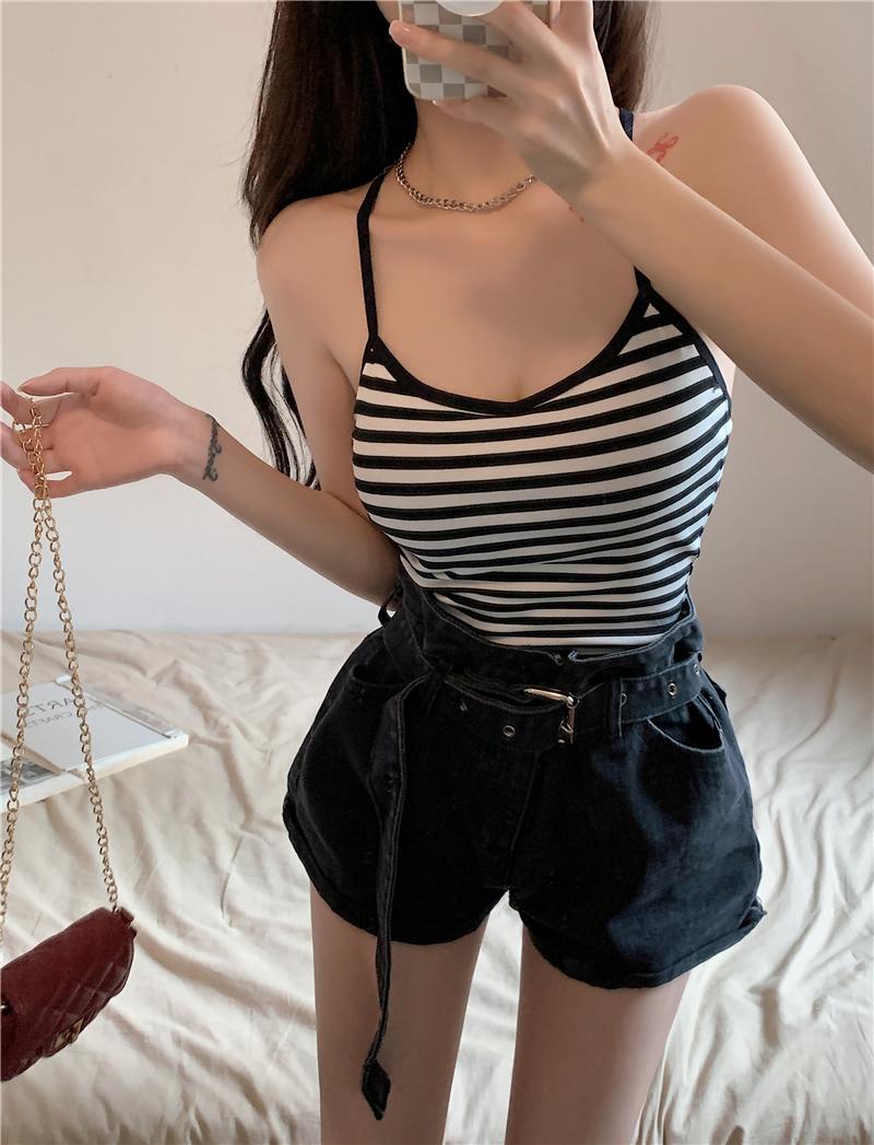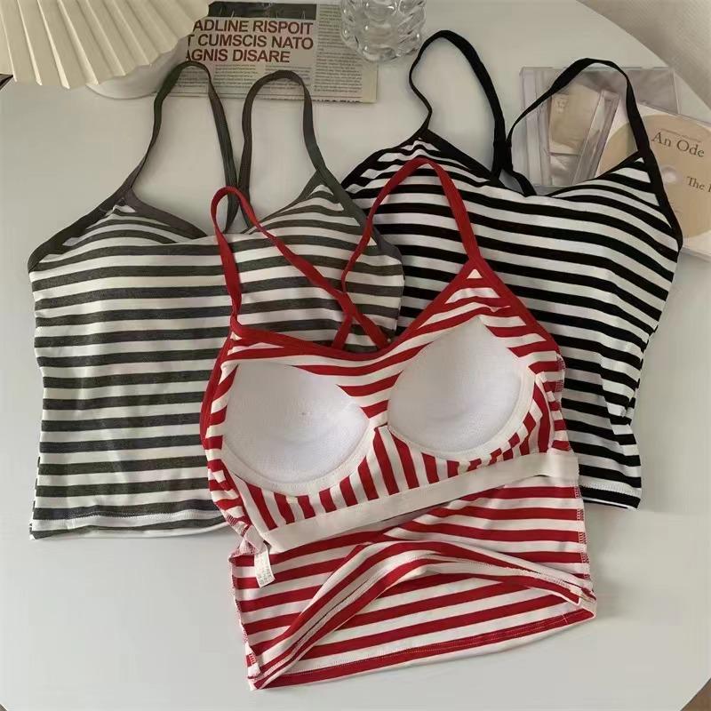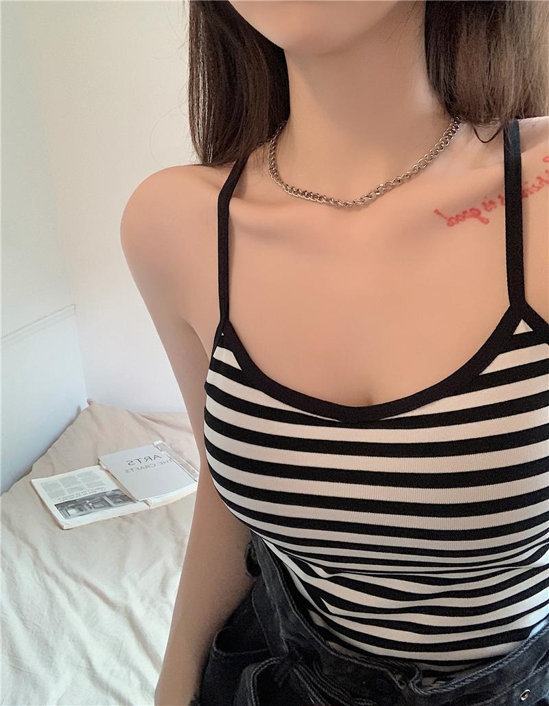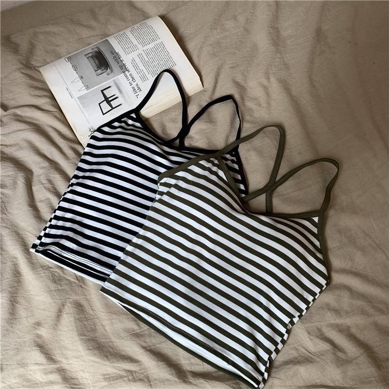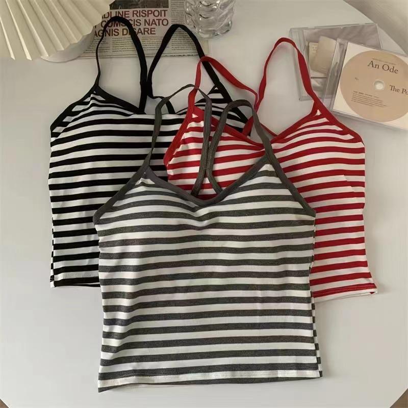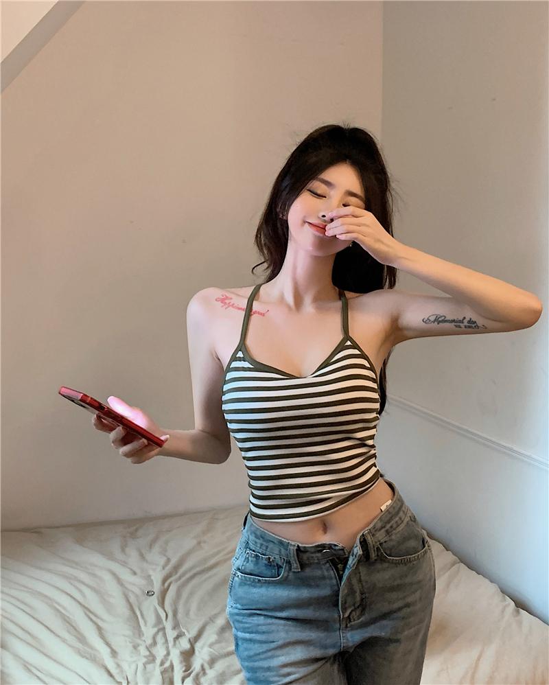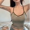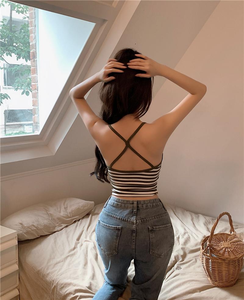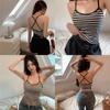 Camisola de rayas para niña, corta, sin mangas, cuello bajo, corte entallado con almohadilla para el pecho, ropa interior de belleza para la espalda, ropa interior sexy y atractiva para chica