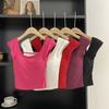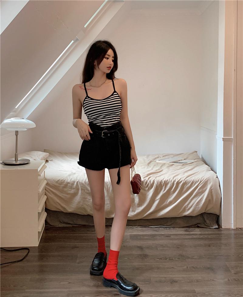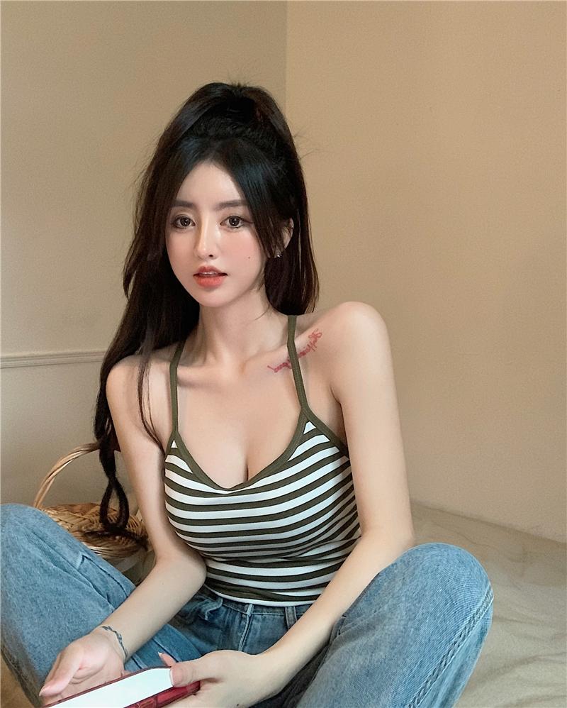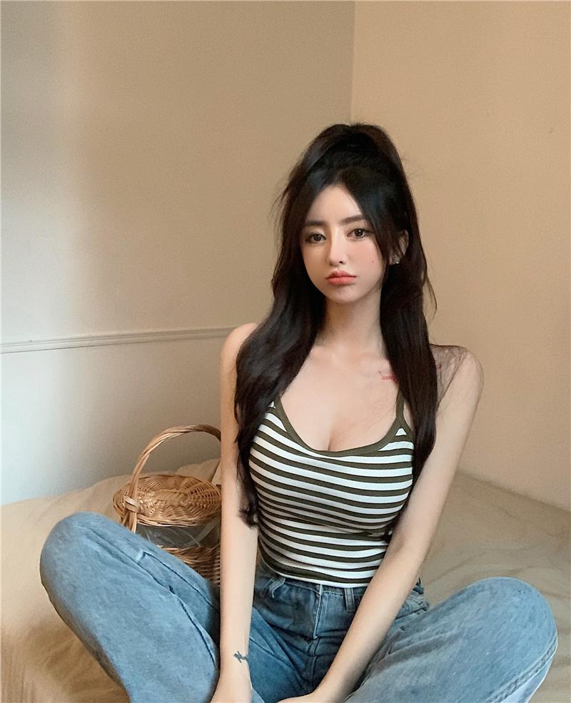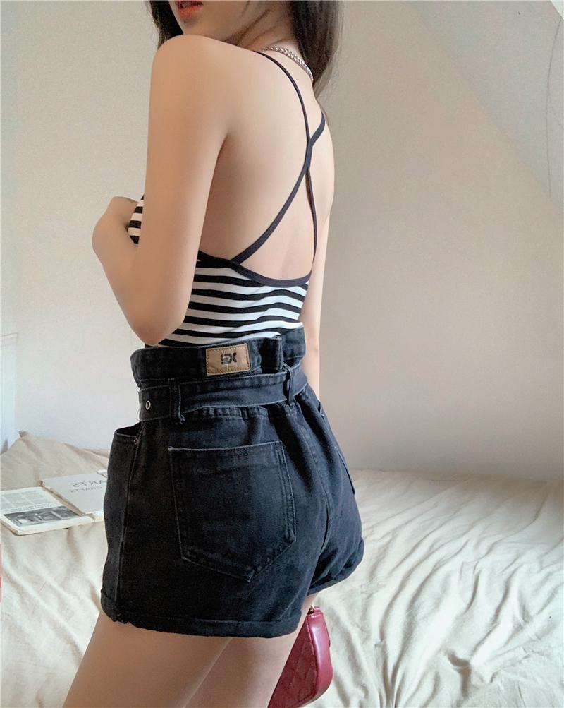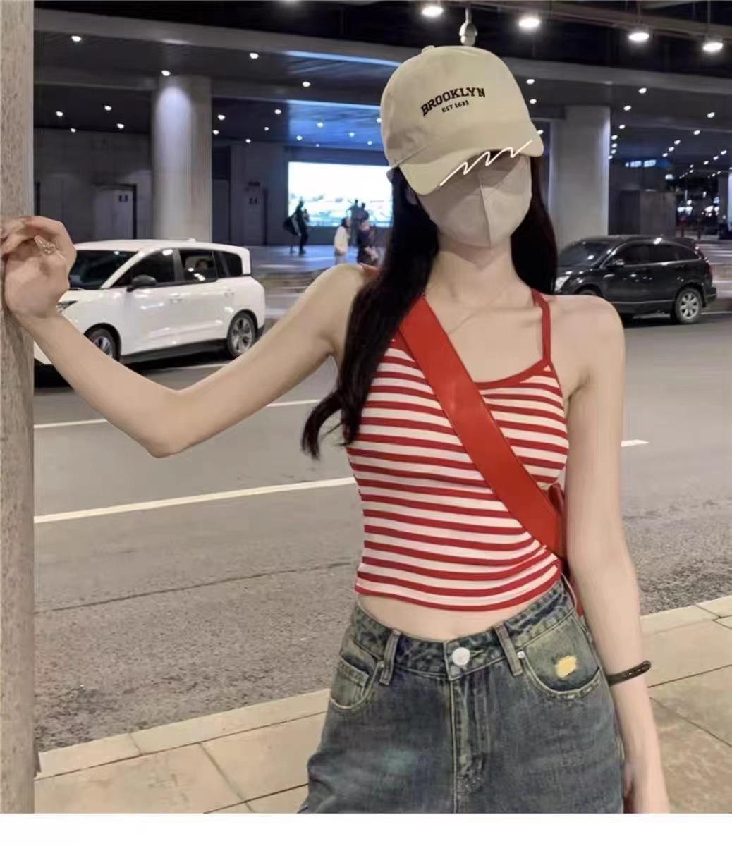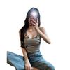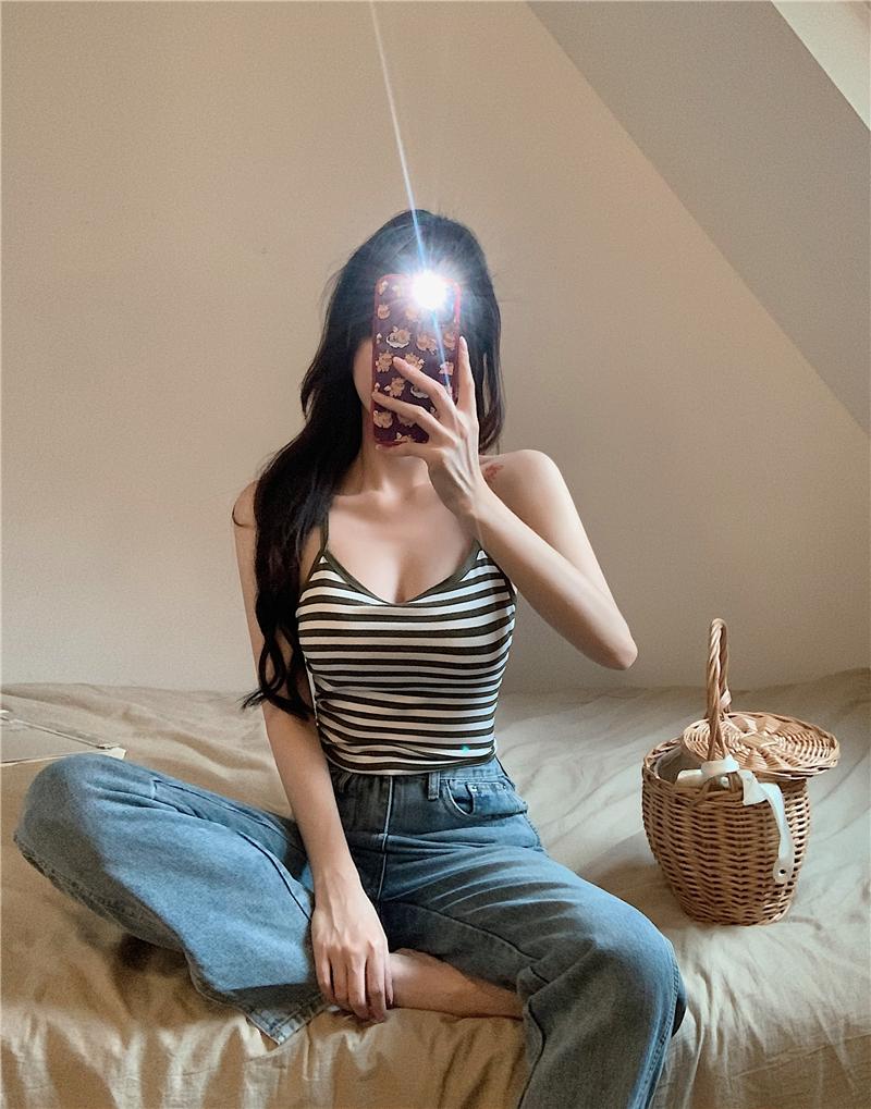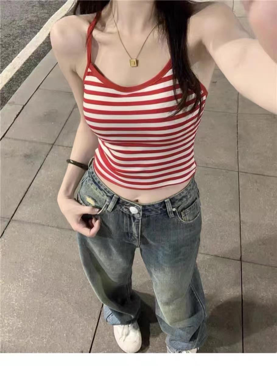 Camisola de rayas para niña, corta, sin mangas, cuello bajo, corte entallado con almohadilla para el pecho, ropa interior de belleza para la espalda, ropa interior sexy y atractiva para chica