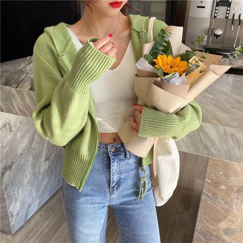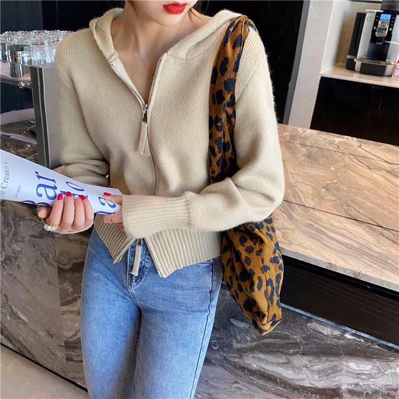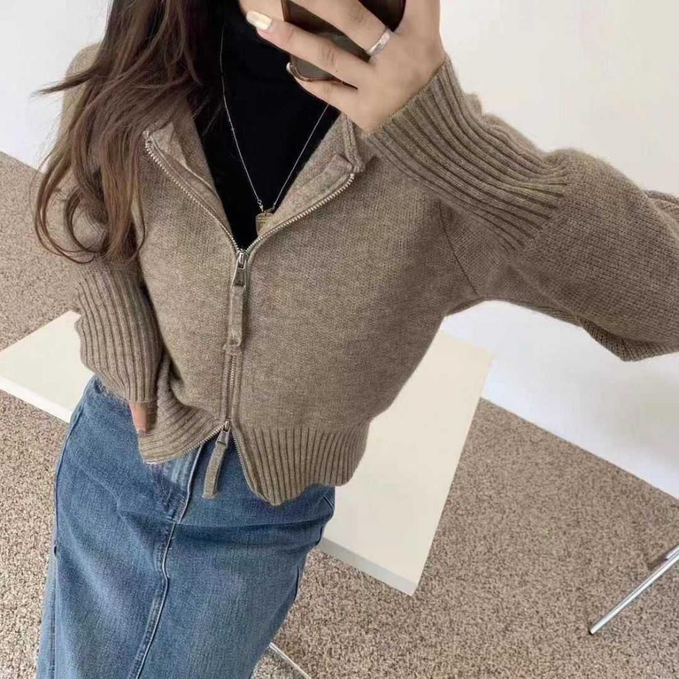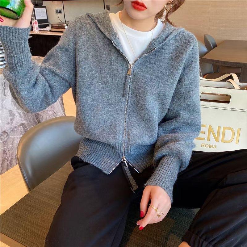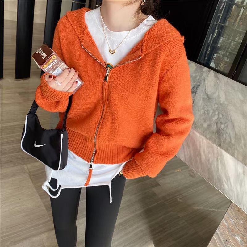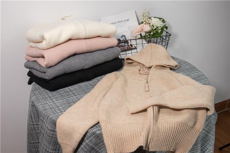 Abrigo Suéter de Cintura Estilo Extranjero para Mujer Holgado Perezoso Suave Top 2023 Otoño Ropa Exterior Cárdigan de Punto con Capucha