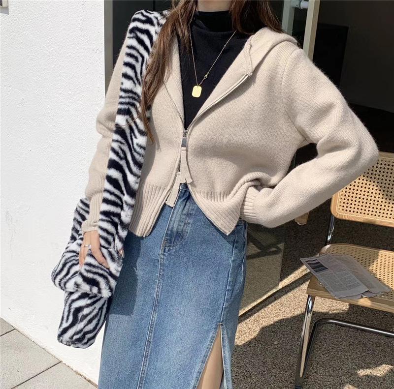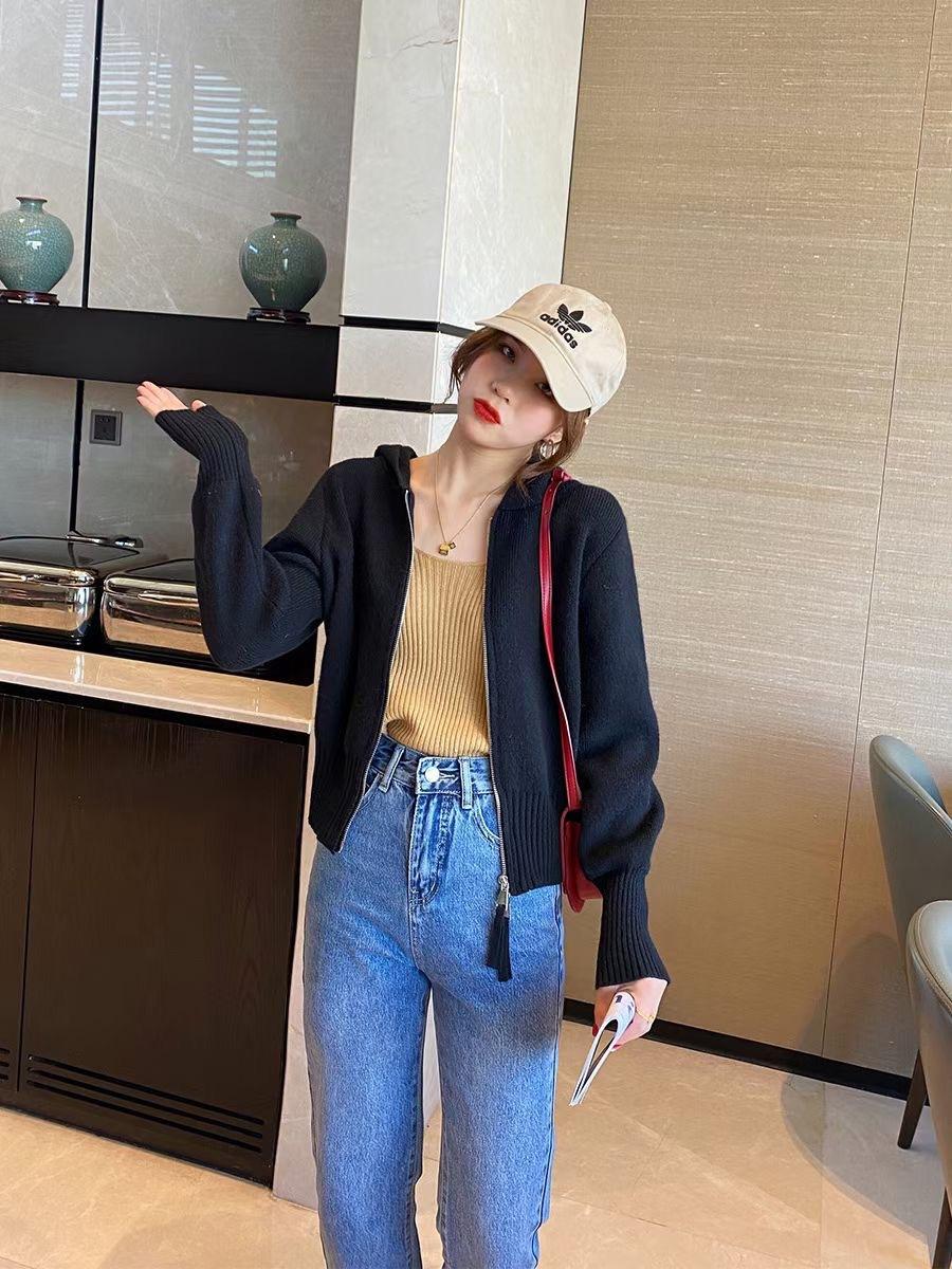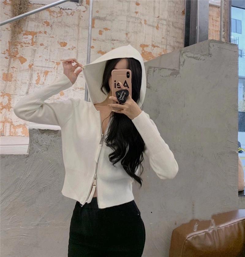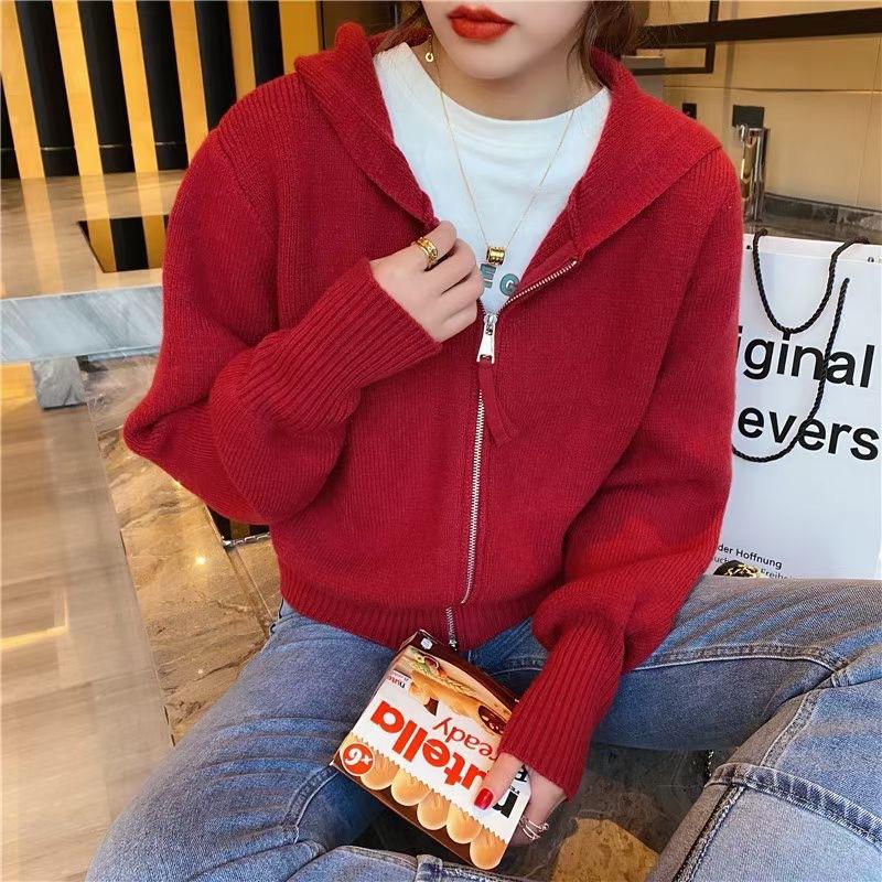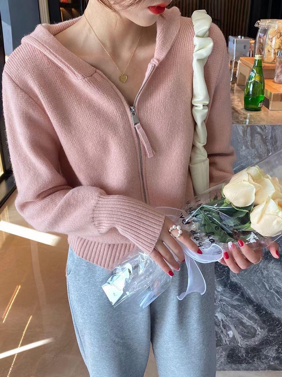 Abrigo Suéter de Cintura Estilo Extranjero para Mujer Holgado Perezoso Suave Top 2023 Otoño Ropa Exterior Cárdigan de Punto con Capucha
