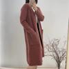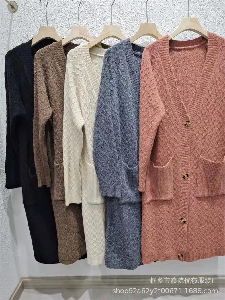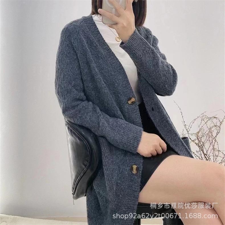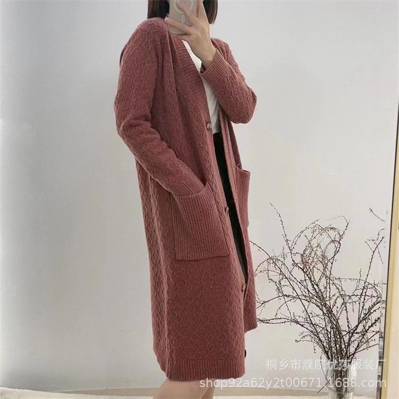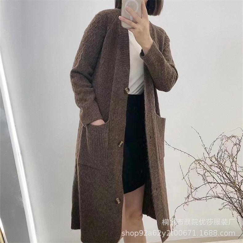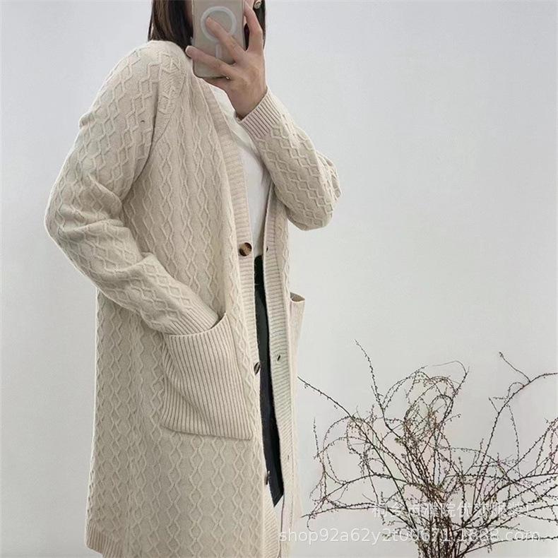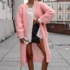 Suéter de punto de longitud media con giro de viento perezoso para mujer, cárdigan, abrigo de otoño e invierno, nuevo top de punto de manga larga con cuello en V para mujer