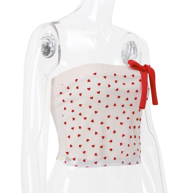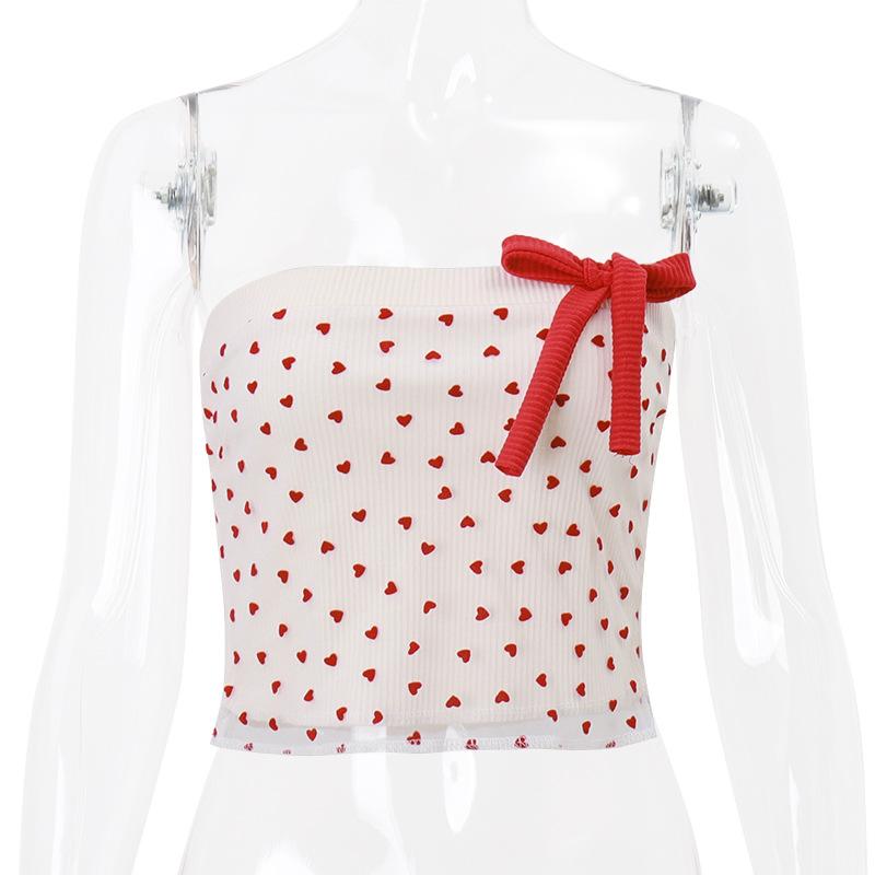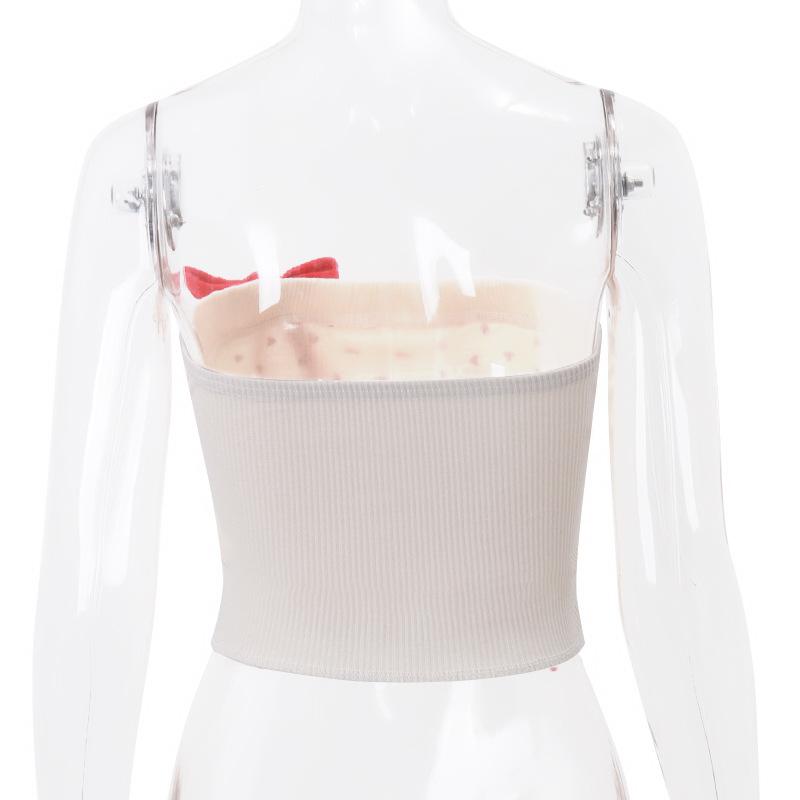 Top corto de tubo con lazo y hombros descubiertos, estilo Spice Girl, estilo europeo y americano, novedad de verano de 2024