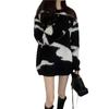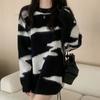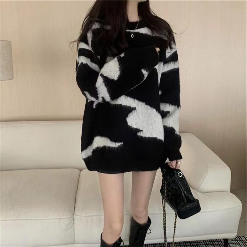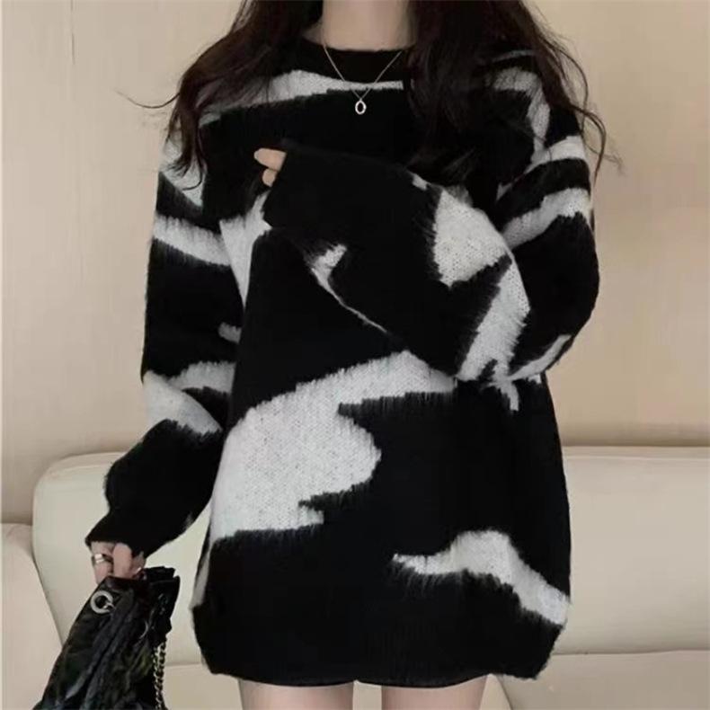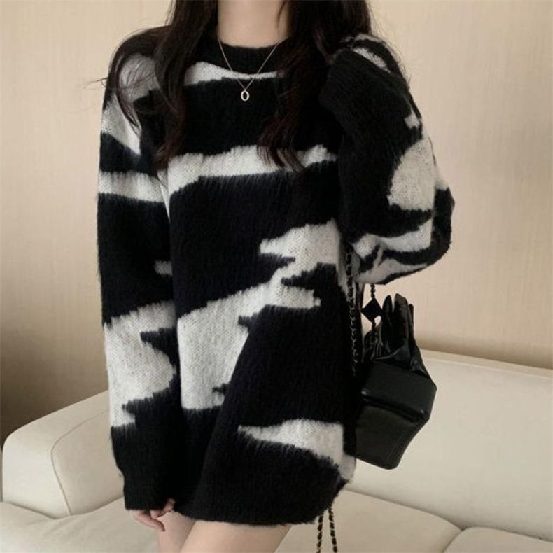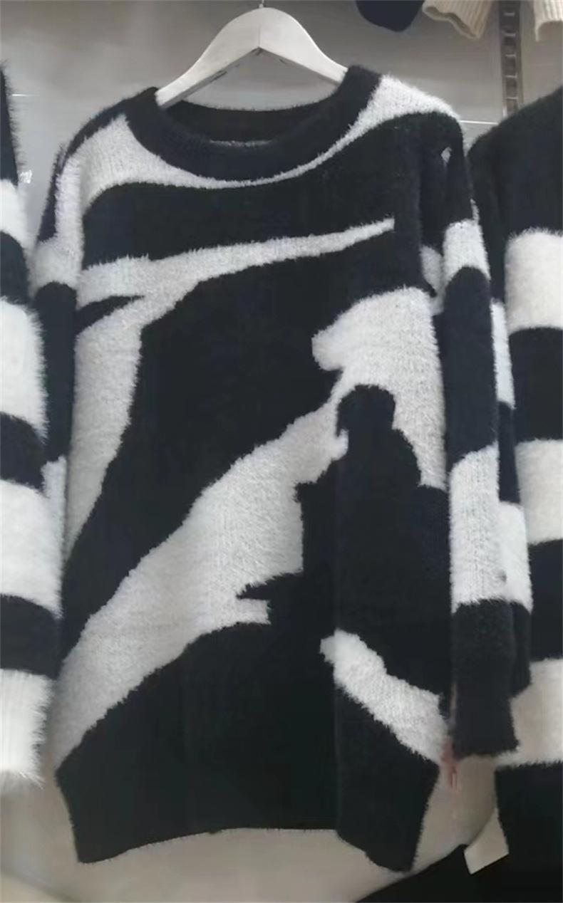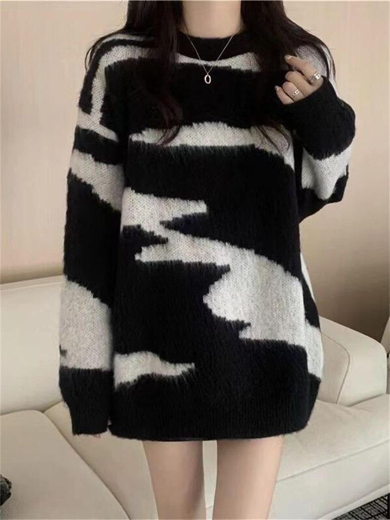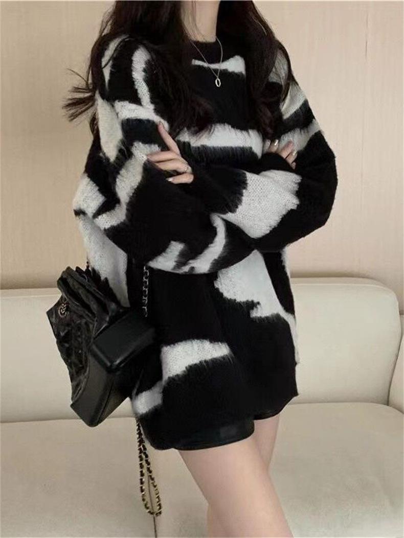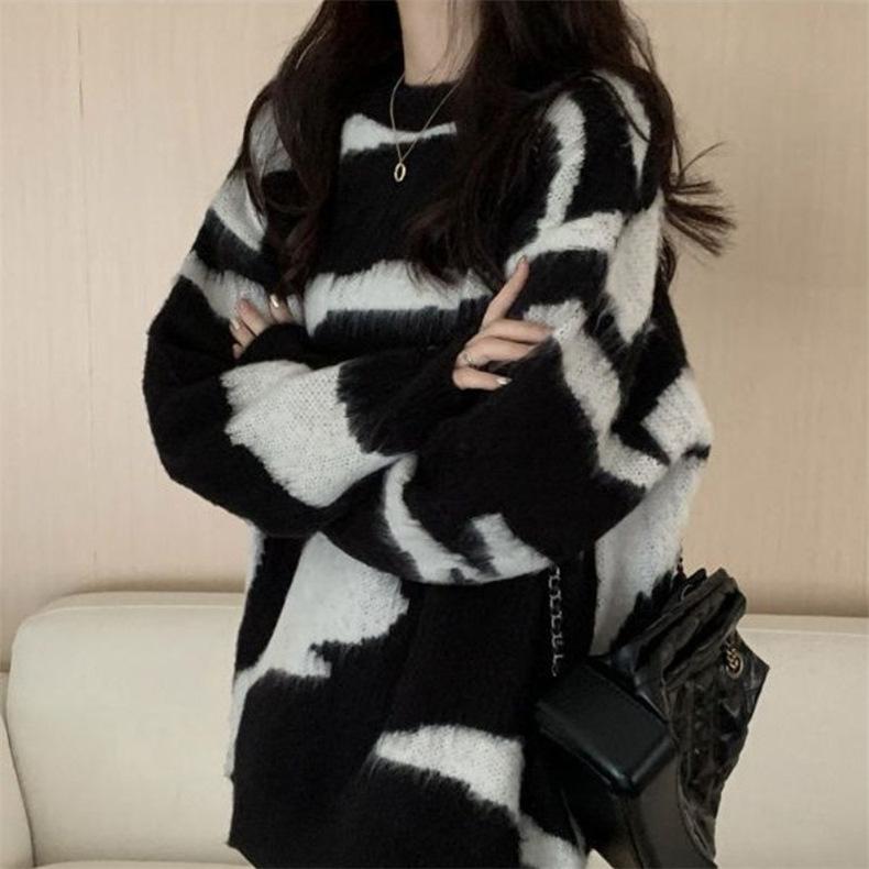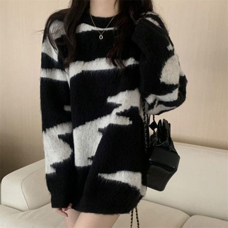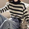 Suéter a rayas de terciopelo de visón sintético para mujer, otoño e invierno 2023, nuevo suéter holgado de estilo coreano con cuello redondo, ropa de mujer