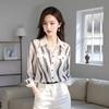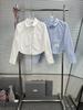 Camisa TB JL para mujer, marca de moda TB, camisa informal con cuello de mariposa en contraste de colores, tela Oxford, ligera y de lujo.