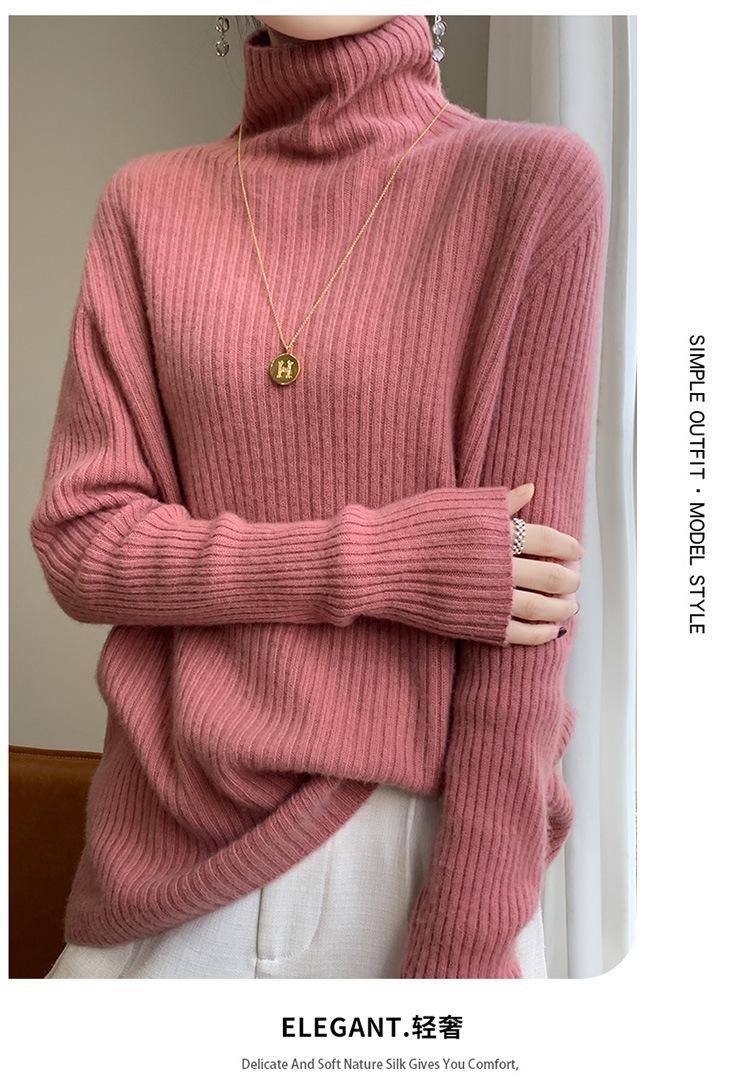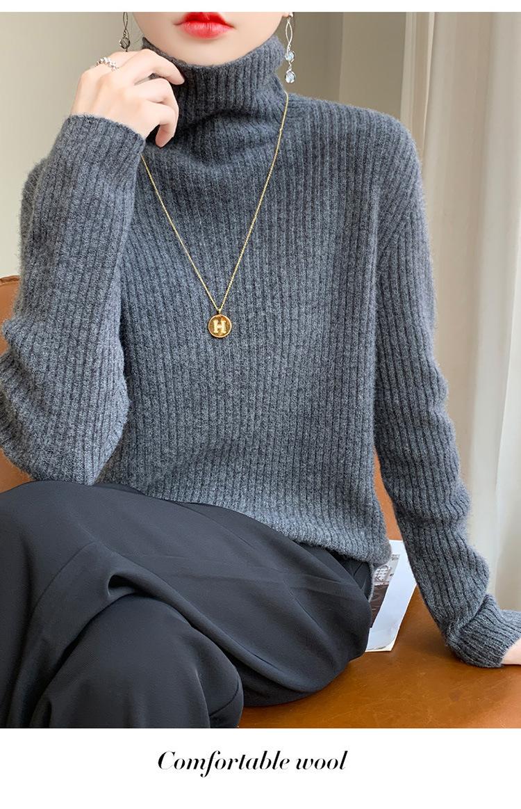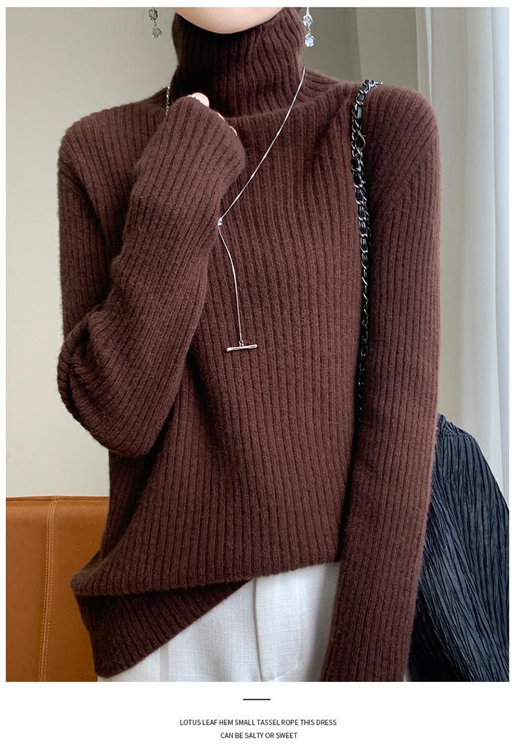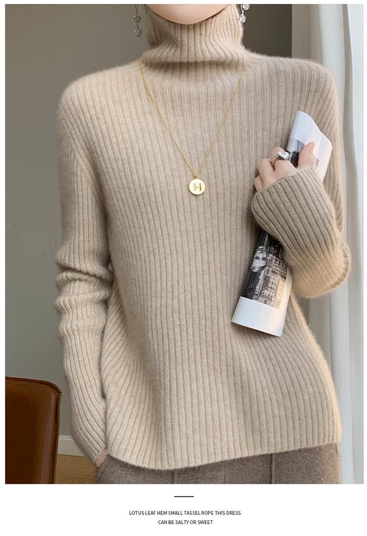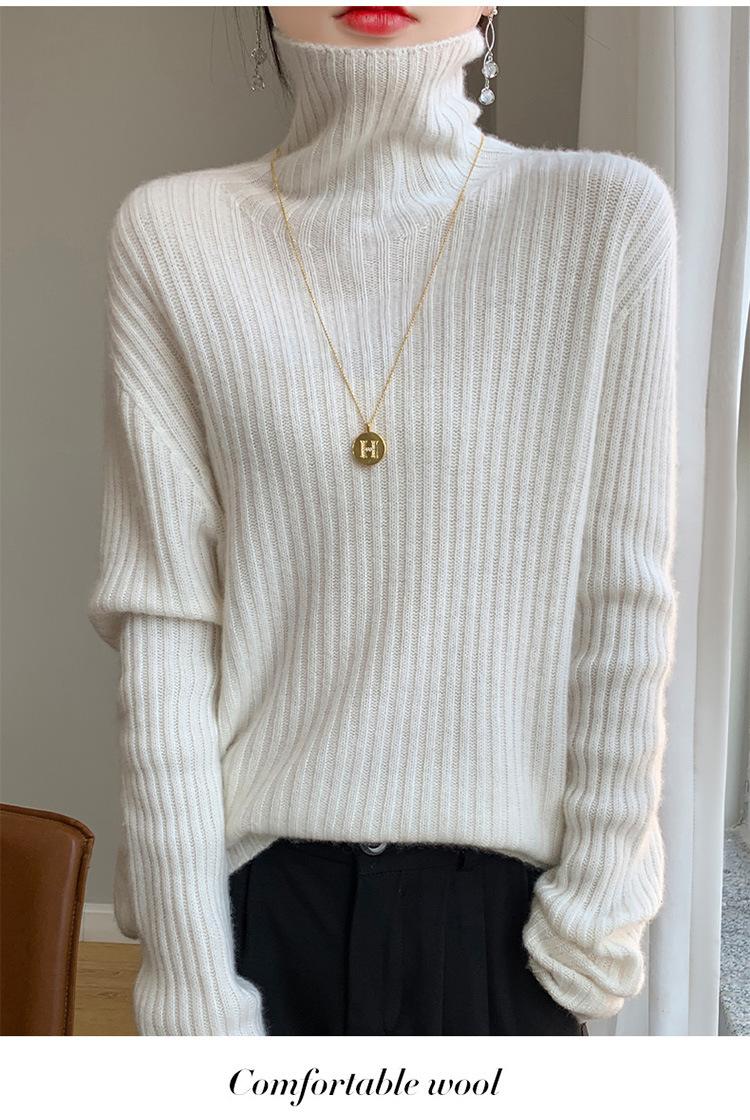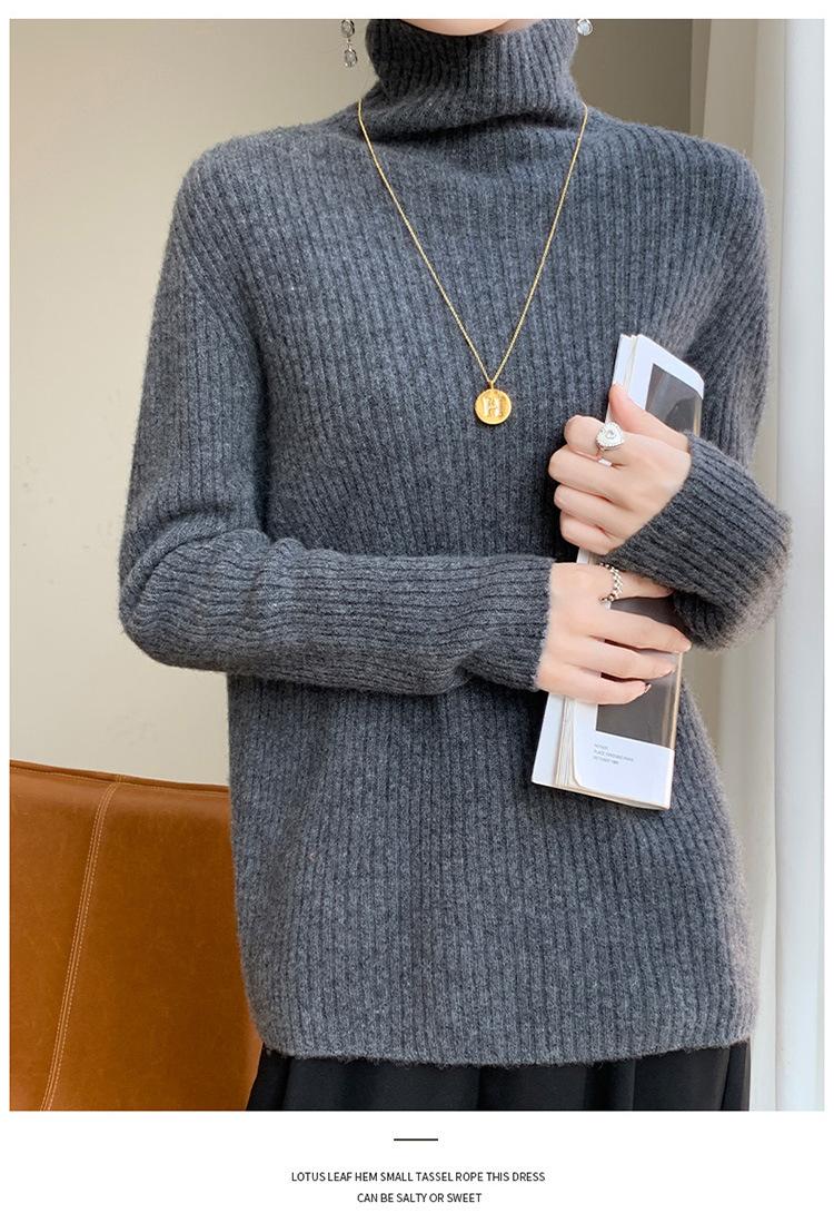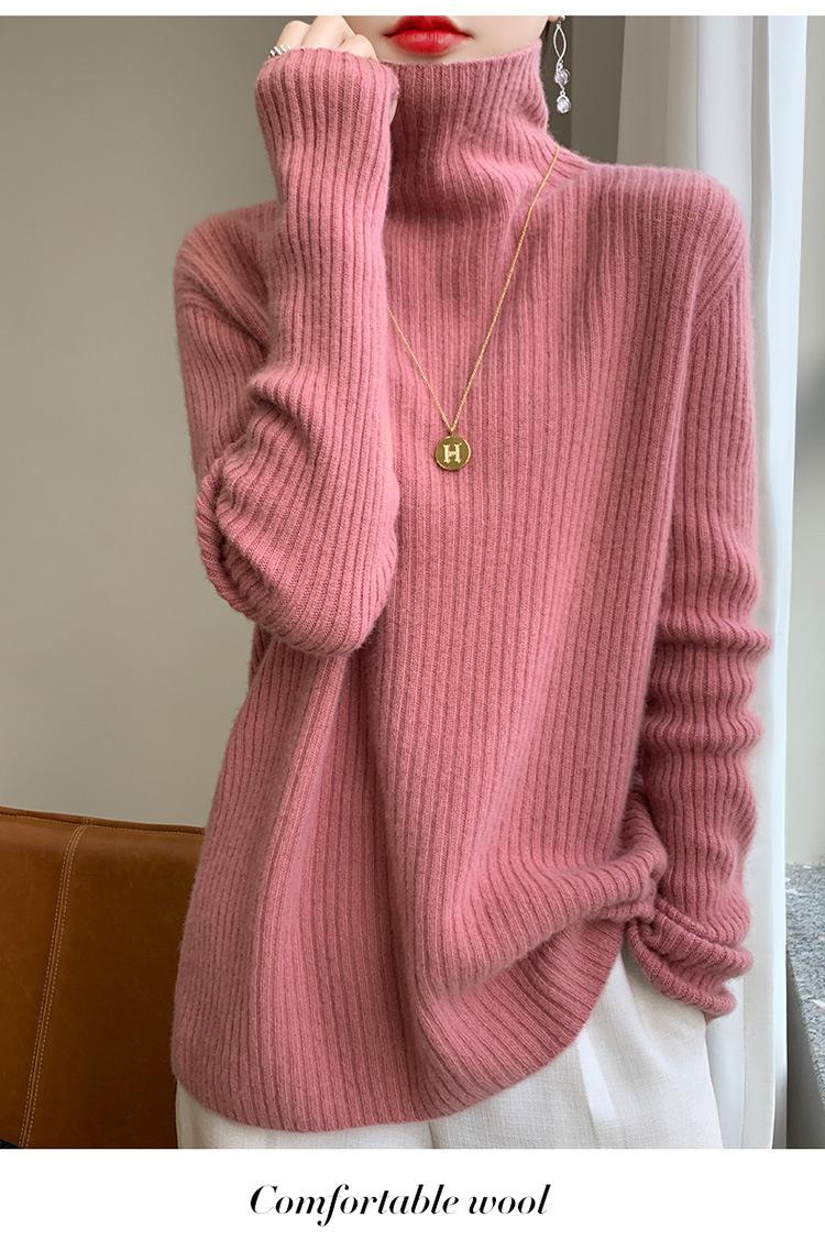 Suéter grueso de lana 100 % pura tejido con cuello alto versátil y suelto para otoño e invierno para mujer