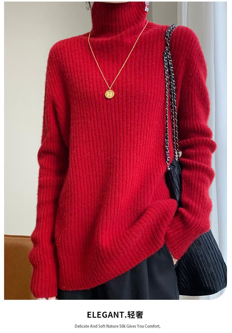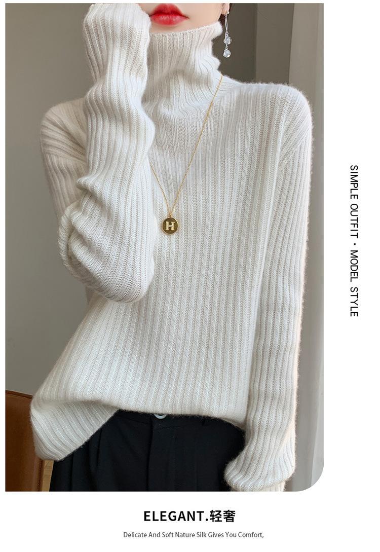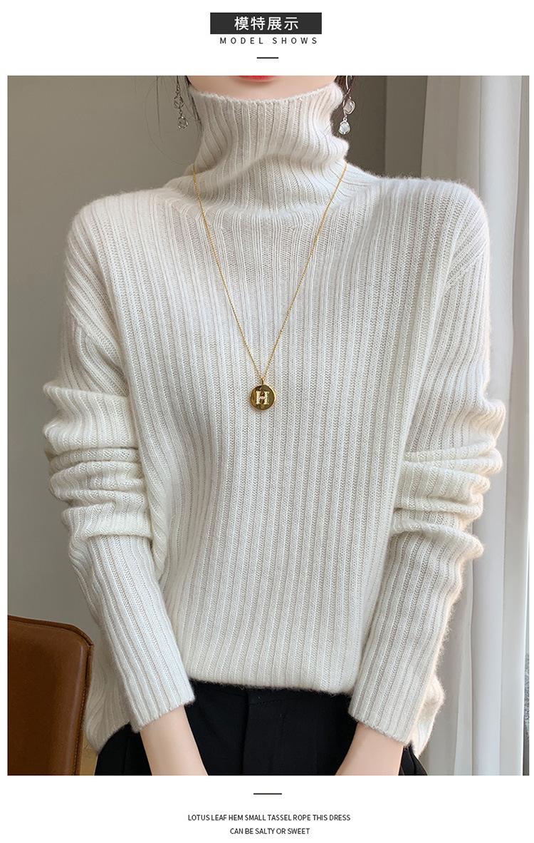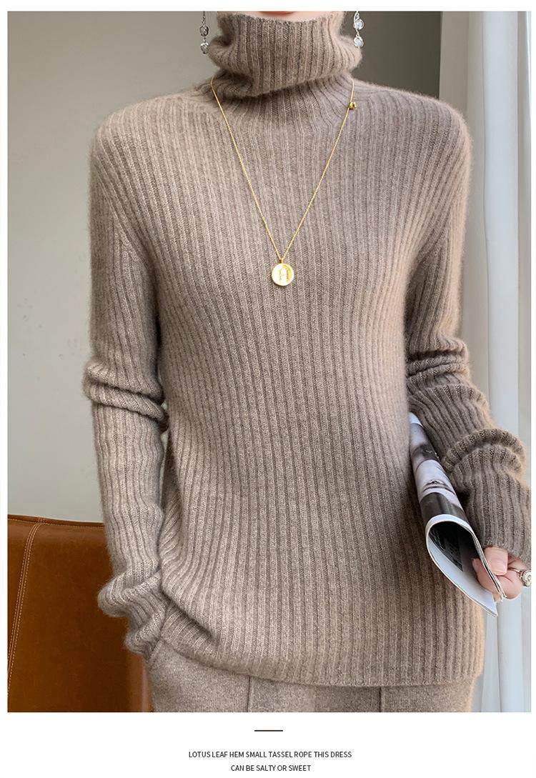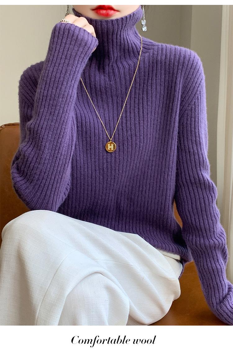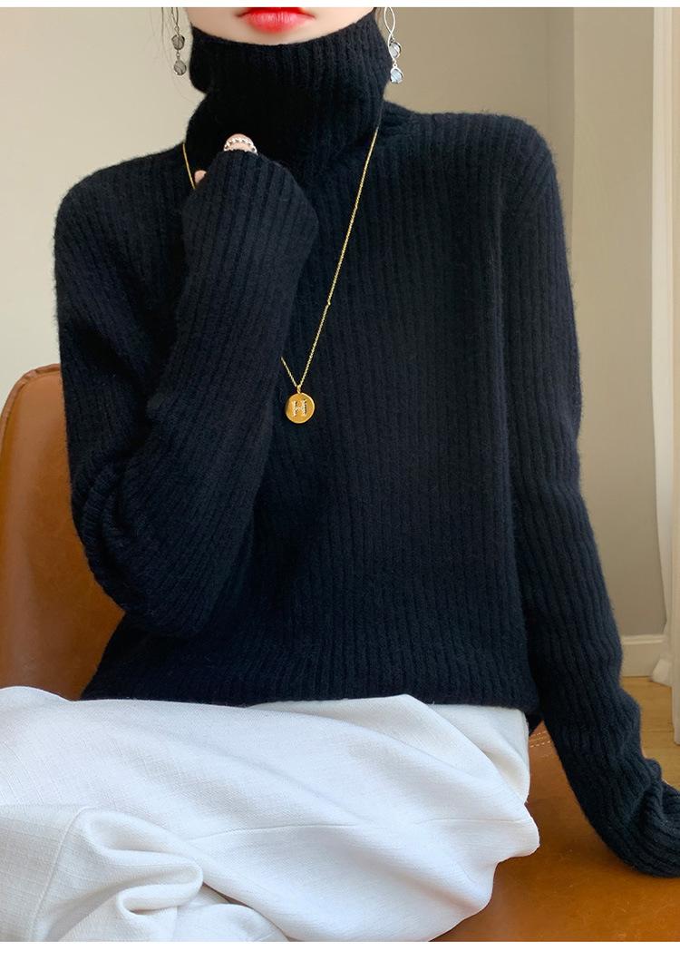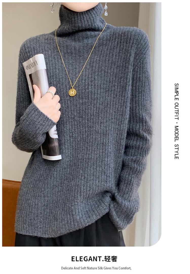 Suéter grueso de lana 100 % pura tejido con cuello alto versátil y suelto para otoño e invierno para mujer