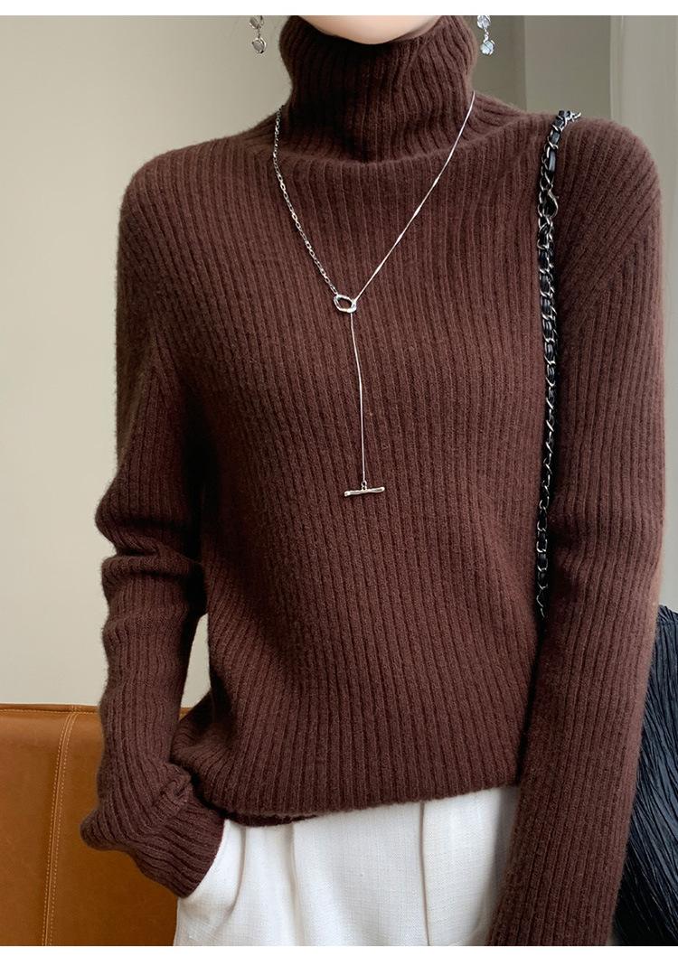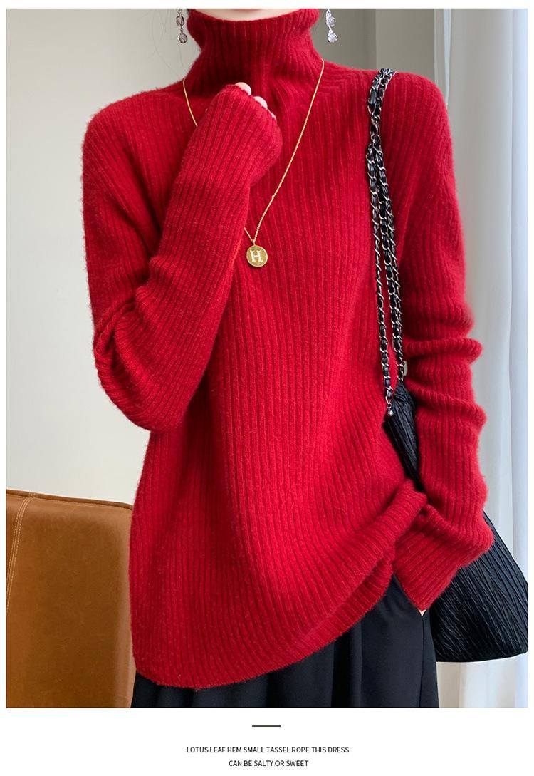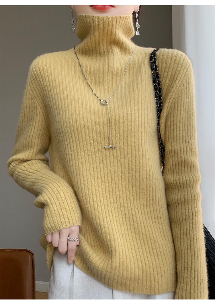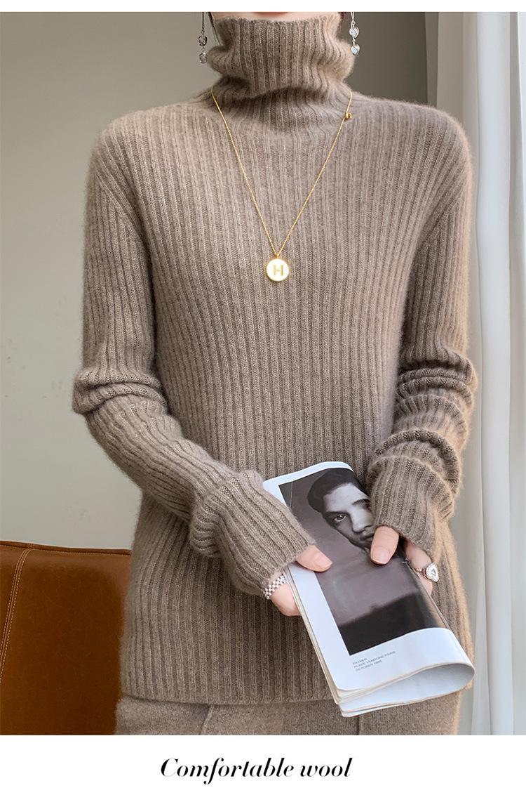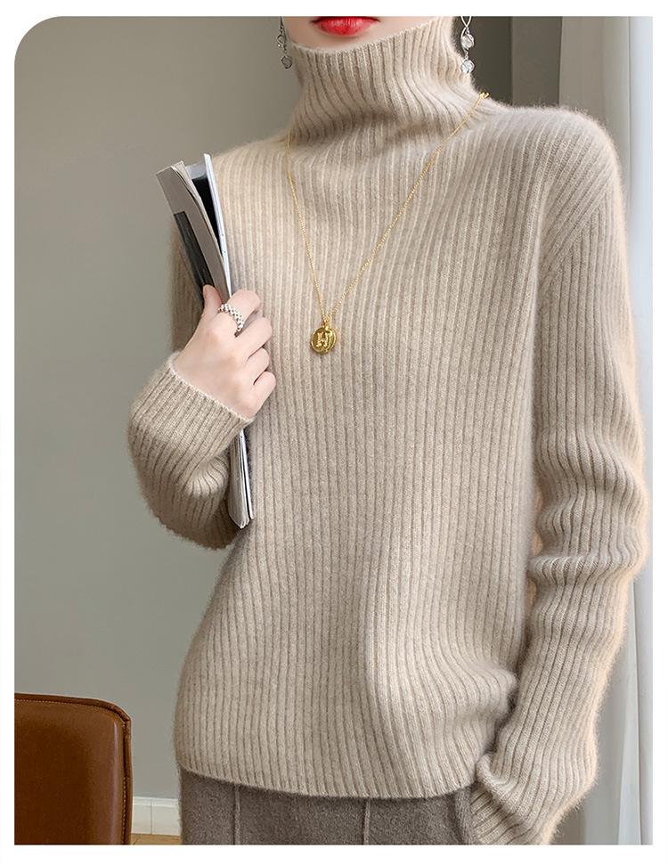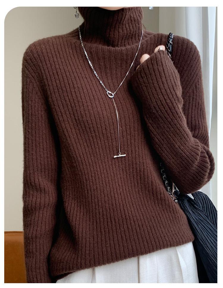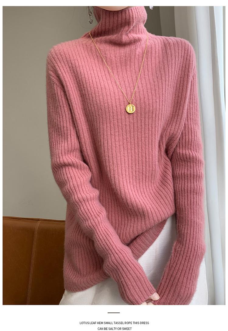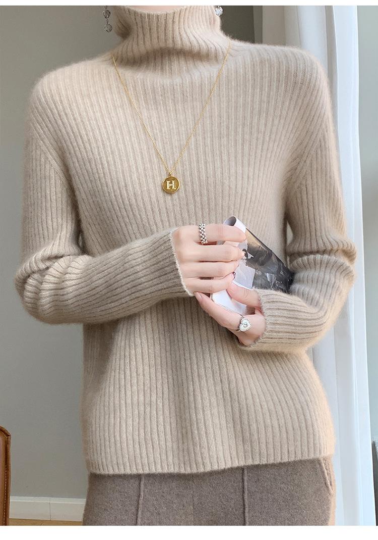 Suéter grueso de lana 100 % pura tejido con cuello alto versátil y suelto para otoño e invierno para mujer