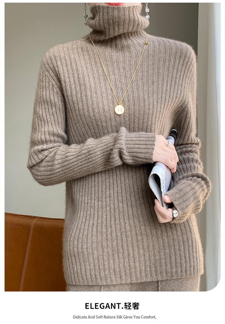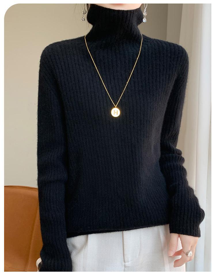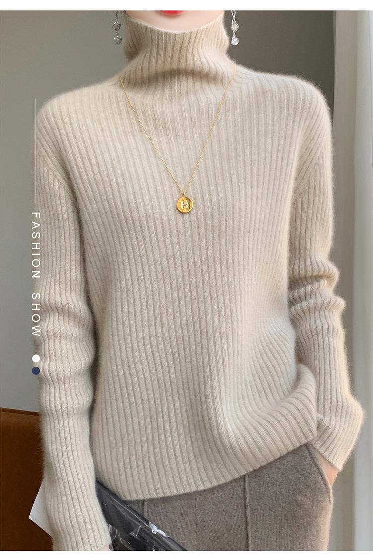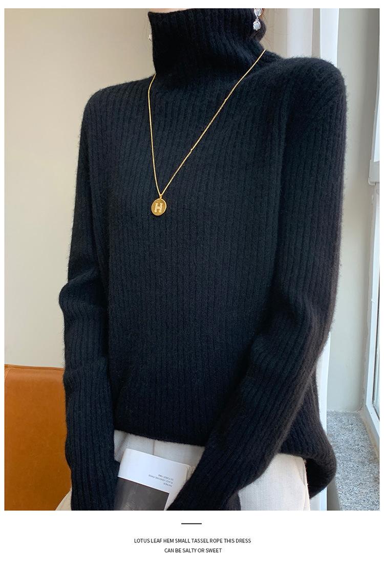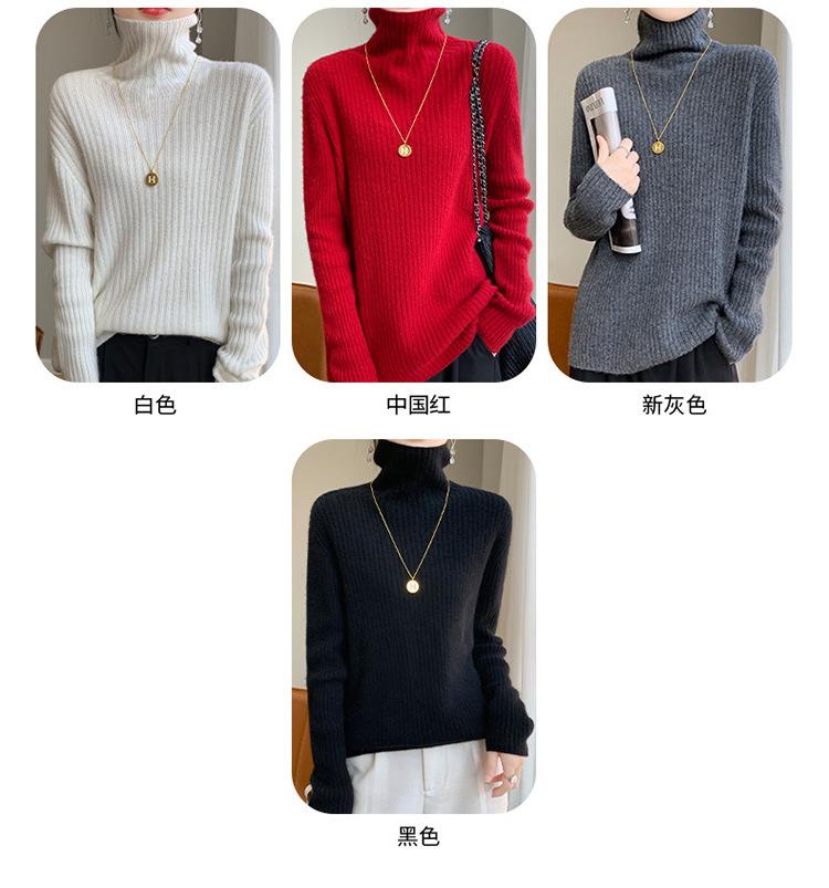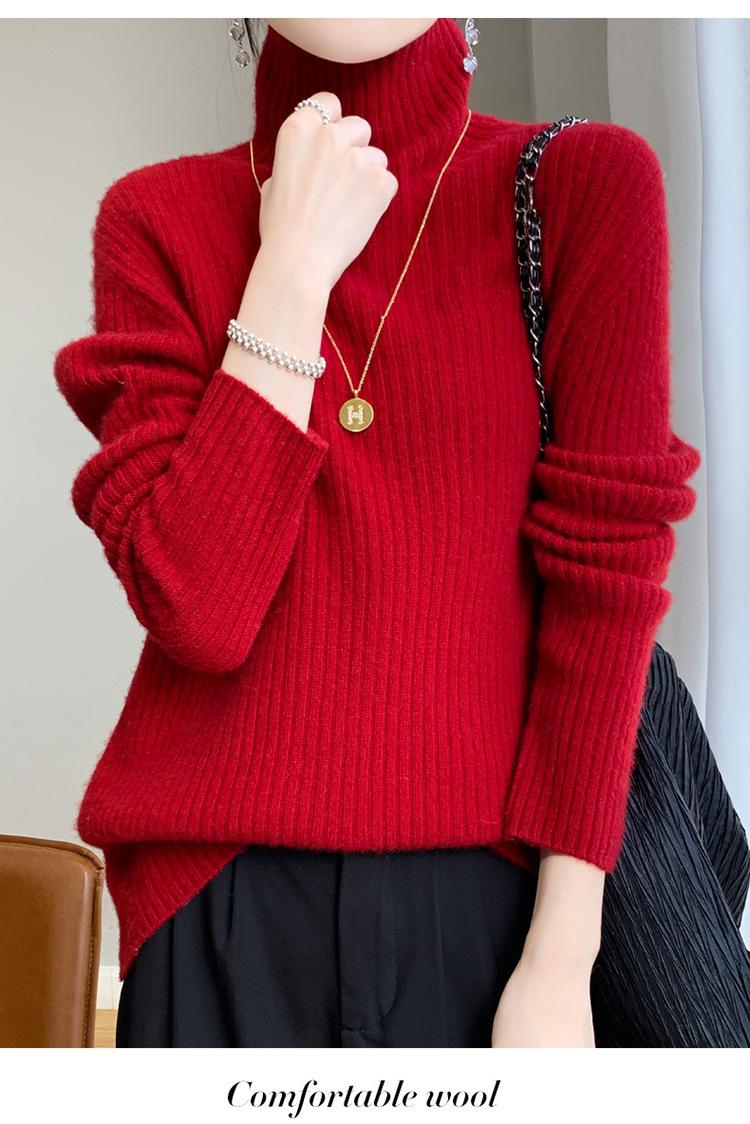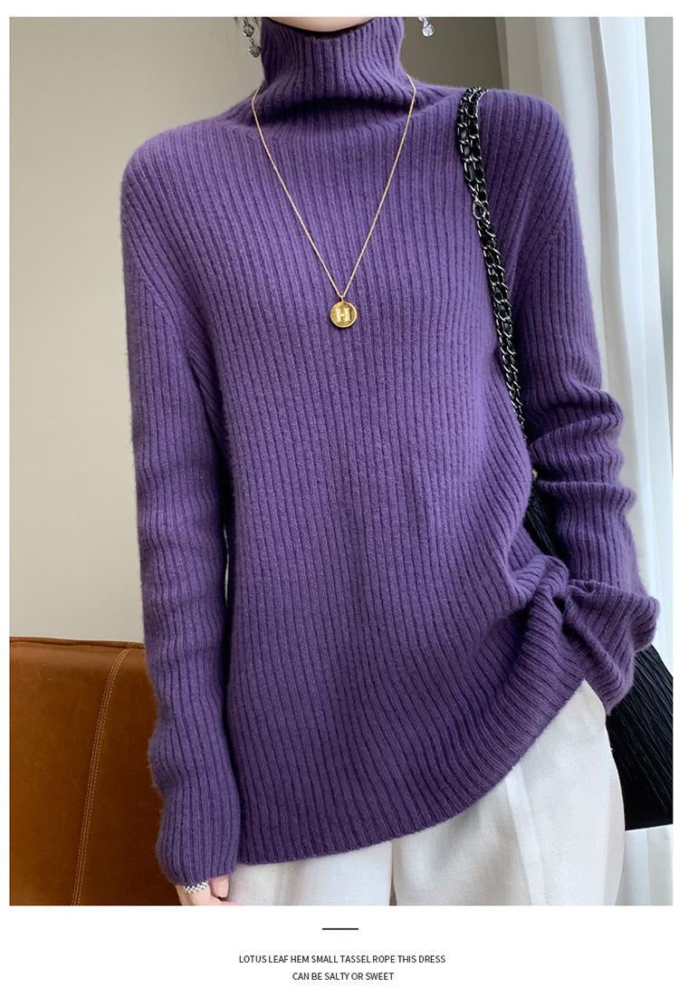 Suéter grueso de lana 100 % pura tejido con cuello alto versátil y suelto para otoño e invierno para mujer