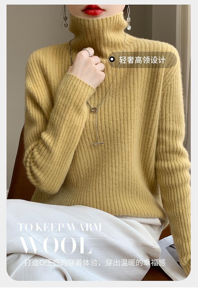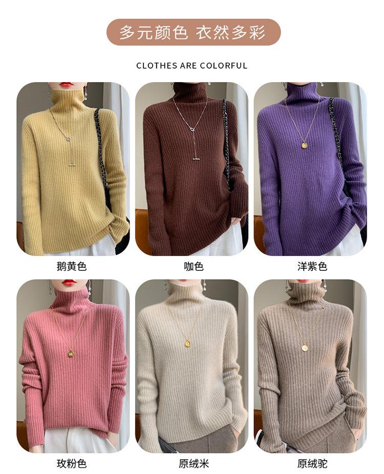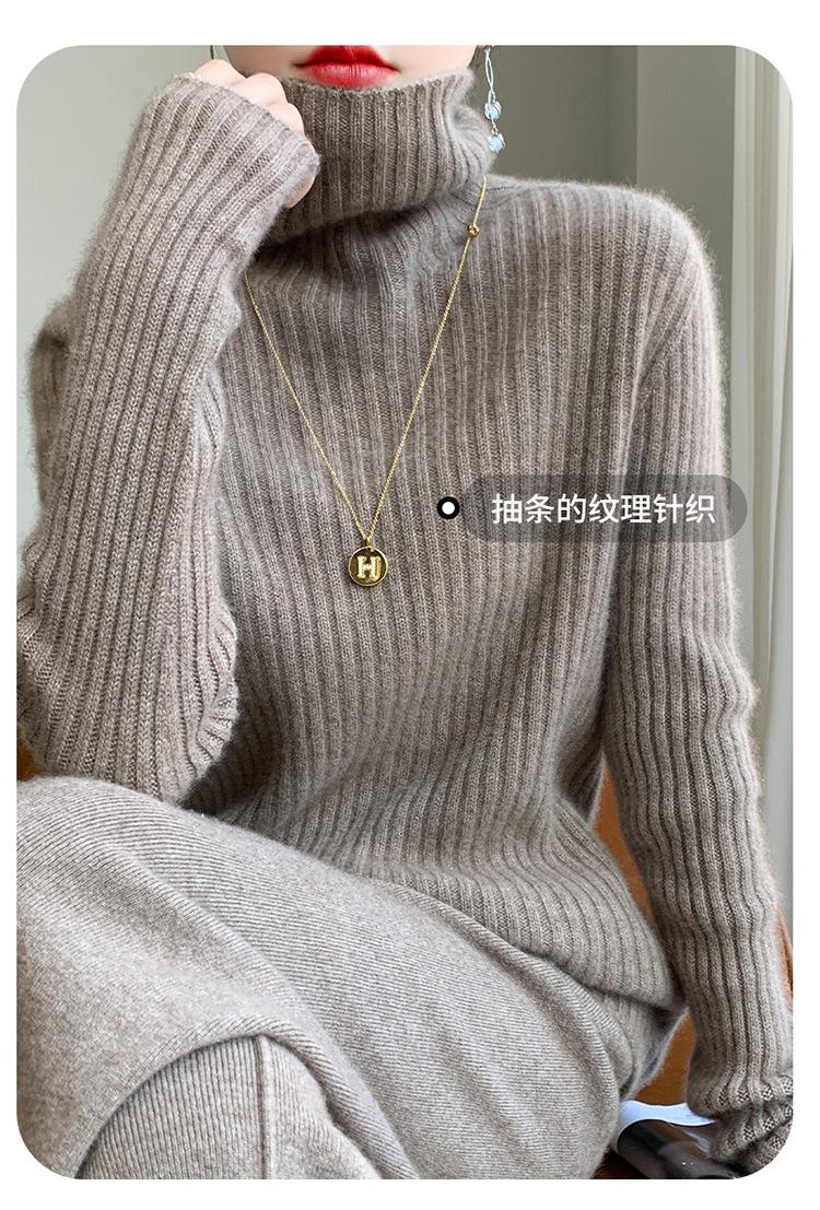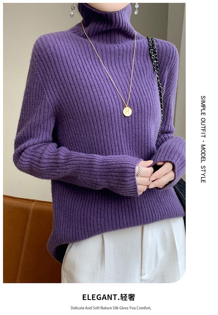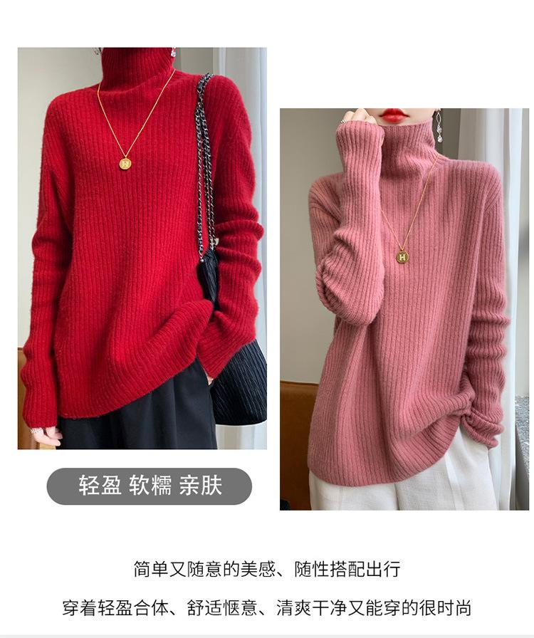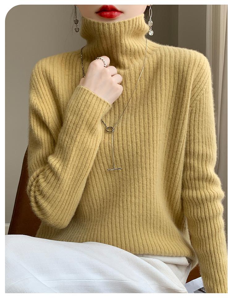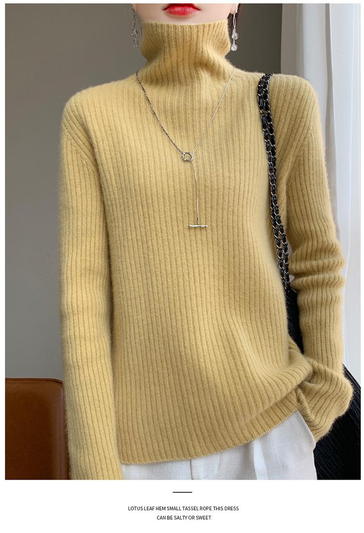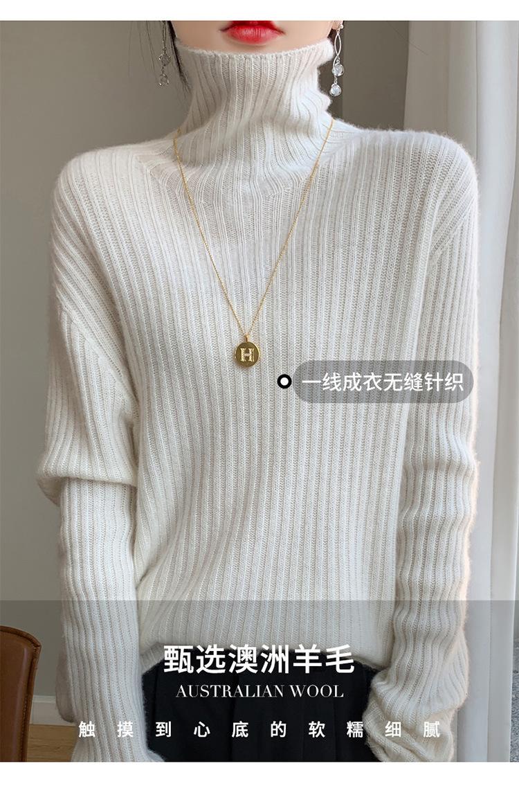 Suéter grueso de lana 100 % pura tejido con cuello alto versátil y suelto para otoño e invierno para mujer