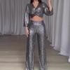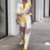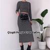 Otoño 2023 nuevo Europeo y Americano Amazon transfronterizo Estilo Europeo y Americano moderno traje de vestido ombliguero estampado a rayas moda femenina