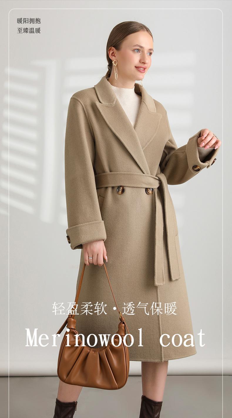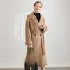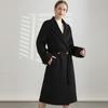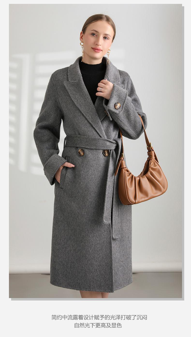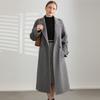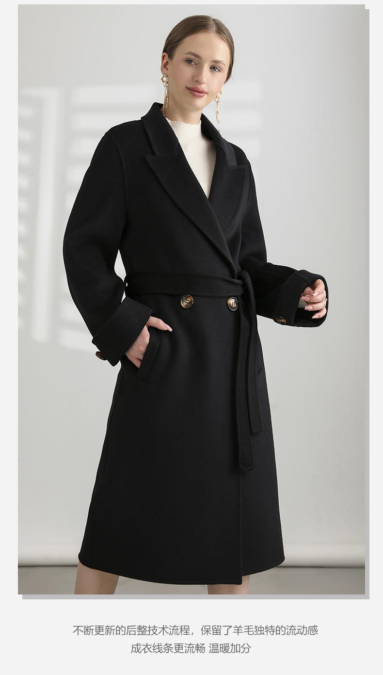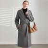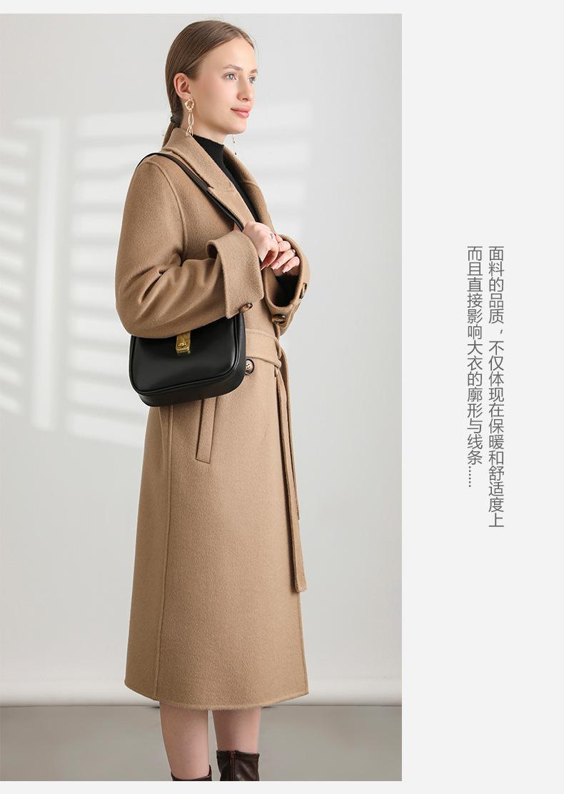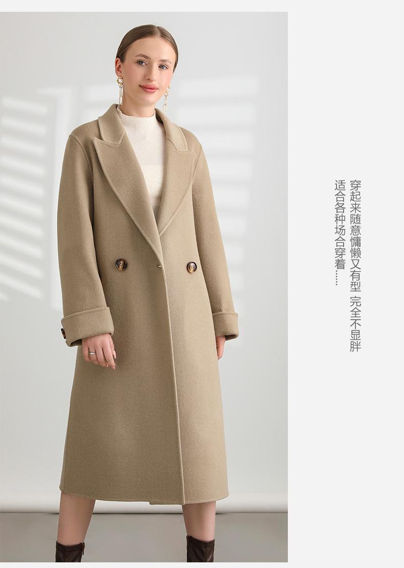 Abrigo de Lana de Doble Vista para Mujer con Cuello de Traje 100% Lana Pura Holgado con Cordones 24 Largo Estilo Commuter Abrigo por Encima de la Rodilla