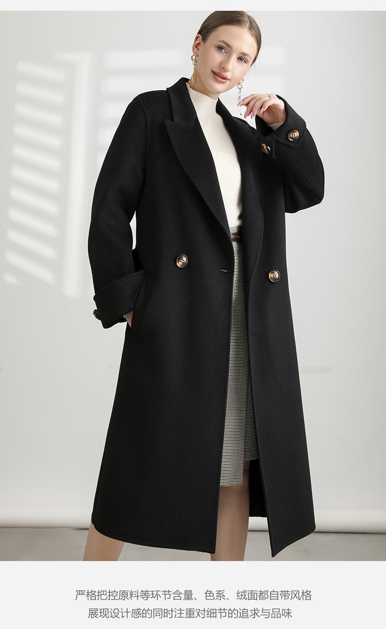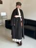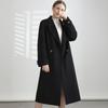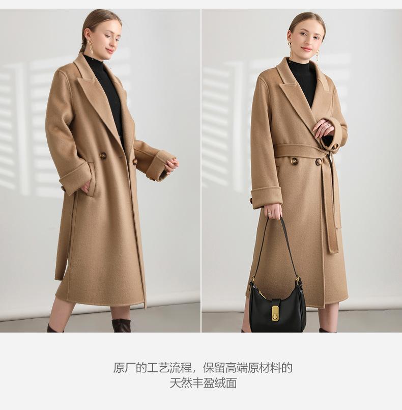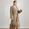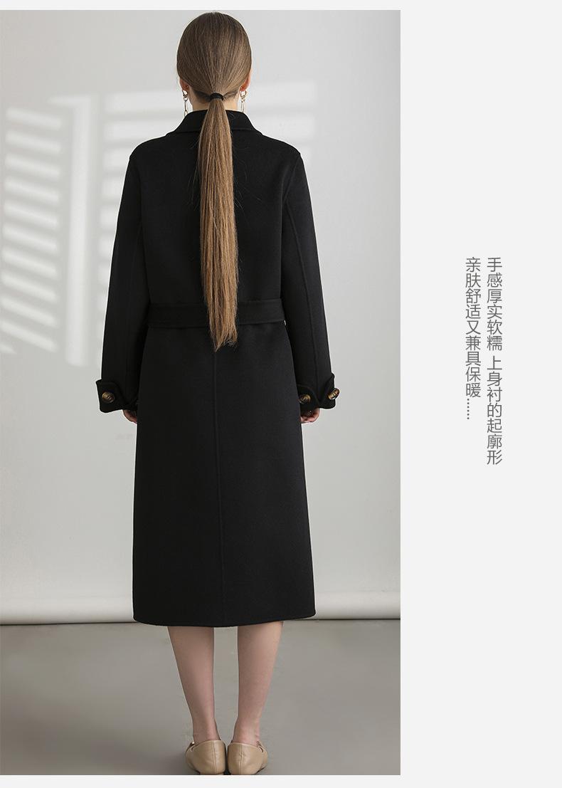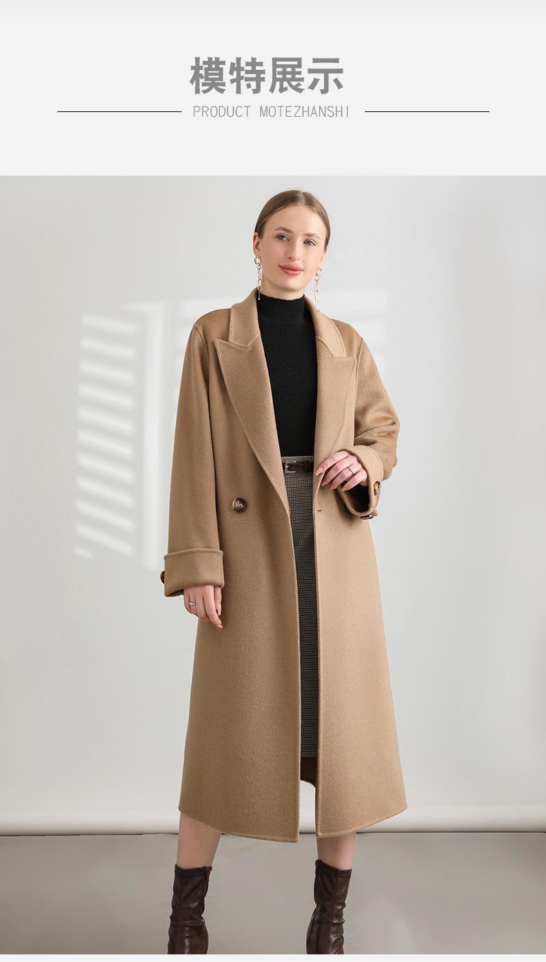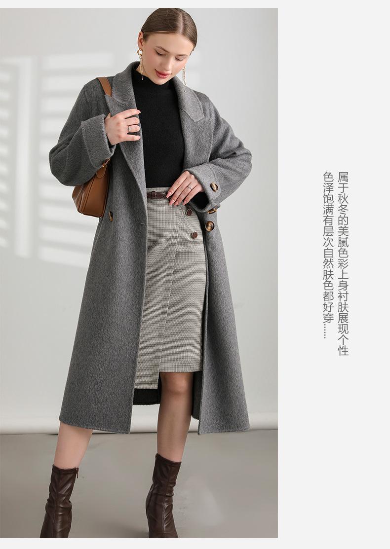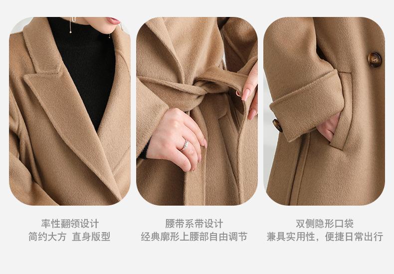 Abrigo de Lana de Doble Vista para Mujer con Cuello de Traje 100% Lana Pura Holgado con Cordones 24 Largo Estilo Commuter Abrigo por Encima de la Rodilla