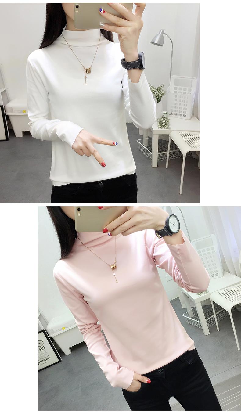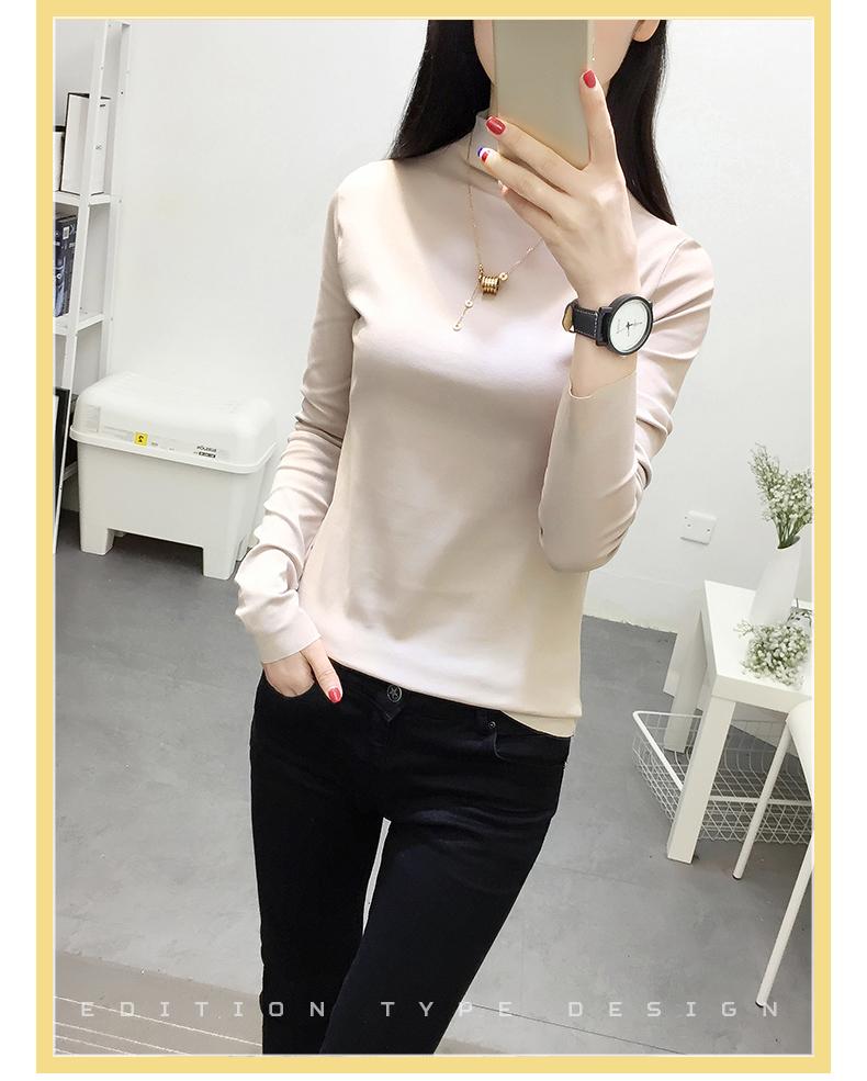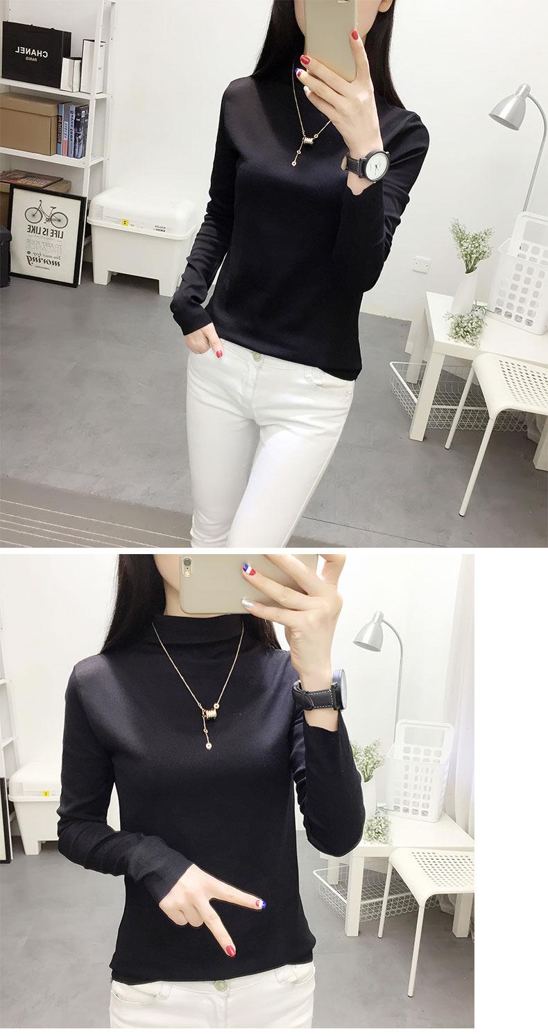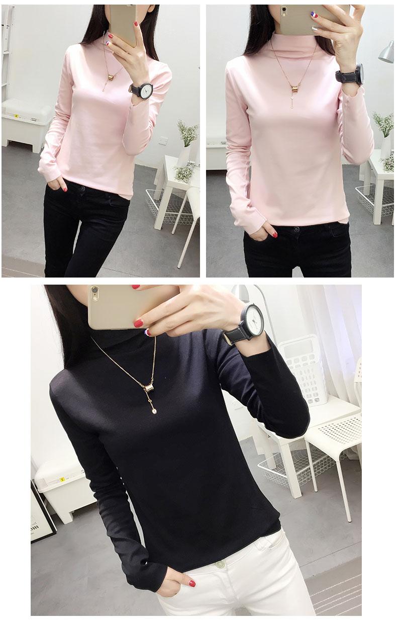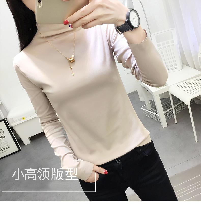 Venta al por mayor 2023 Principios de Primavera Nueva Camiseta para Mujer Estilo Coreano Estudiante Top Color Puro Cuello Alto Manga Larga Slim Ropa de Mujer Trbottomy