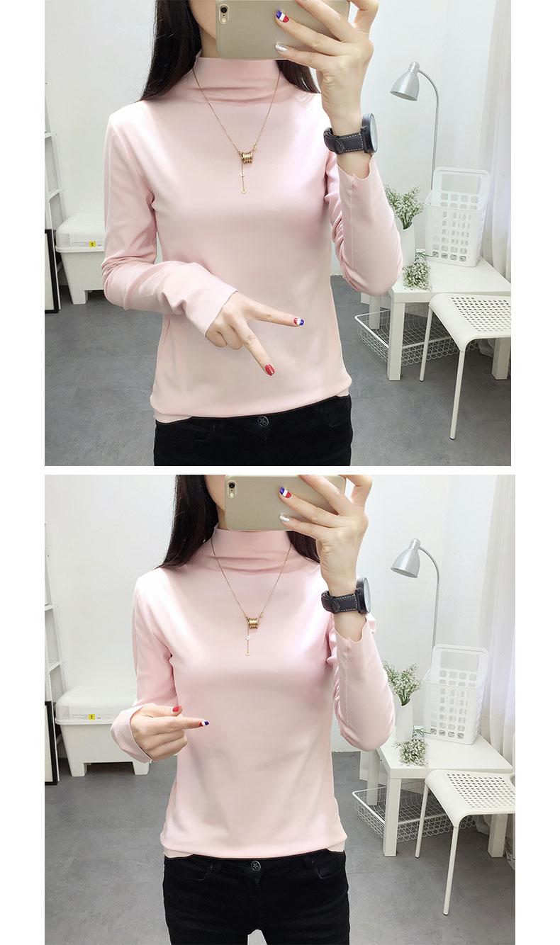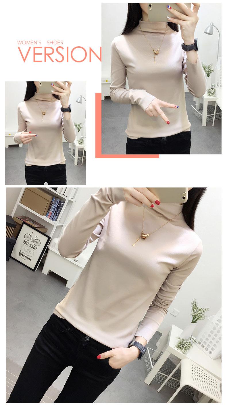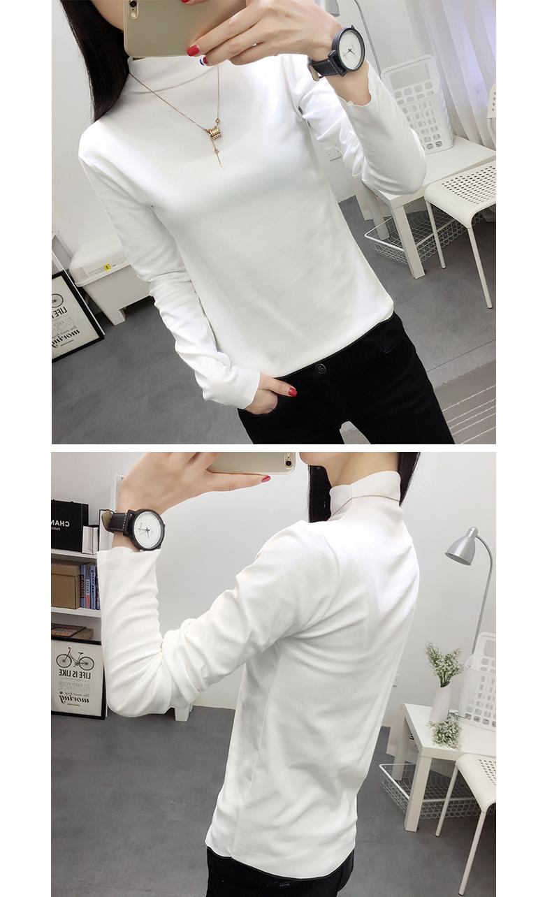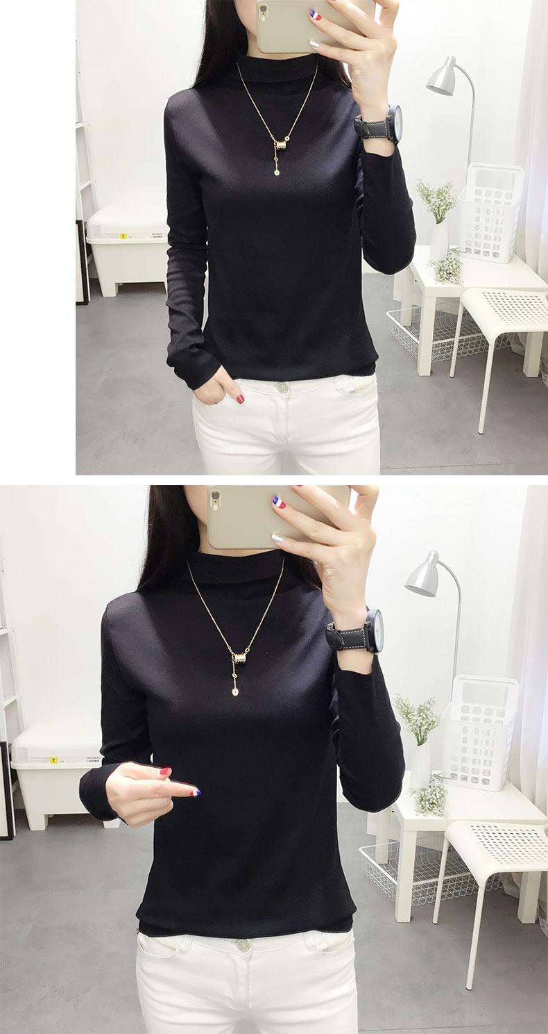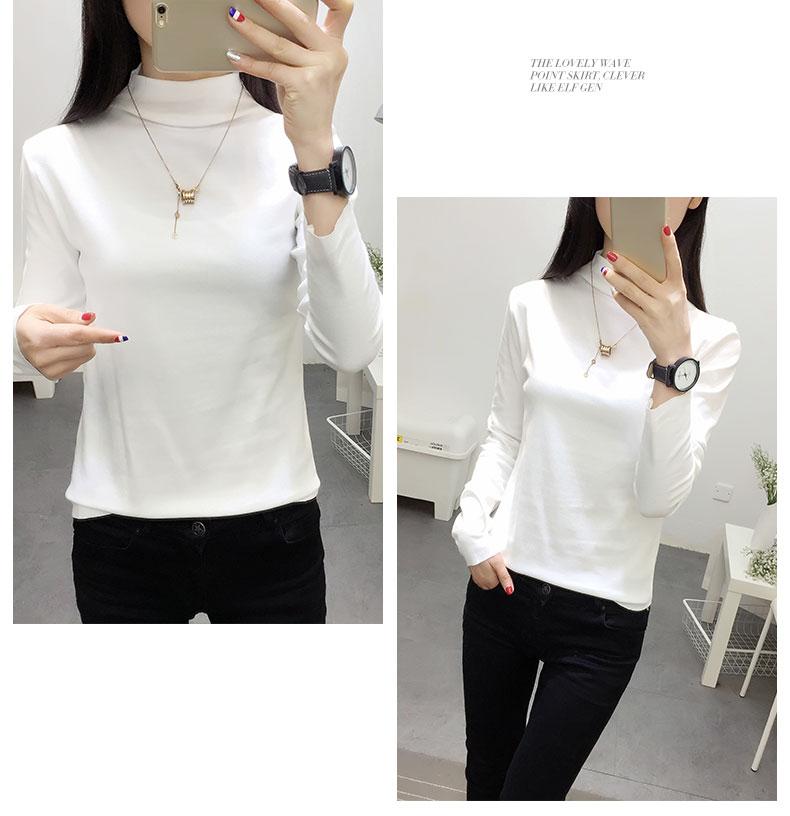 Venta al por mayor 2023 Principios de Primavera Nueva Camiseta para Mujer Estilo Coreano Estudiante Top Color Puro Cuello Alto Manga Larga Slim Ropa de Mujer Trbottomy