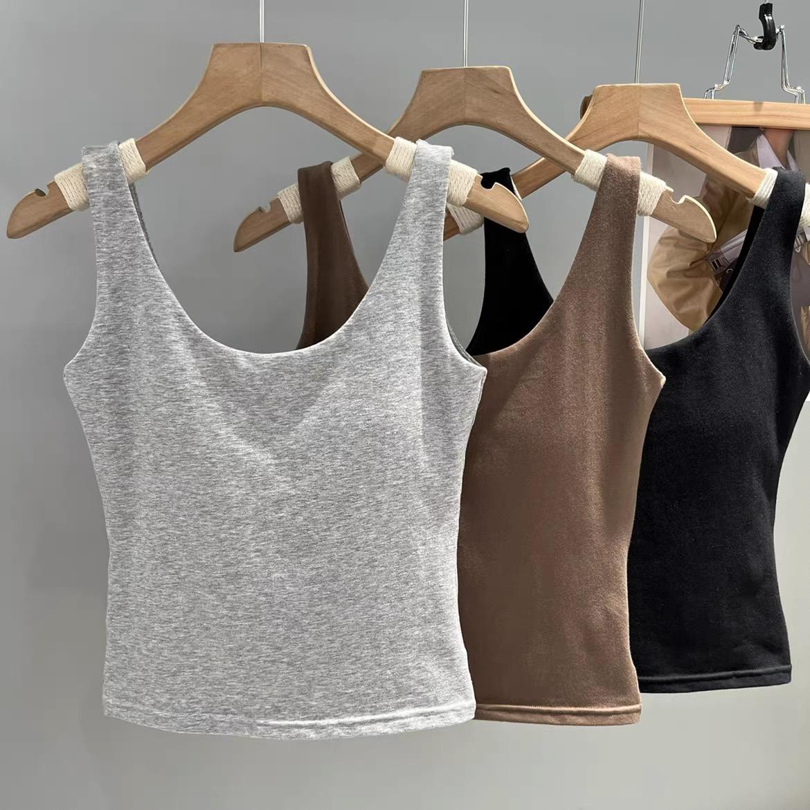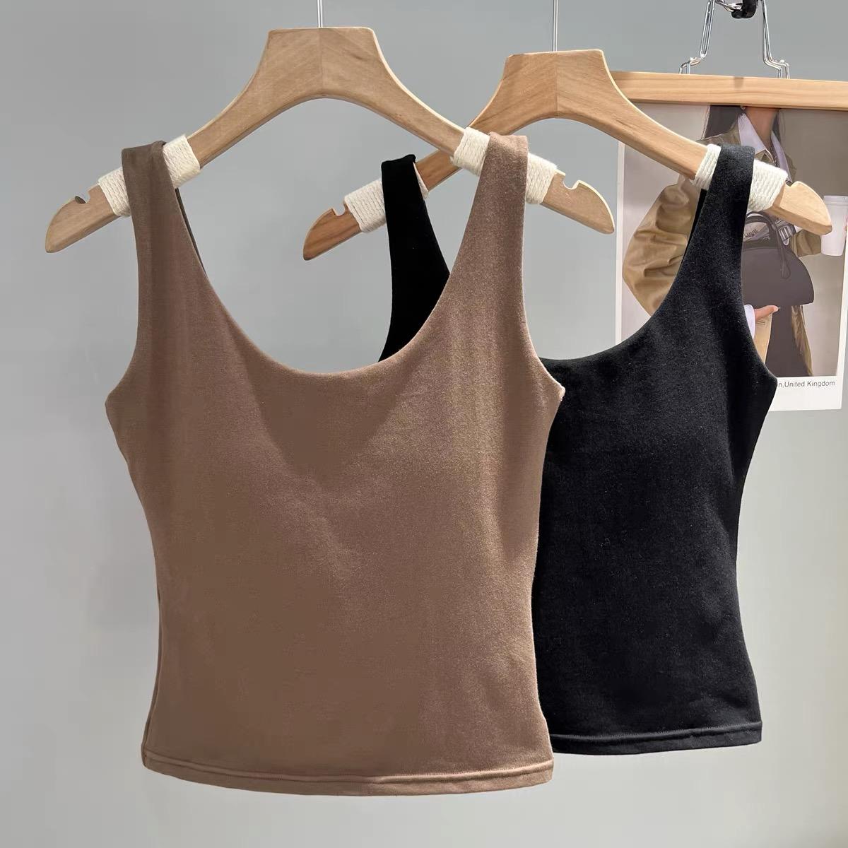 Camisola blanca sencilla para mujer, ropa interior de otoño e invierno, ropa interior exterior, nuevo chaleco sin mangas ajustado con cuello en U