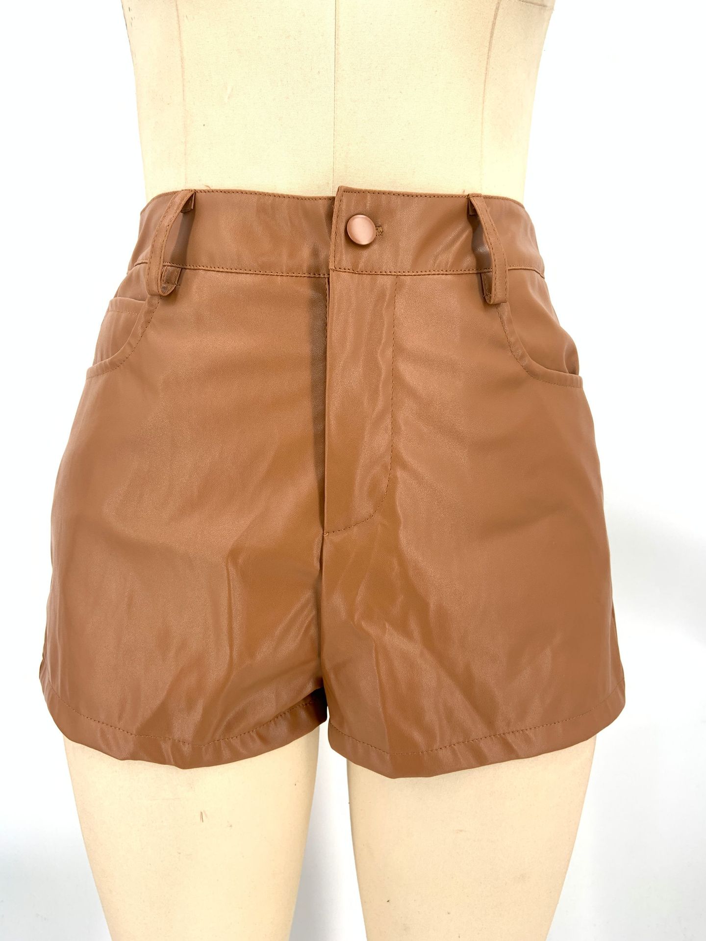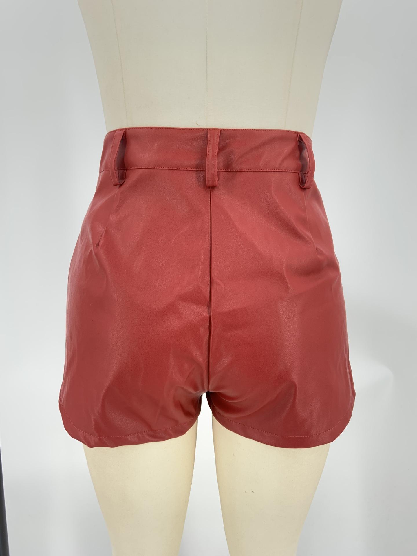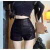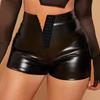 Pantalones cortos de cuero PU europeos y americanos para mujer, moda casual, sexy, cintura alta, color sólido, cadera, club nocturno, pantalones cortos de cuero