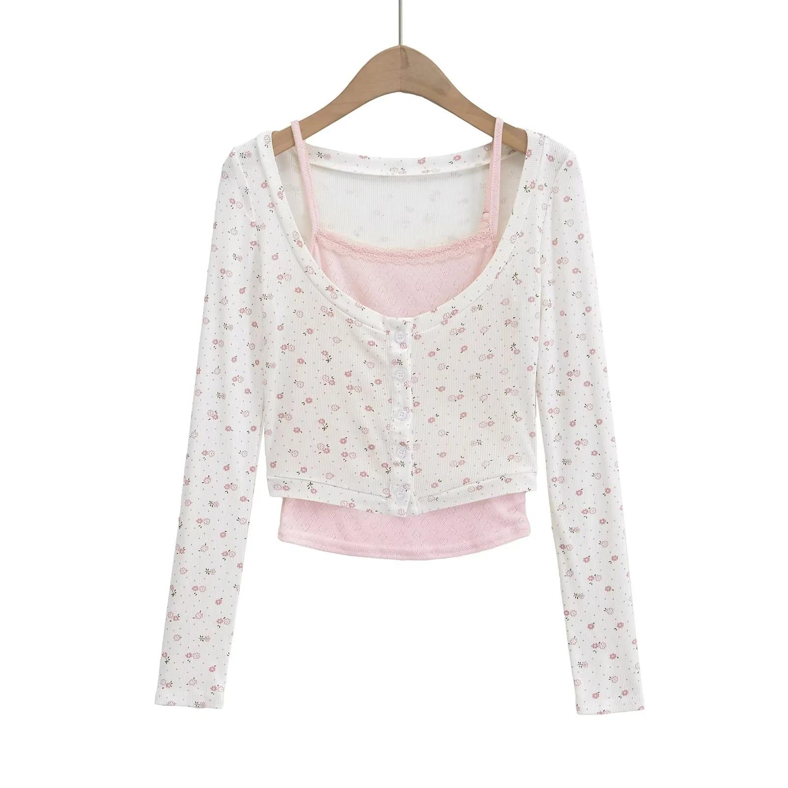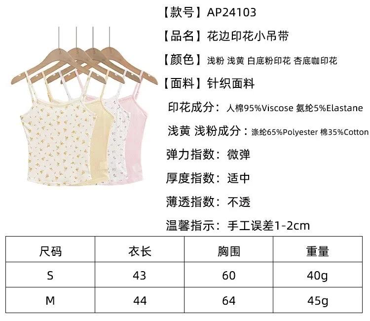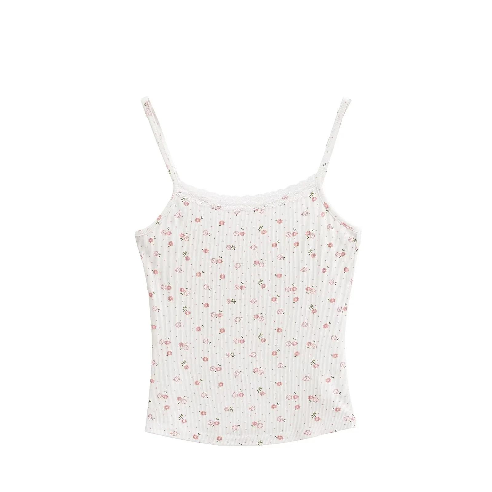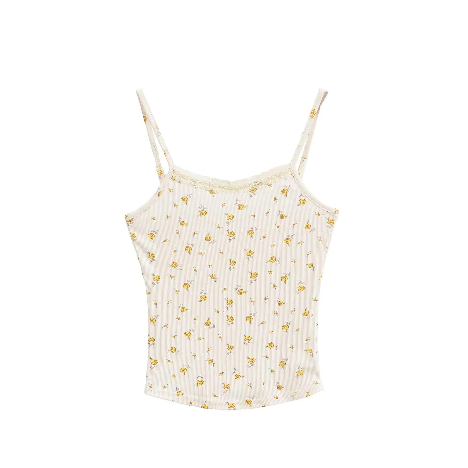 Camisola pequeña con estampado floral Sweet Spice Girl para mujer, estilo Pure Desire, corte plano, entallada, corta, sin mangas, interior