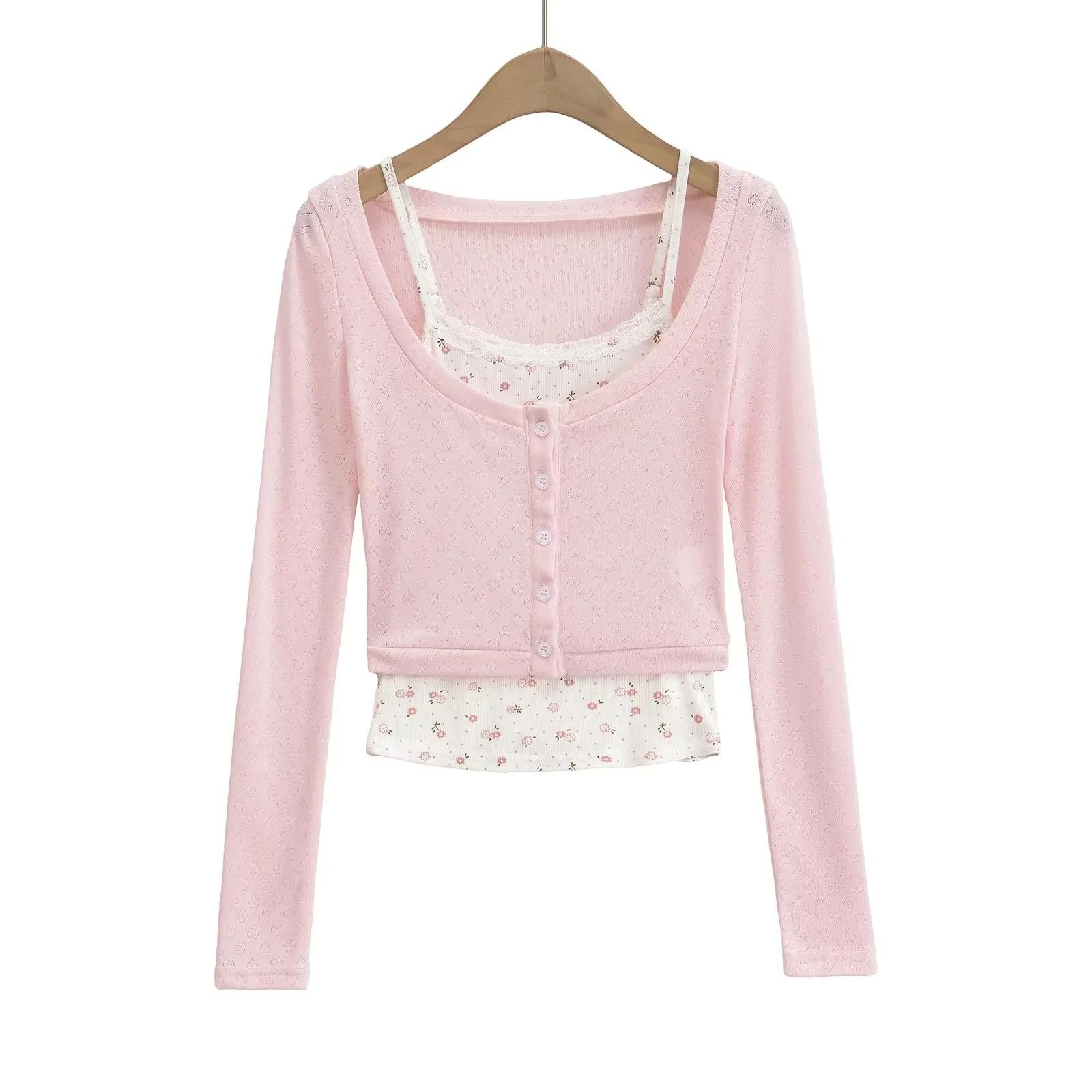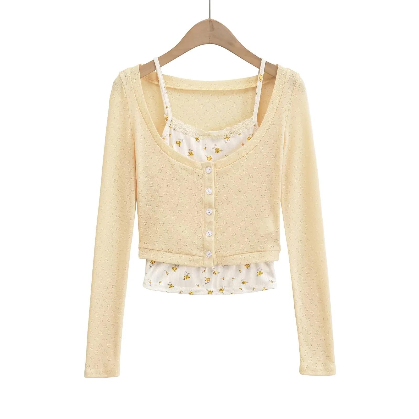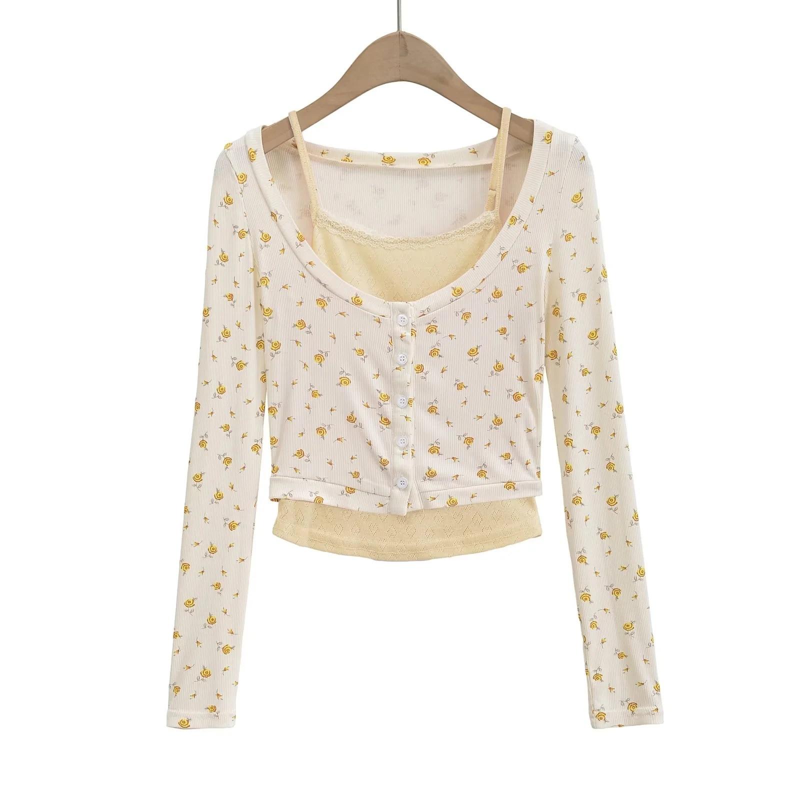 Camisola pequeña con estampado floral Sweet Spice Girl para mujer, estilo Pure Desire, corte plano, entallada, corta, sin mangas, interior