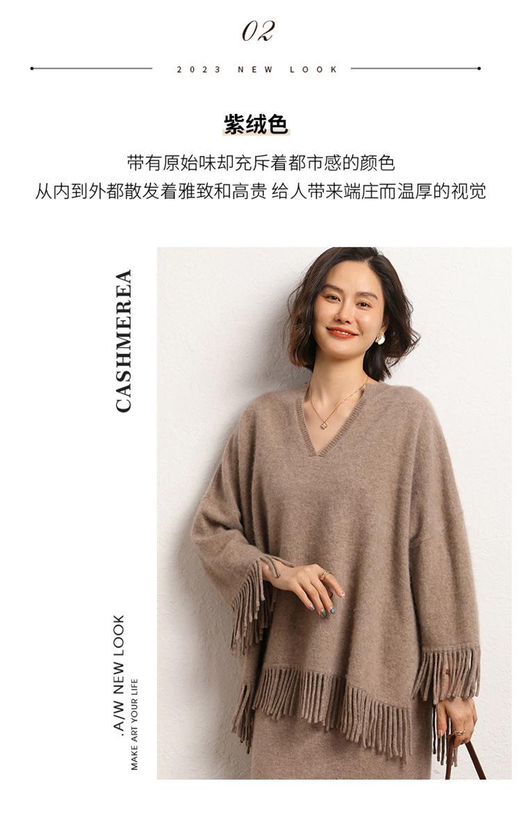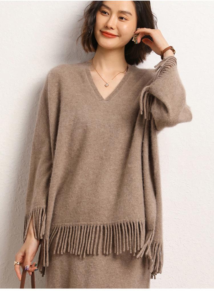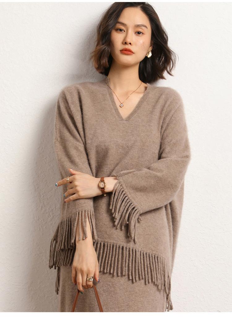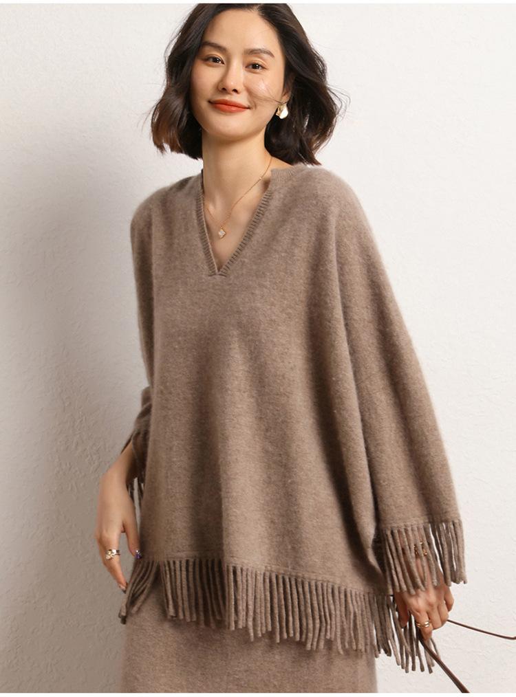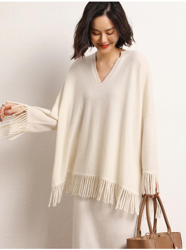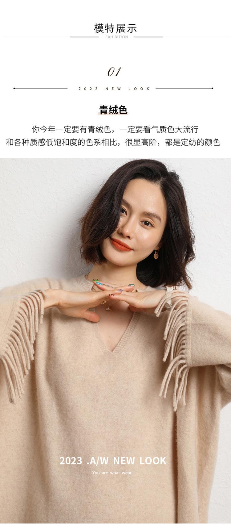Nuevo Otoño e Invierno 2023 Suéter de Cachemira para Mujer con Cuello en V, Suéter Tejido Holgado, Top Corto de Moda con Flecos