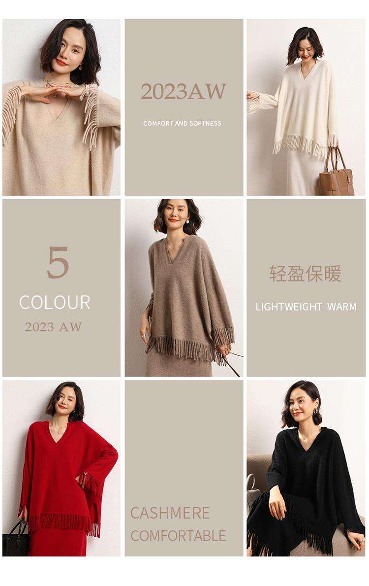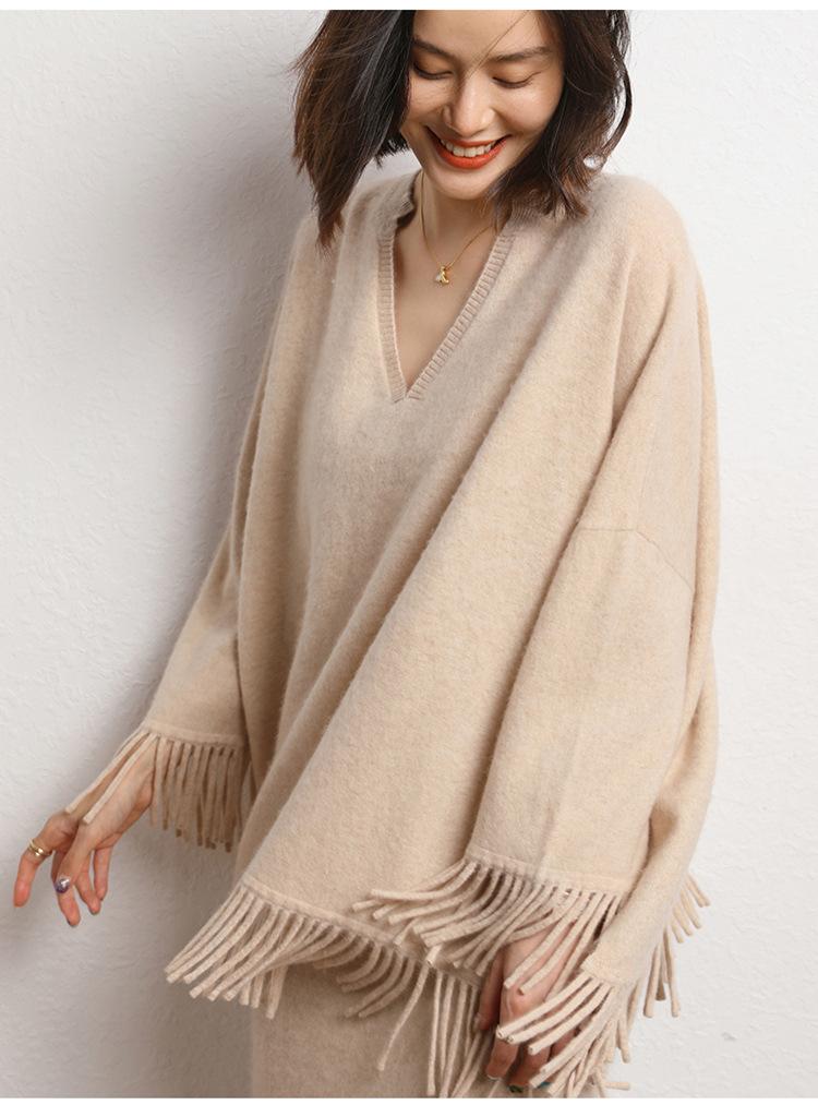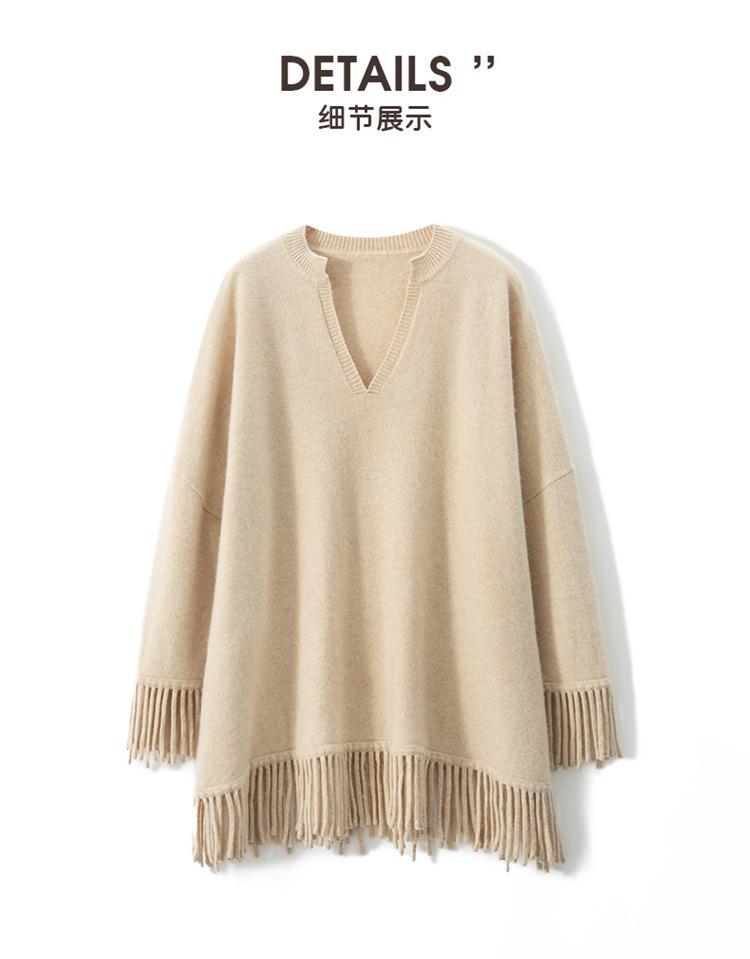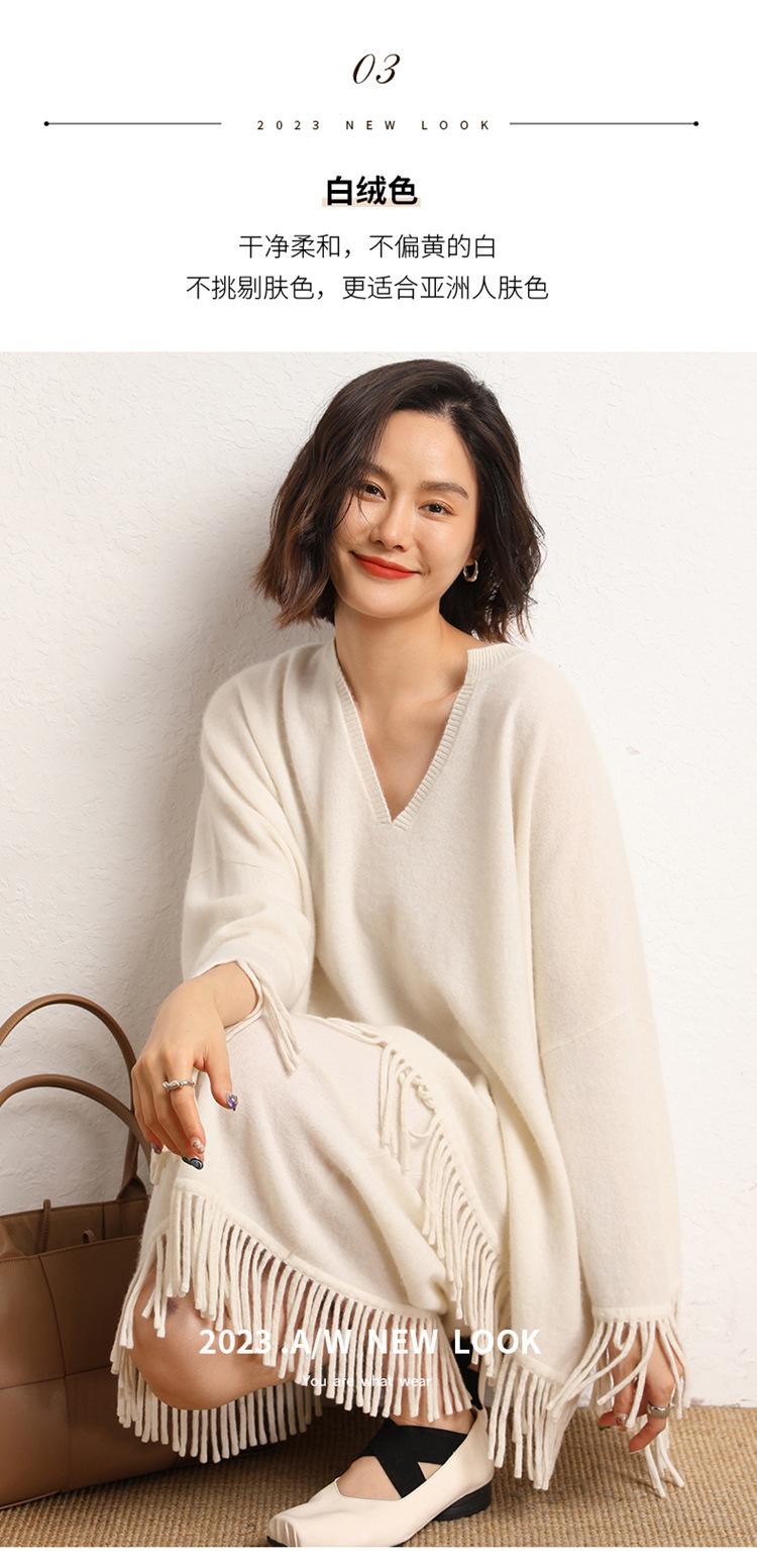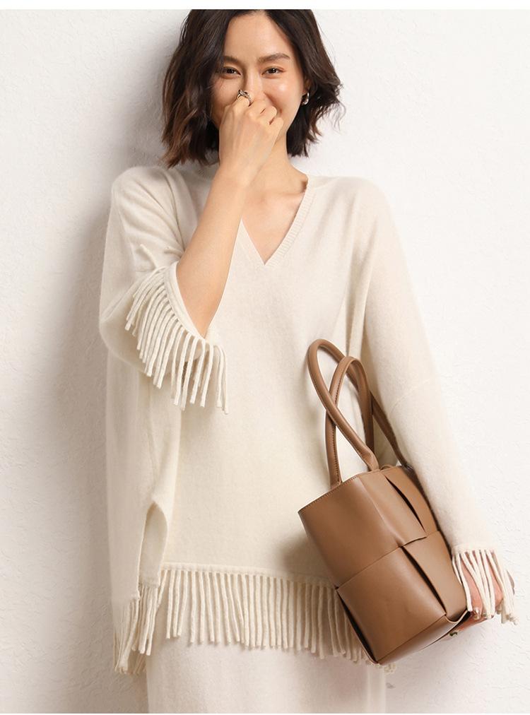 Nuevo Otoño e Invierno 2023 Suéter de Cachemira para Mujer con Cuello en V, Suéter Tejido Holgado, Top Corto de Moda con Flecos