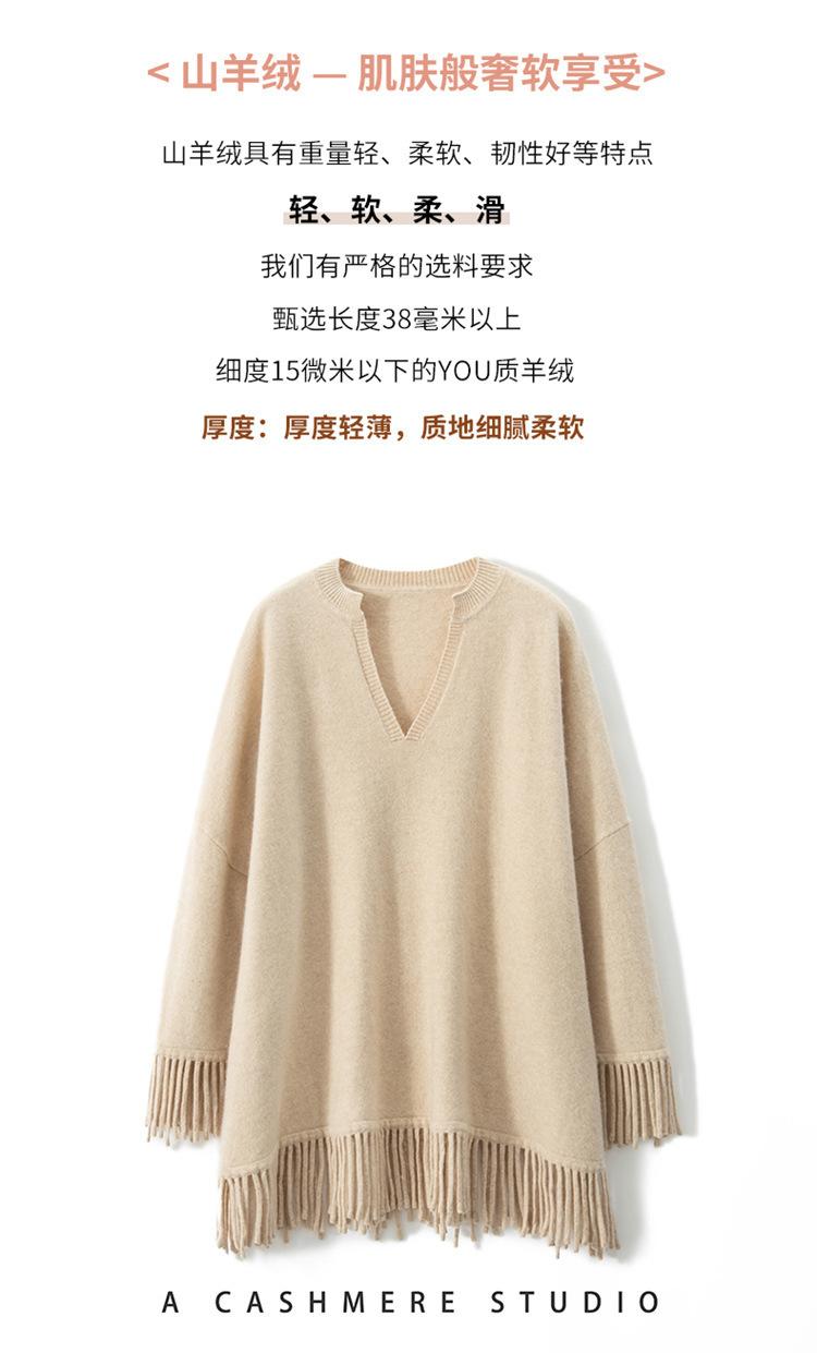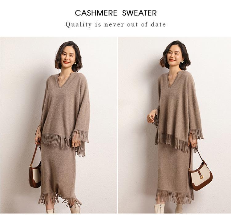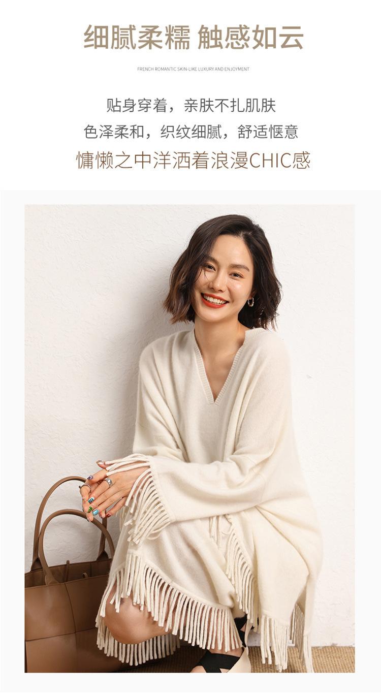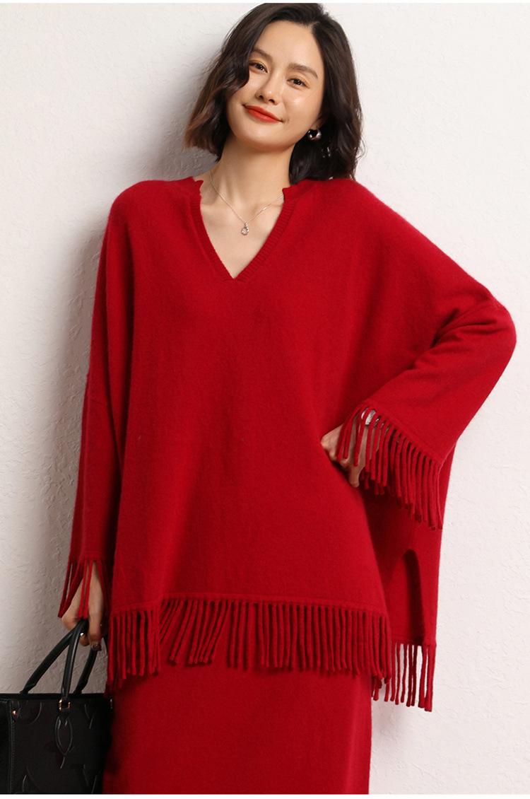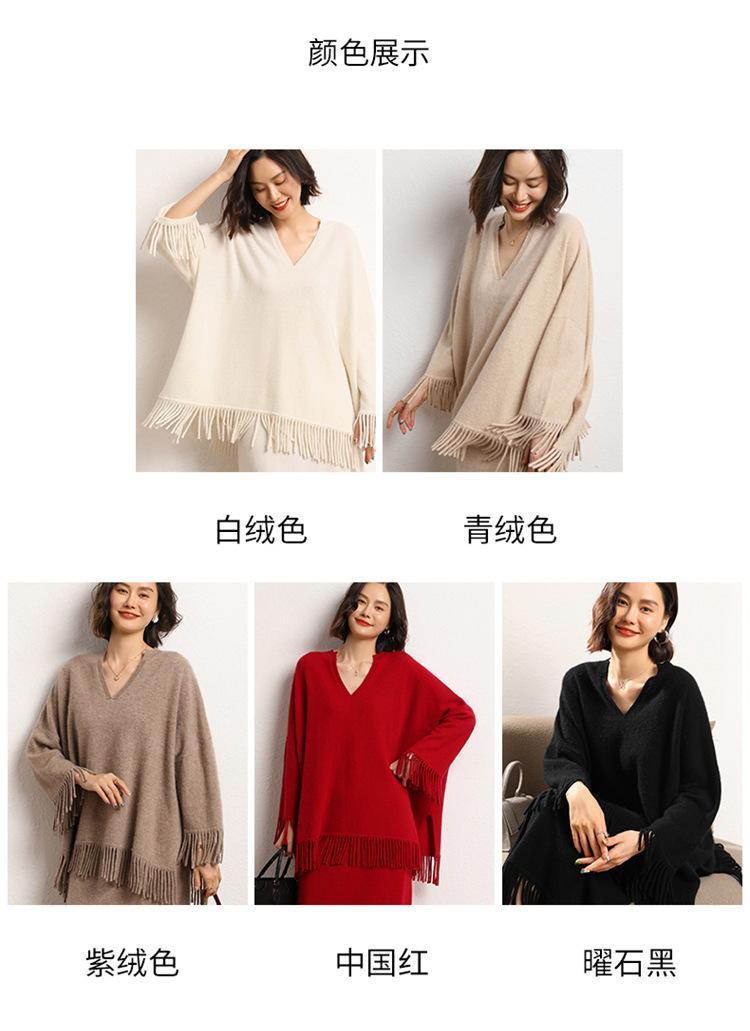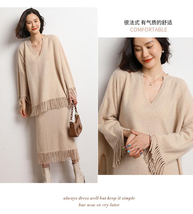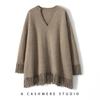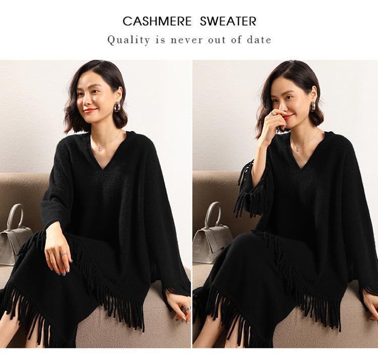 Nuevo Otoño e Invierno 2023 Suéter de Cachemira para Mujer con Cuello en V, Suéter Tejido Holgado, Top Corto de Moda con Flecos