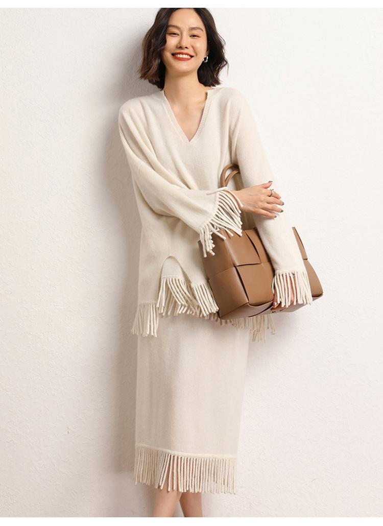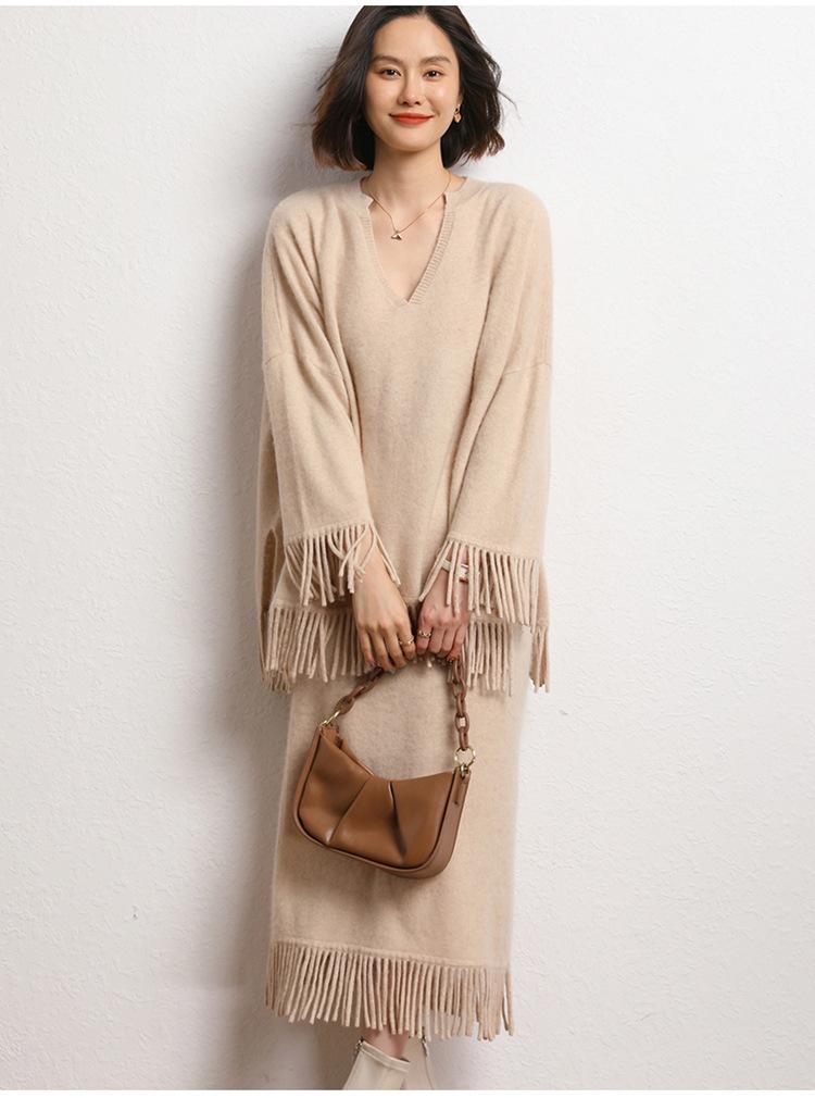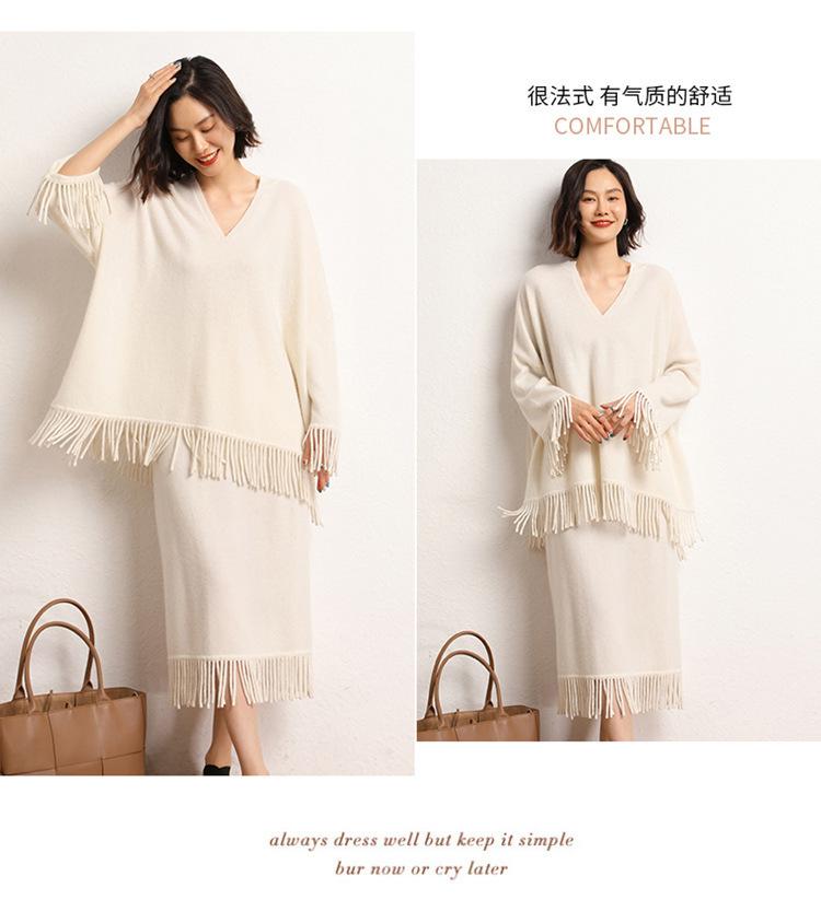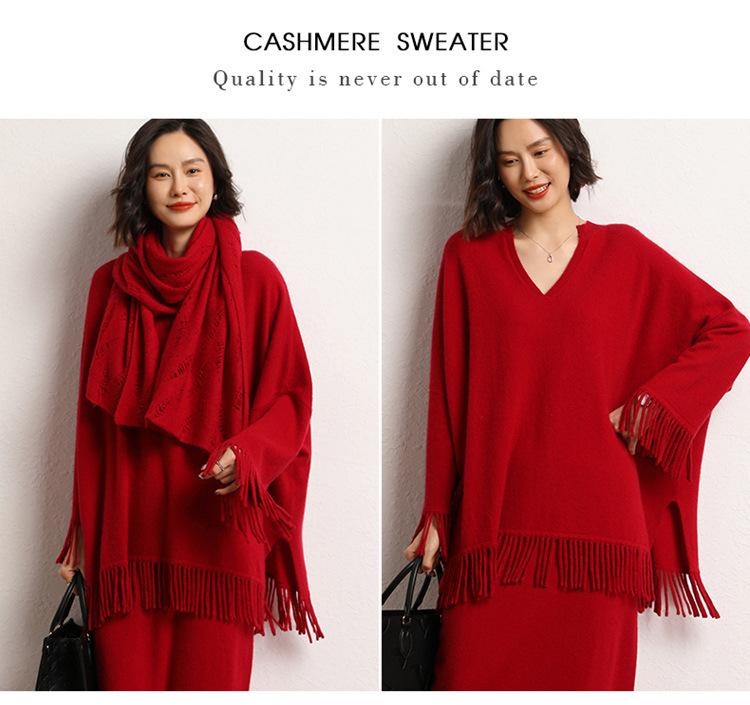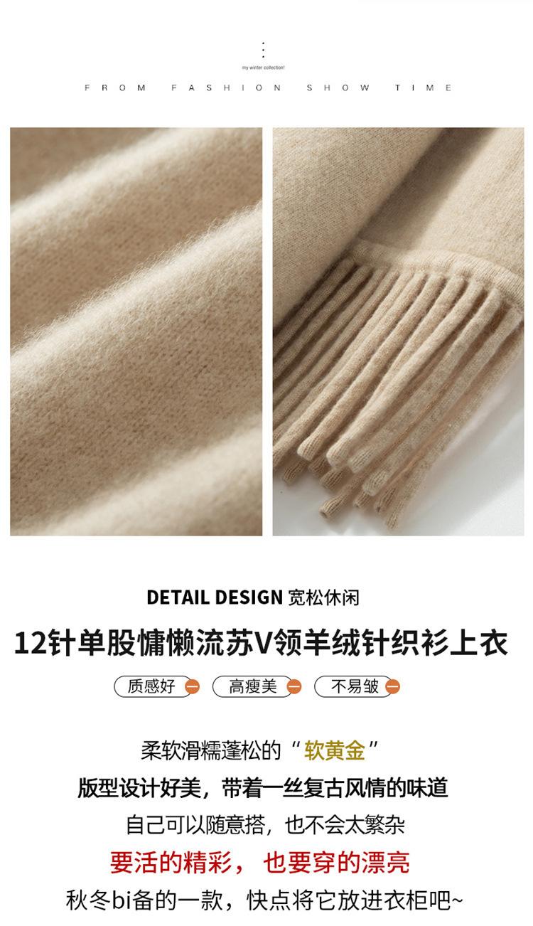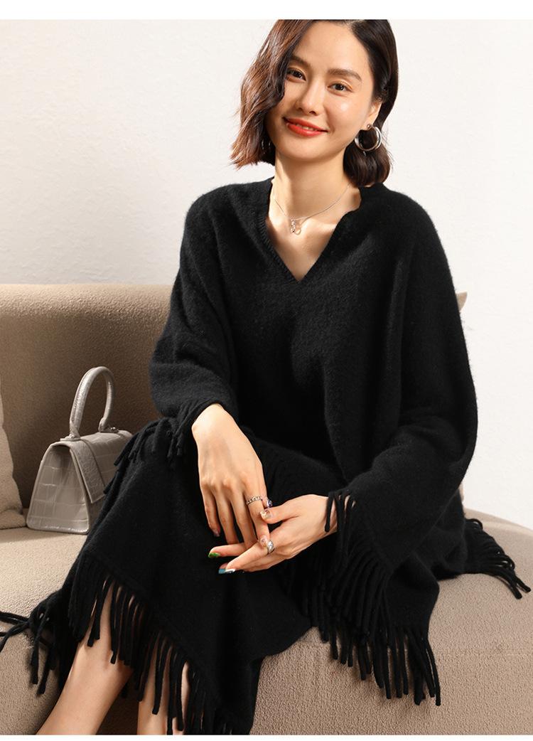 Nuevo Otoño e Invierno 2023 Suéter de Cachemira para Mujer con Cuello en V, Suéter Tejido Holgado, Top Corto de Moda con Flecos