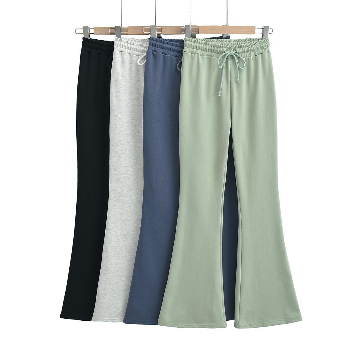 Pantalones acampanados de cintura alta con cordones y cintura elástica de estilo europeo y americano para mujer, primavera y otoño 2023, nuevos pantalones casuales adelgazantes de color sólido