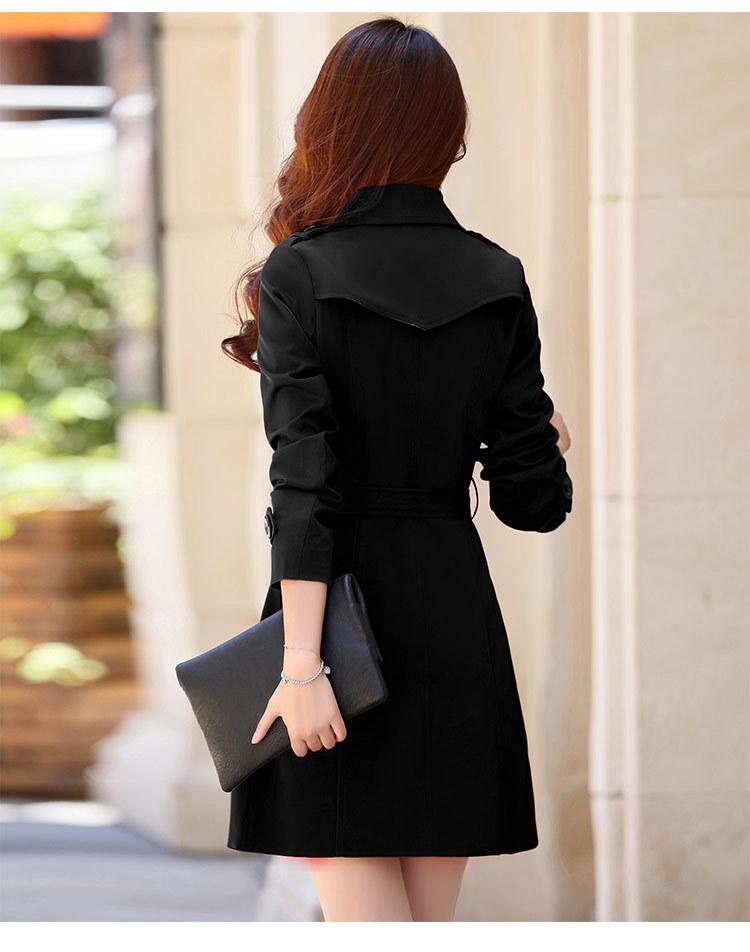 Abrigo Delgado Adelgazante de Estilo Coreano Nuevo de Primavera y Otoño de Leche de Papaya, Abrigo de Moda de Doble Botonadura de Largo Medio con Cinturón, Trendy
