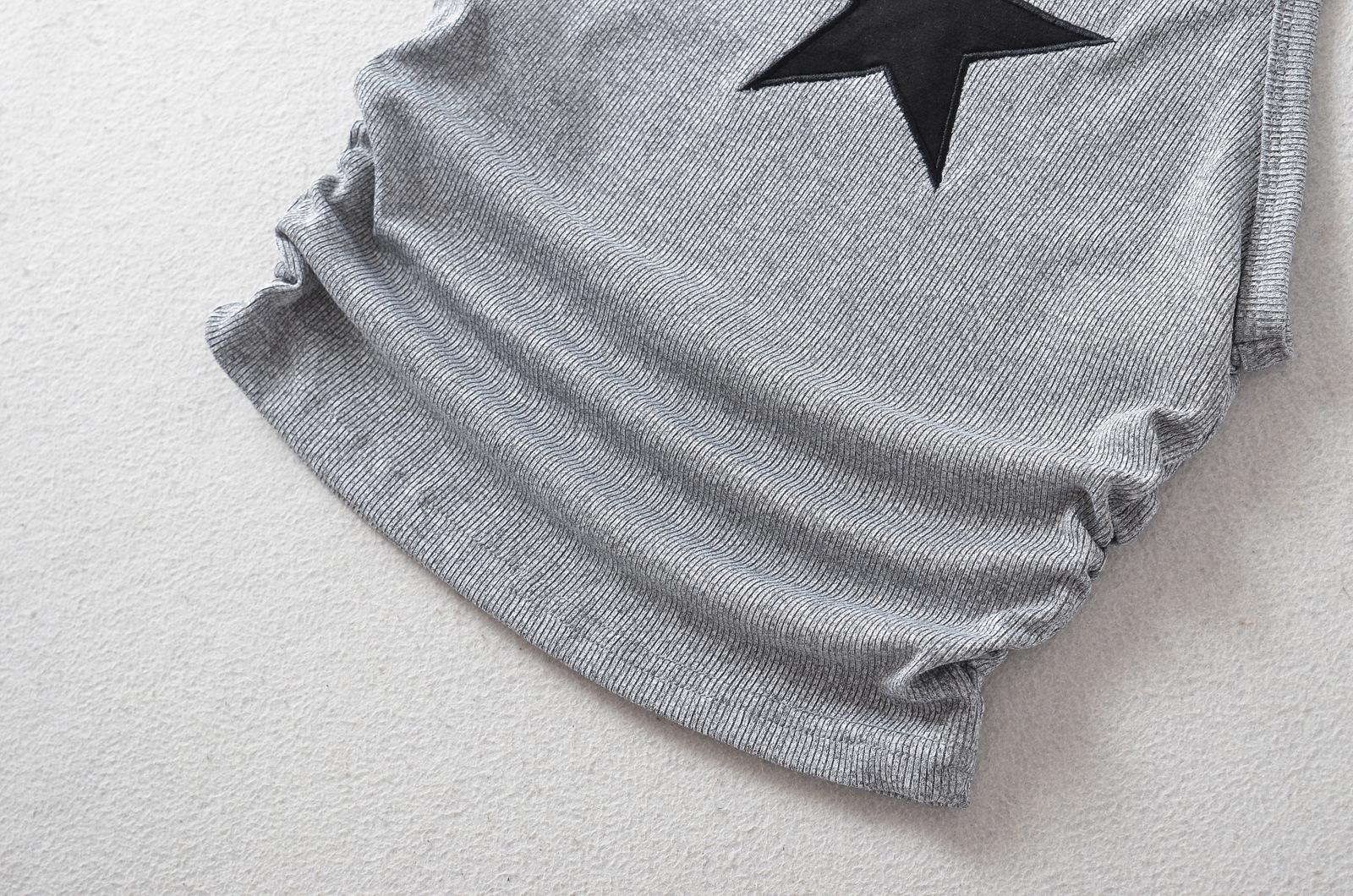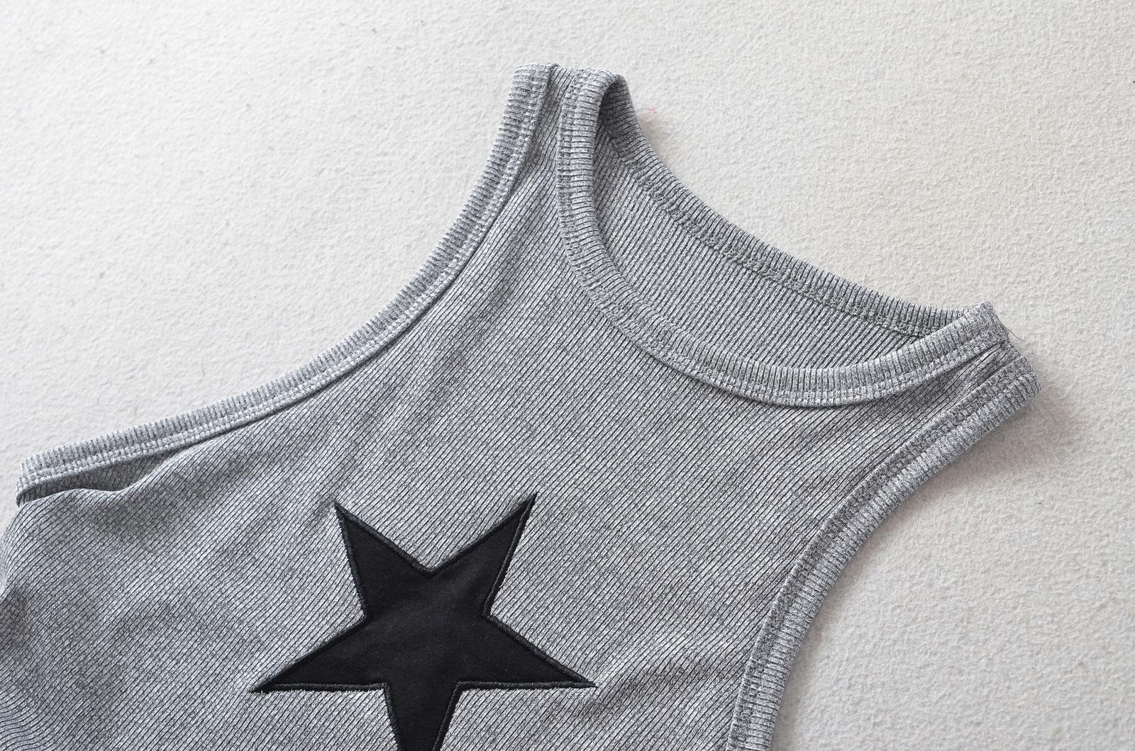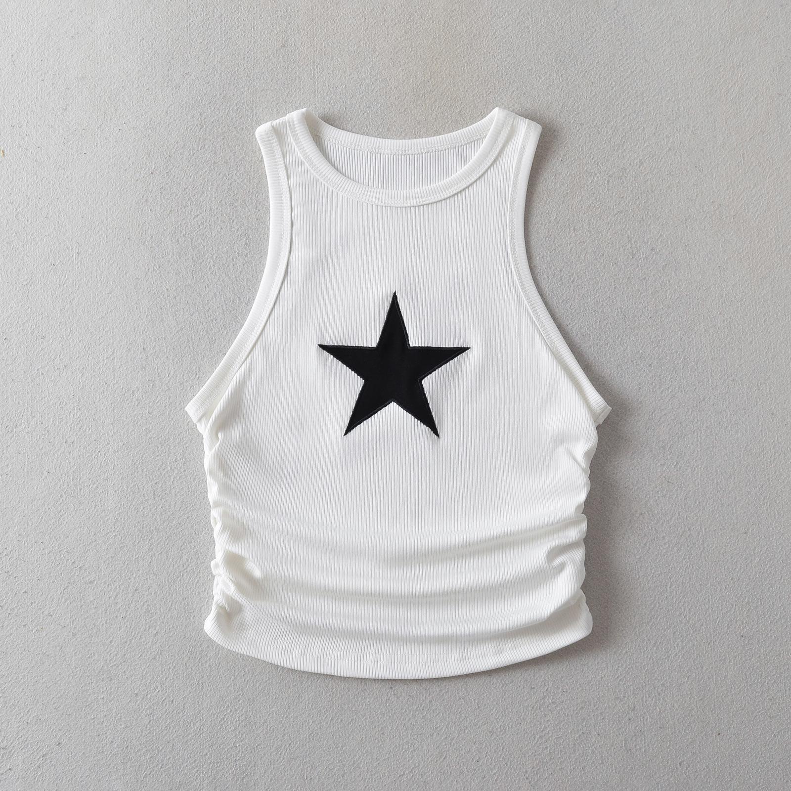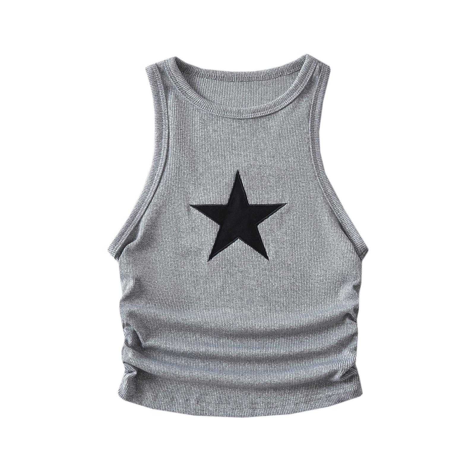 Chaleco plisado ajustado de cuello redondo para mujer, venta al por mayor, novedad de verano 2024, top corto sin mangas con parche de estrella de cinco puntas para chica sexy