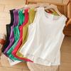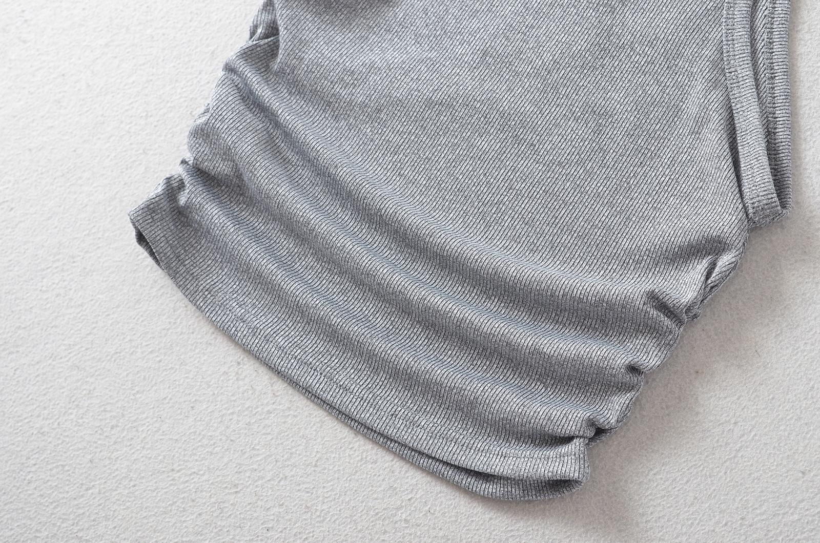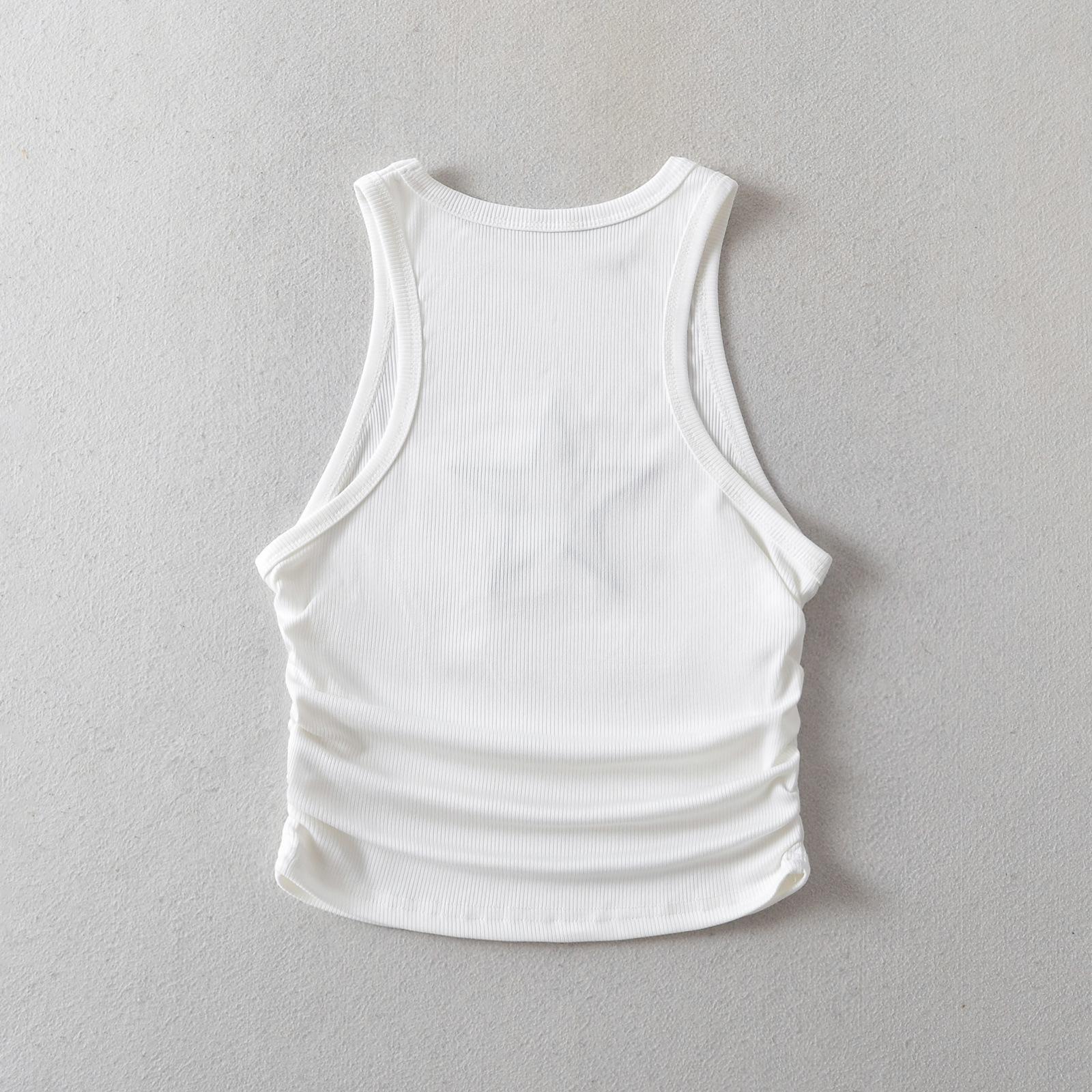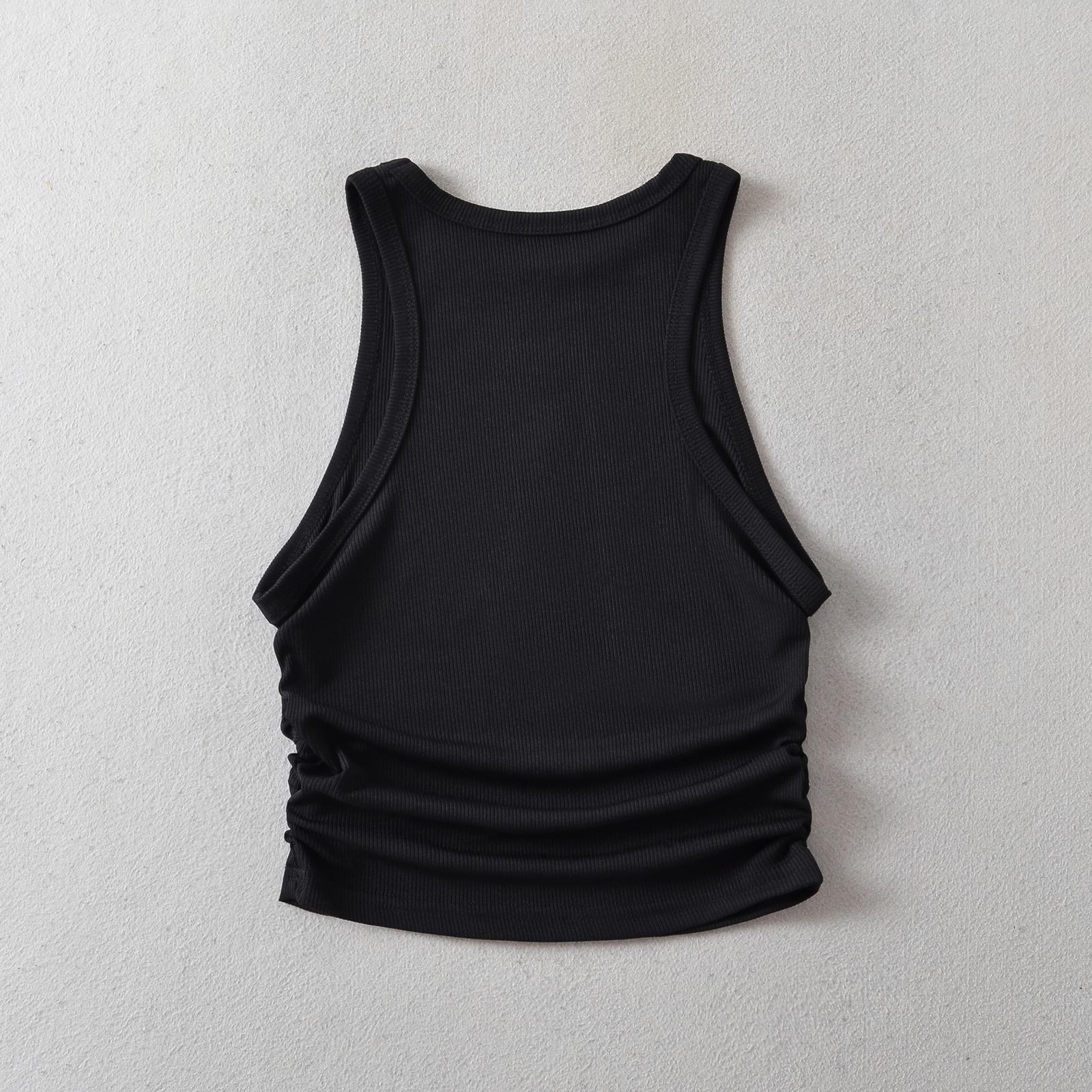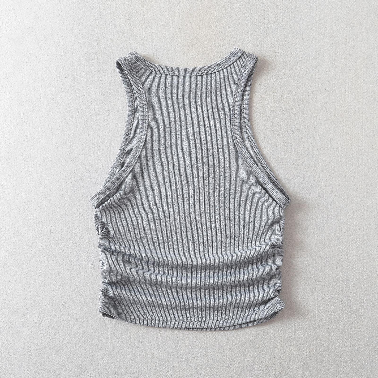 Chaleco plisado ajustado de cuello redondo para mujer, venta al por mayor, novedad de verano 2024, top corto sin mangas con parche de estrella de cinco puntas para chica sexy