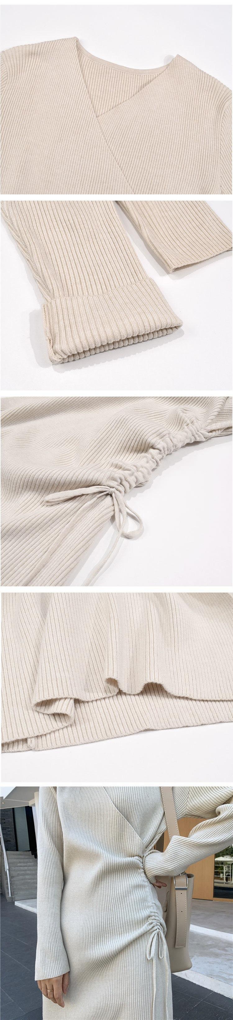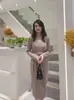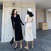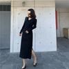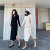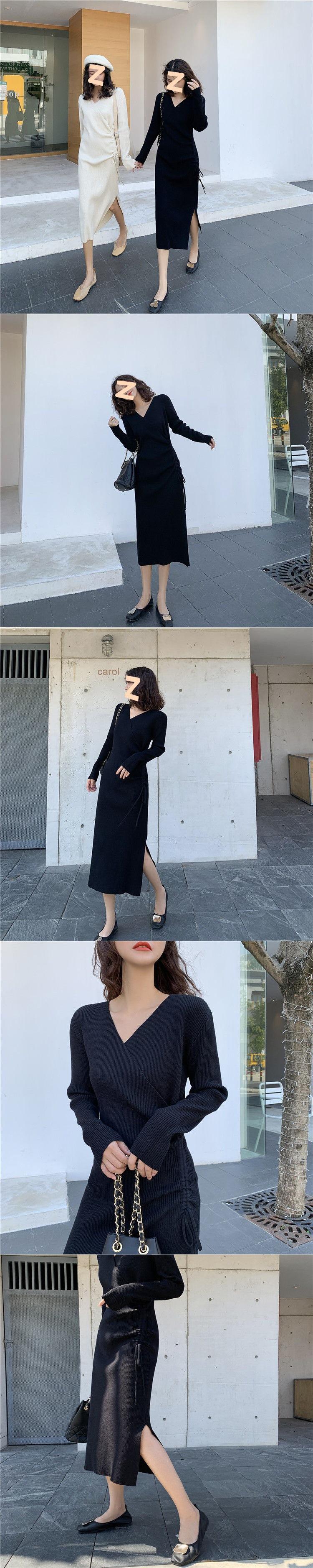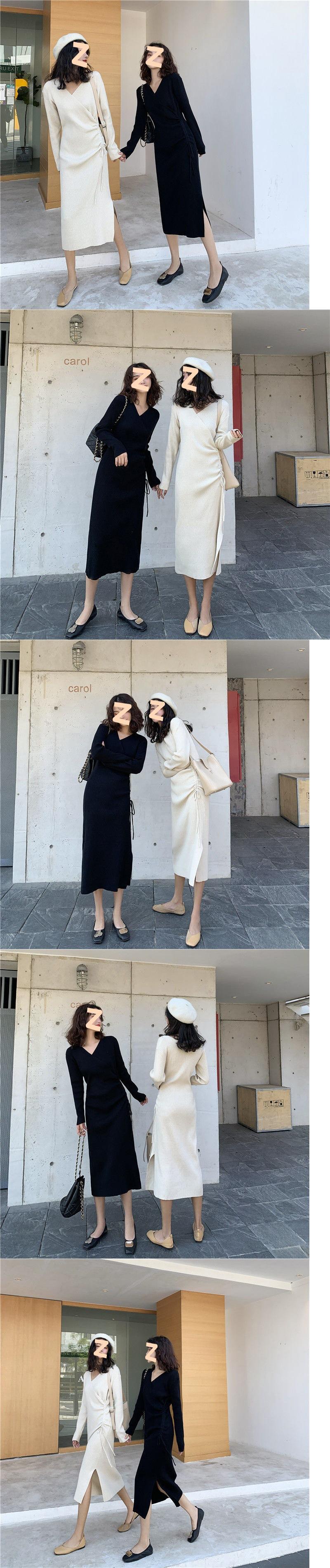 Falda Interior con Abrigo, Suéter de Fondo Slim con Abertura por Encima de la Rodilla para Otoño e Invierno para Mujer, Vestido Tejido Largo con Cuello en V