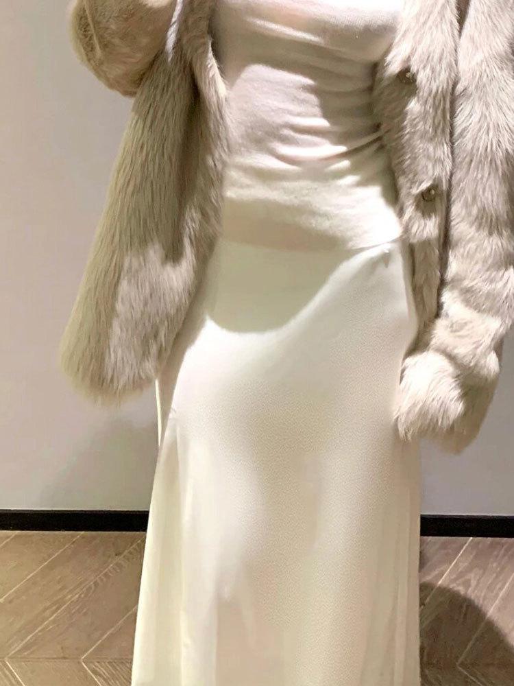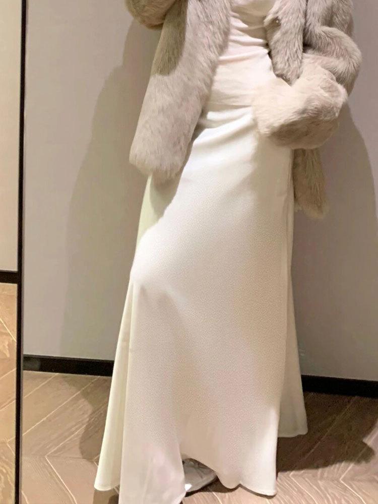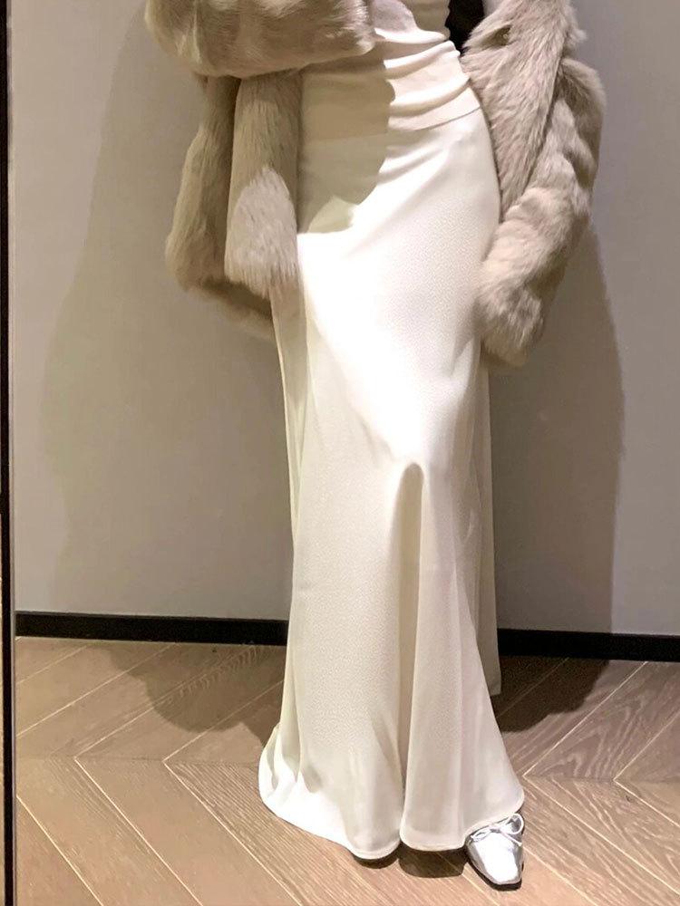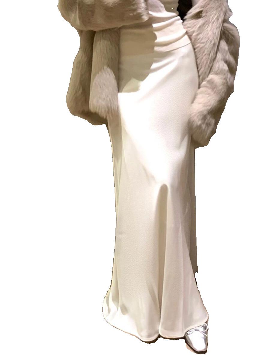 Falda de Acetato Satinado de Gama Alta Estilo Francés para Mujer 2023 Verano Nuevo Falda Larga A de Cobertura de Cadera