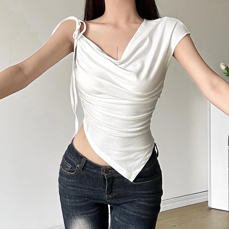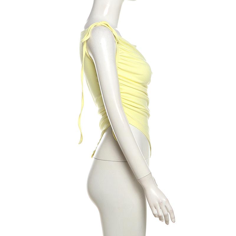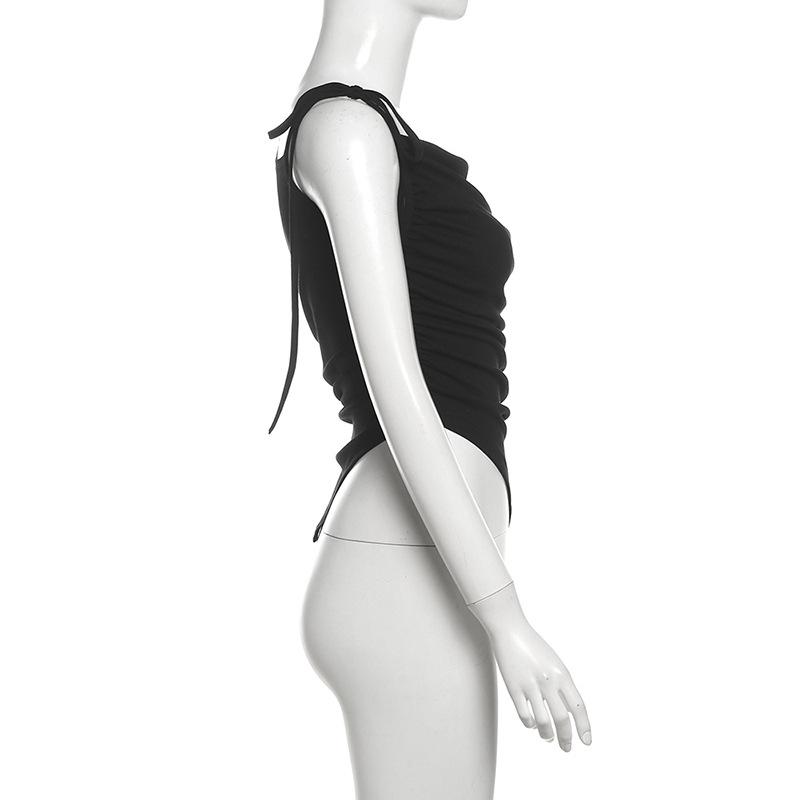 Top plisado sin mangas con tirantes, estilo europeo y americano transfronterizo, novedad de verano de 2024, para mujer, de color liso, ajustado, de moda urbana, para mujer