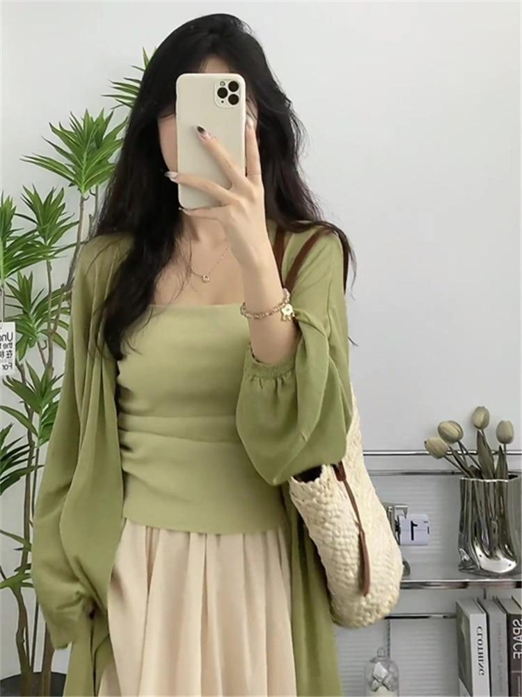Cárdigan largo de punto estilo coreano, ropa de protección solar para mujer, novedad de verano 2023, abrigo fino de estilo suave y holgado, camisa con aire acondicionado