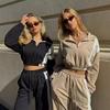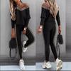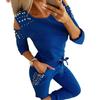 Traje de Otoño Transfronterizo Amazon Europeo y Americano de Talla Grande para Mujer Sexy con Cuentas Cuello Redondo Hombro Manga Larga Traje de Moda Mujer