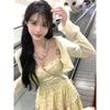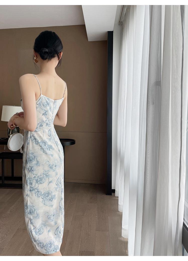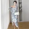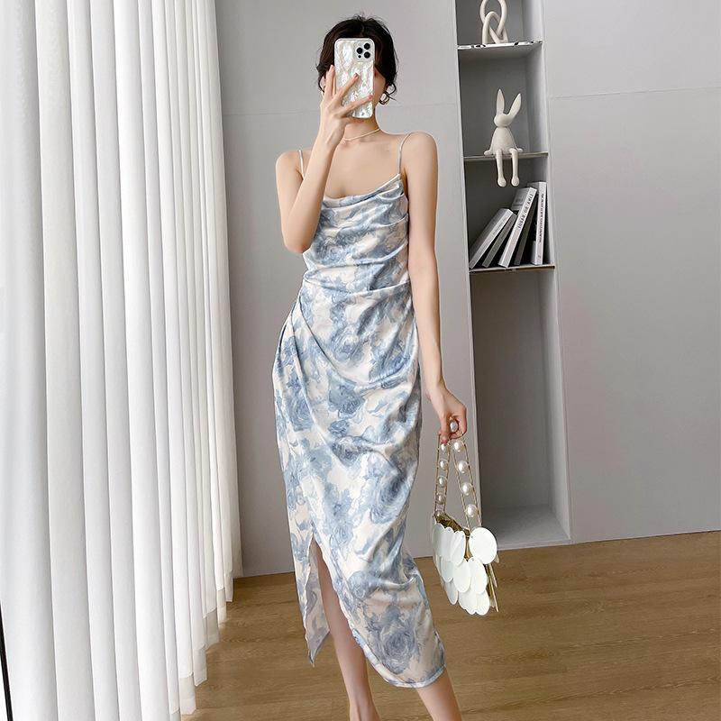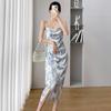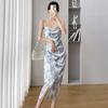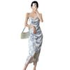 Forro + Cremallera Moda Coreana Nuevo Estilo Francés Suave Aspecto Adelgazante de Cintura Tie-Dye Vestido de Tirantes para Mujer