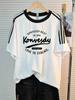 Compra Camiseta de manga corta raglán de tres barras retro directa de fábrica para mujer, de algodón pesado de verano, nueva camiseta holgada de media manga al por mayor en Joom.pro